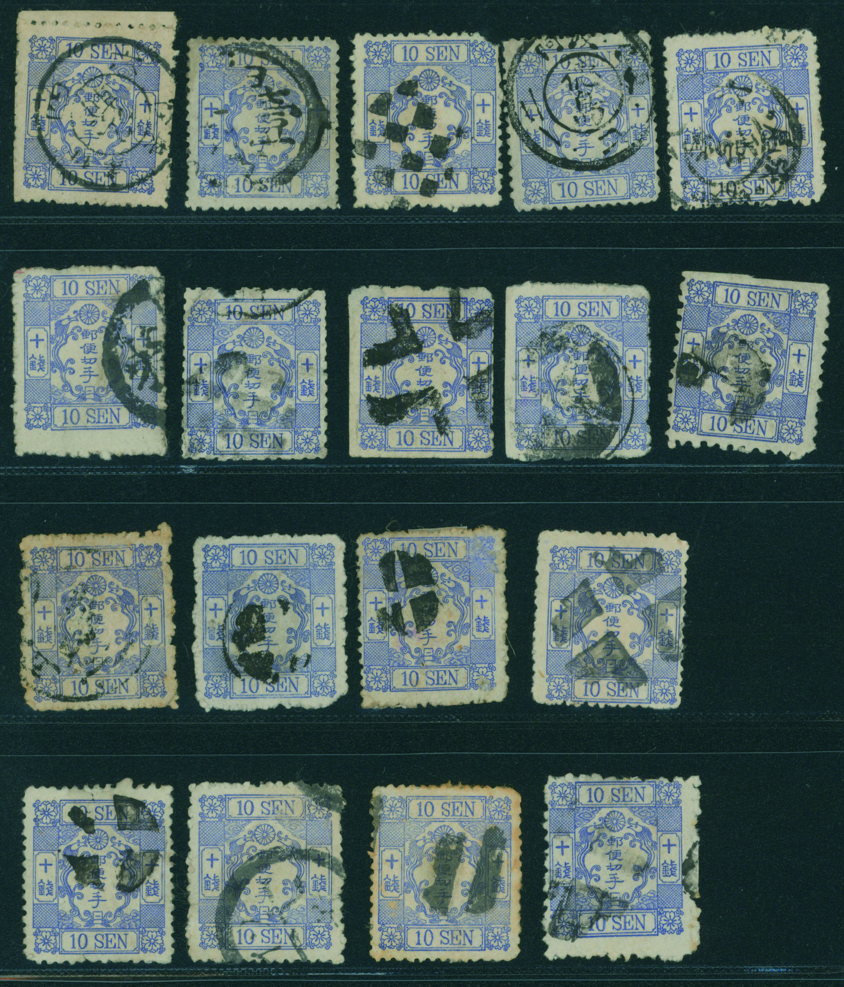 1875 Cherry Blossom Imported Paper 10 Sen blue with kana (18) used cancelled by obliteration double