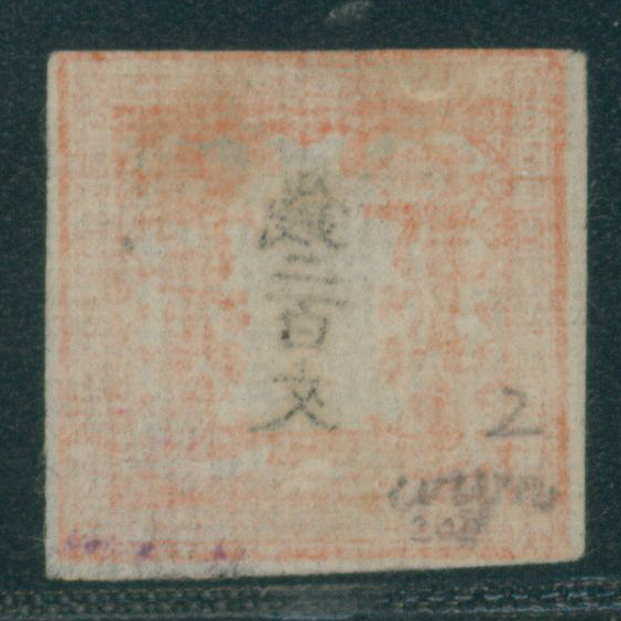5 1(2P), imageDragon 48 Mon pl.1 pos.4-12 pair used paper attached, cancelled by framed three letters cancellation with post-town name (西京) (Image1) (Image2) (All Images)