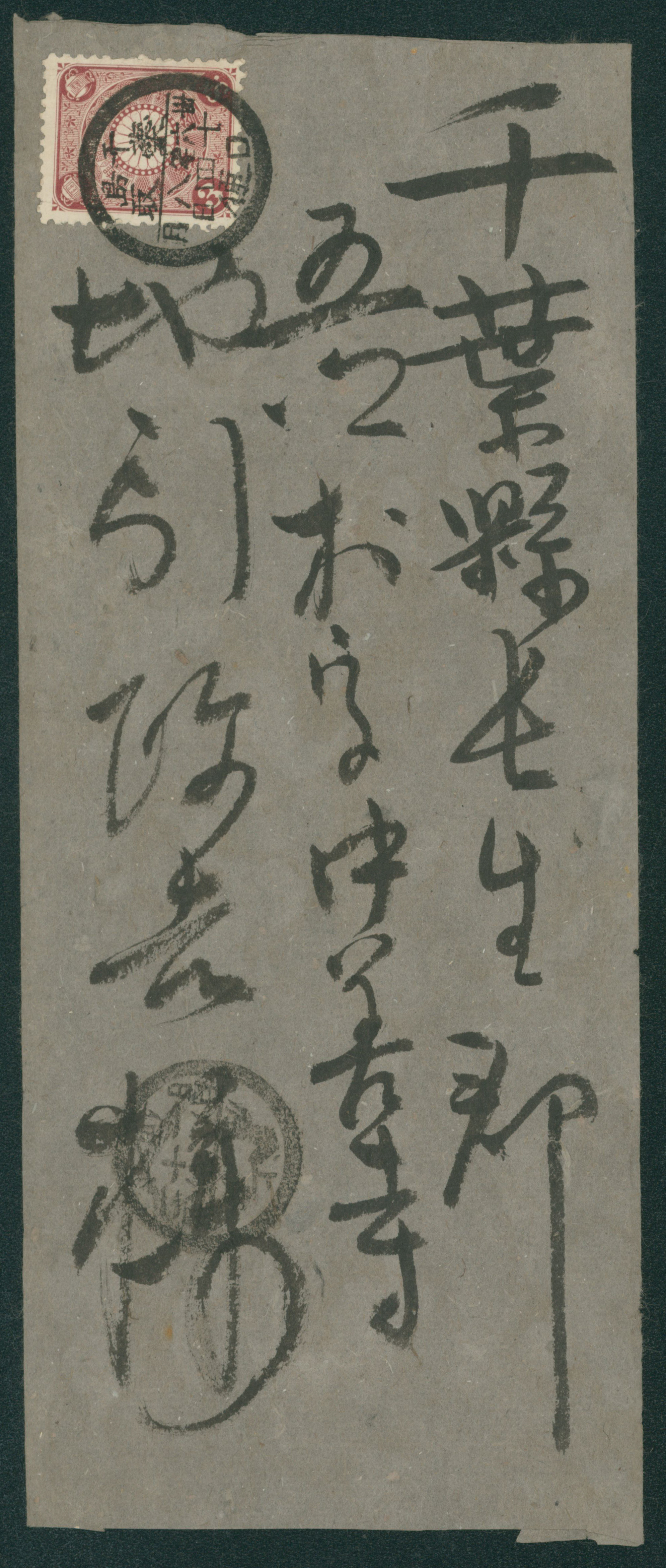 207 107 image1899-1907 The fourth issue 3 Sen brown single franking cancelled by line divided cds 1903-08-14 千島・蘂取 (Image1) (Image2) (All Images)