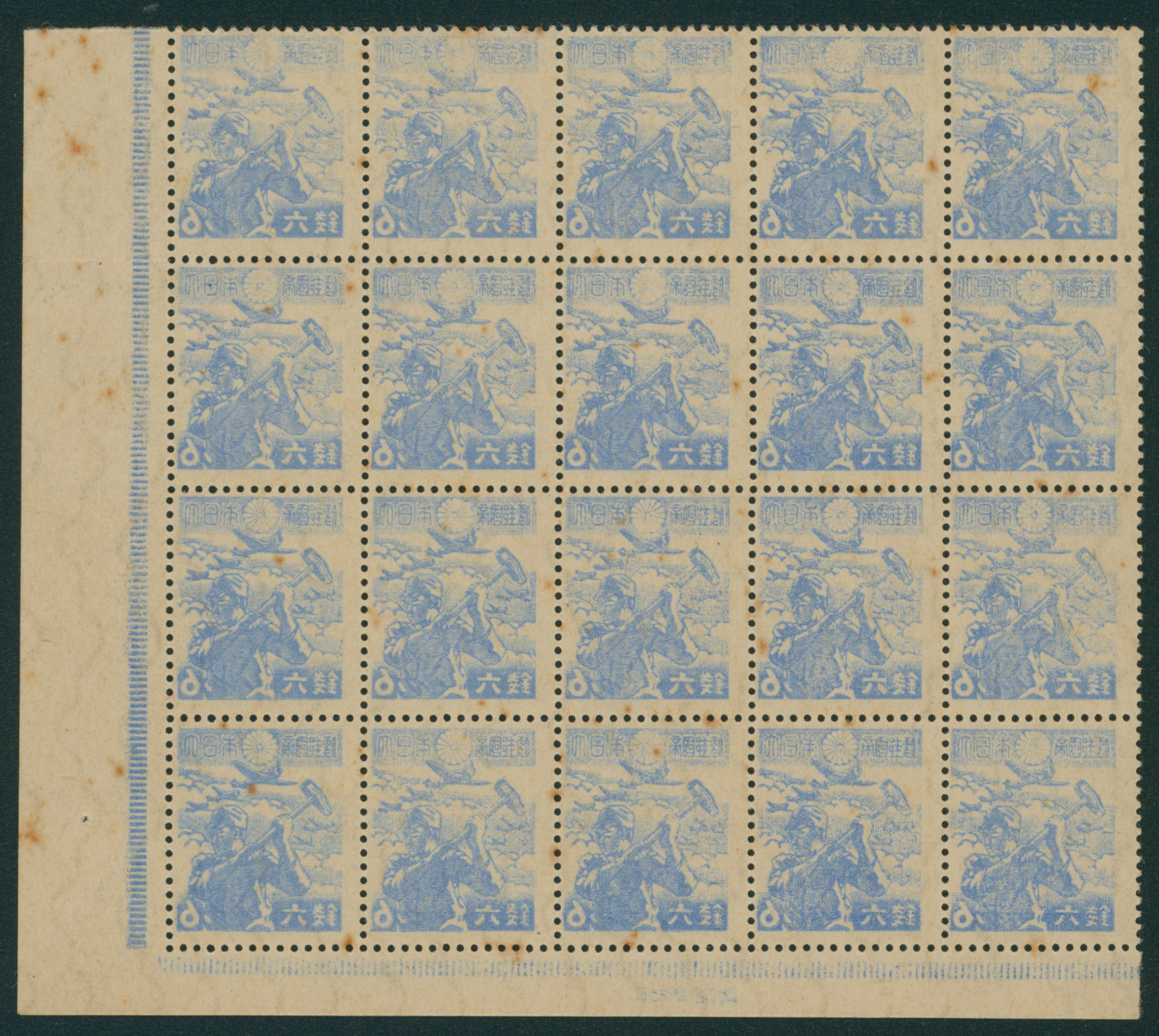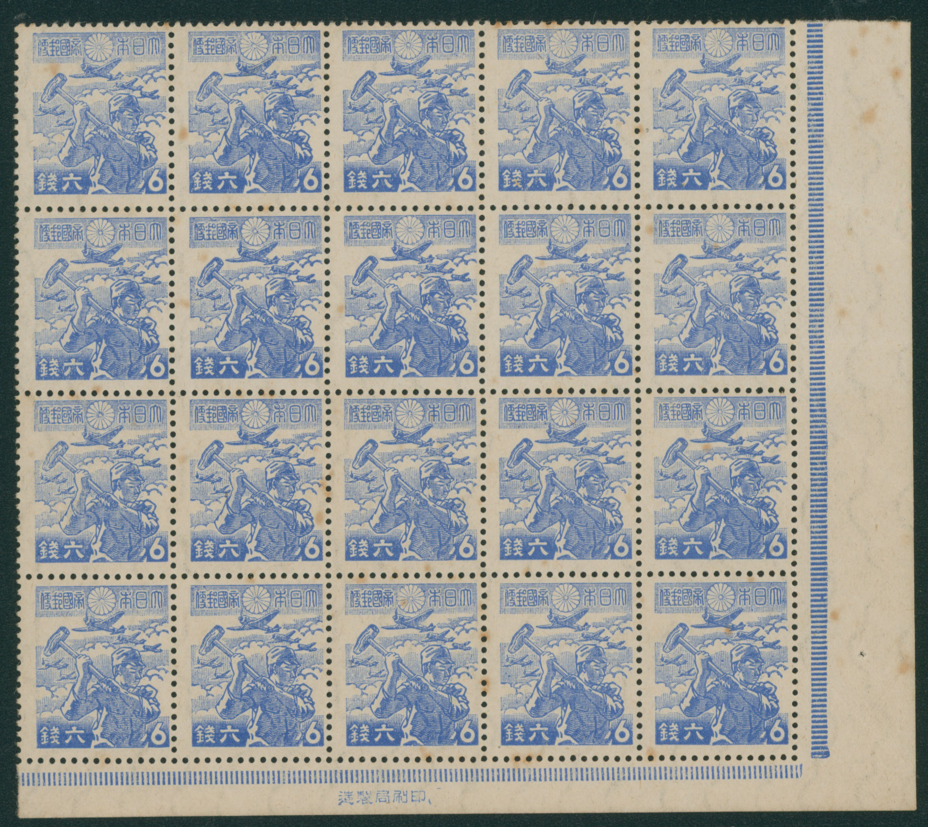 215 253(20B) imagewartime issue 6 Sen block(20) unused stained, (Image1) (Image2) (All Images)