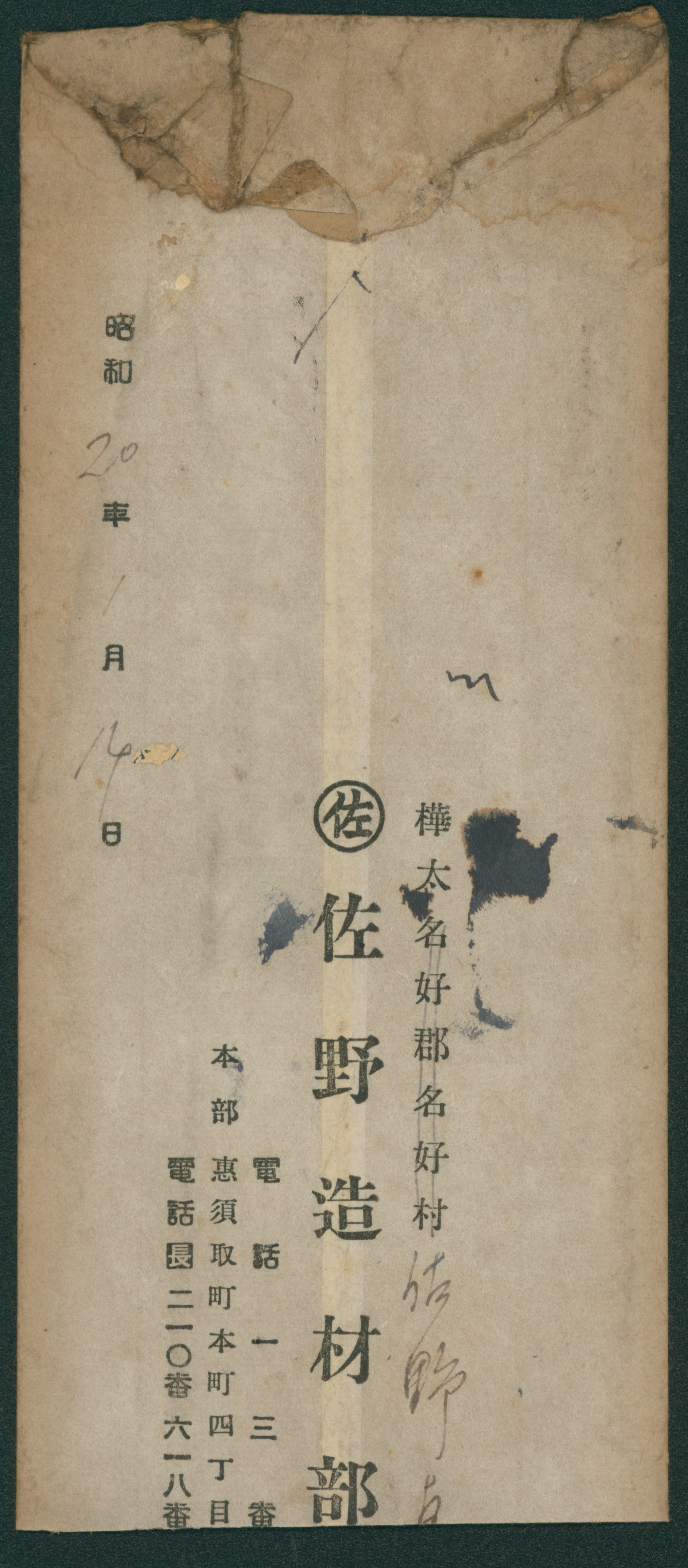 209 254 imagewartime issue 7 Sen single franking cancelled by comb cds 1945-01-21 Esutoru(Sakhalin) cover stained, with content, (Image1) (Image2) (All Images)