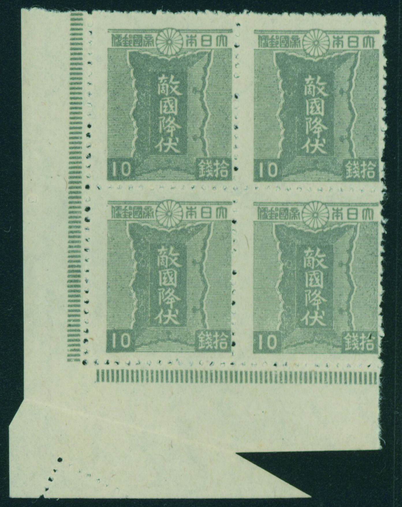 217 257(4B) imagewartime issue 10 Sen blue block(4) unused paper hold (Image1) (Image2) (All Images)