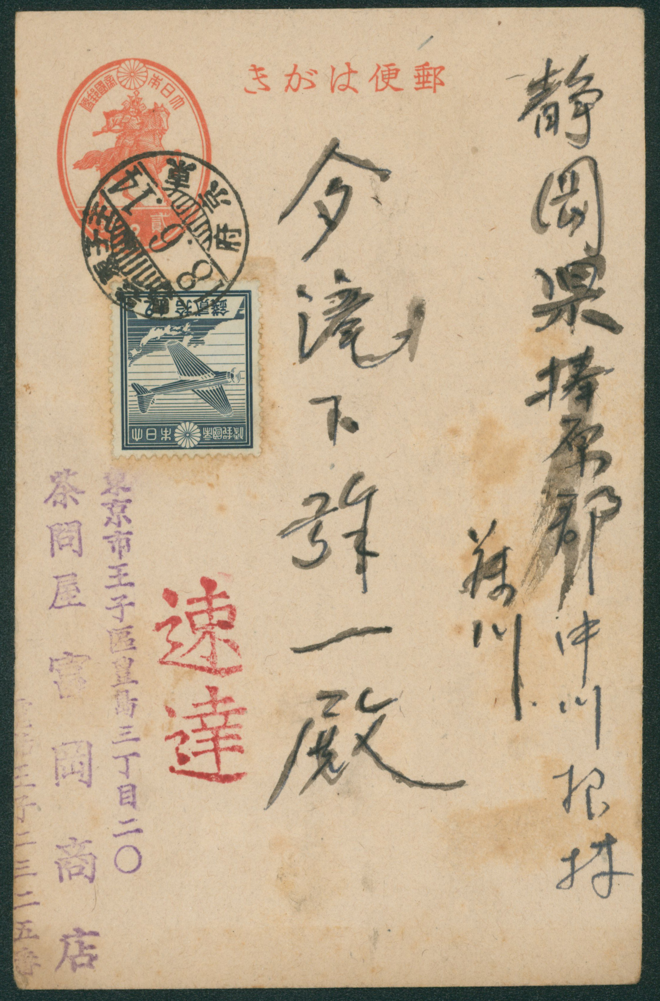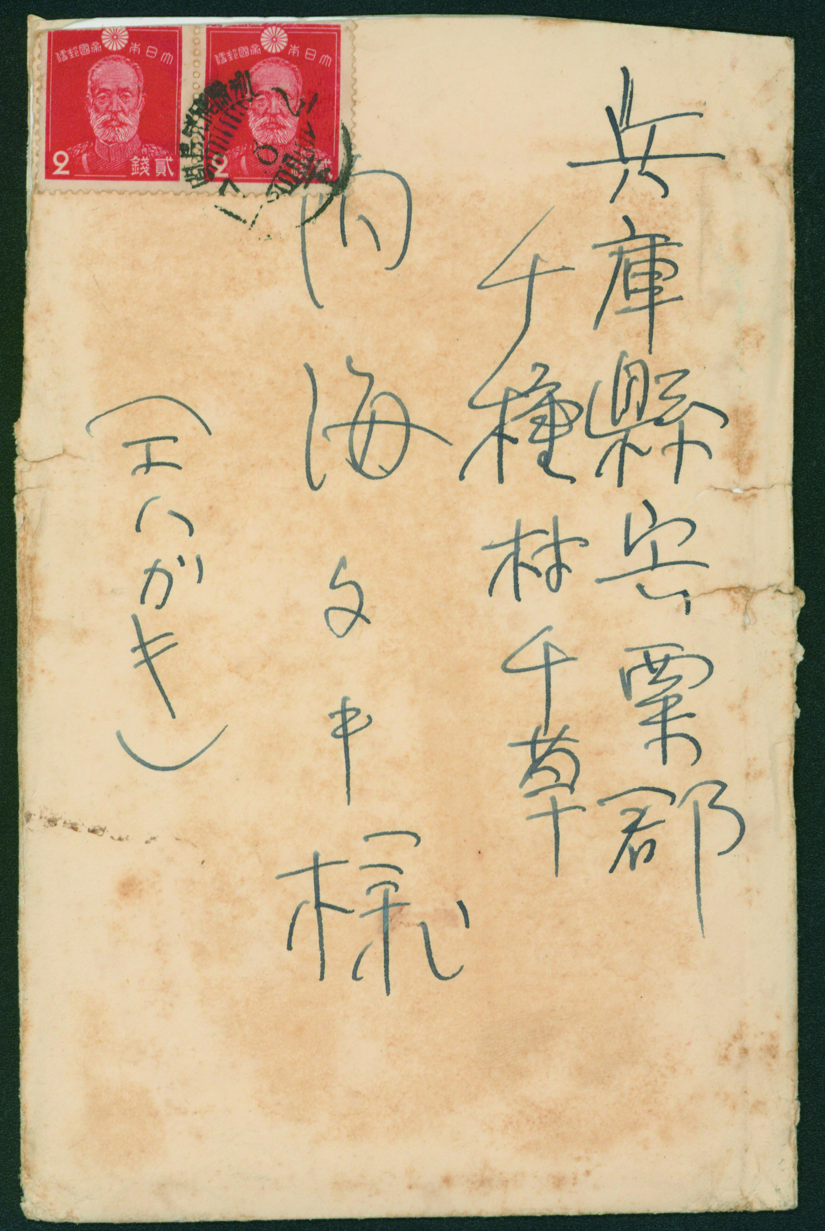244 PC35,231 imageInternal Postalcard 1937 issue 2 Sen, 1937-1940 issue 12 Sen 1943-06-14 Ojihigasitoshima cover stained, (Image1) (Image2) (All Images)