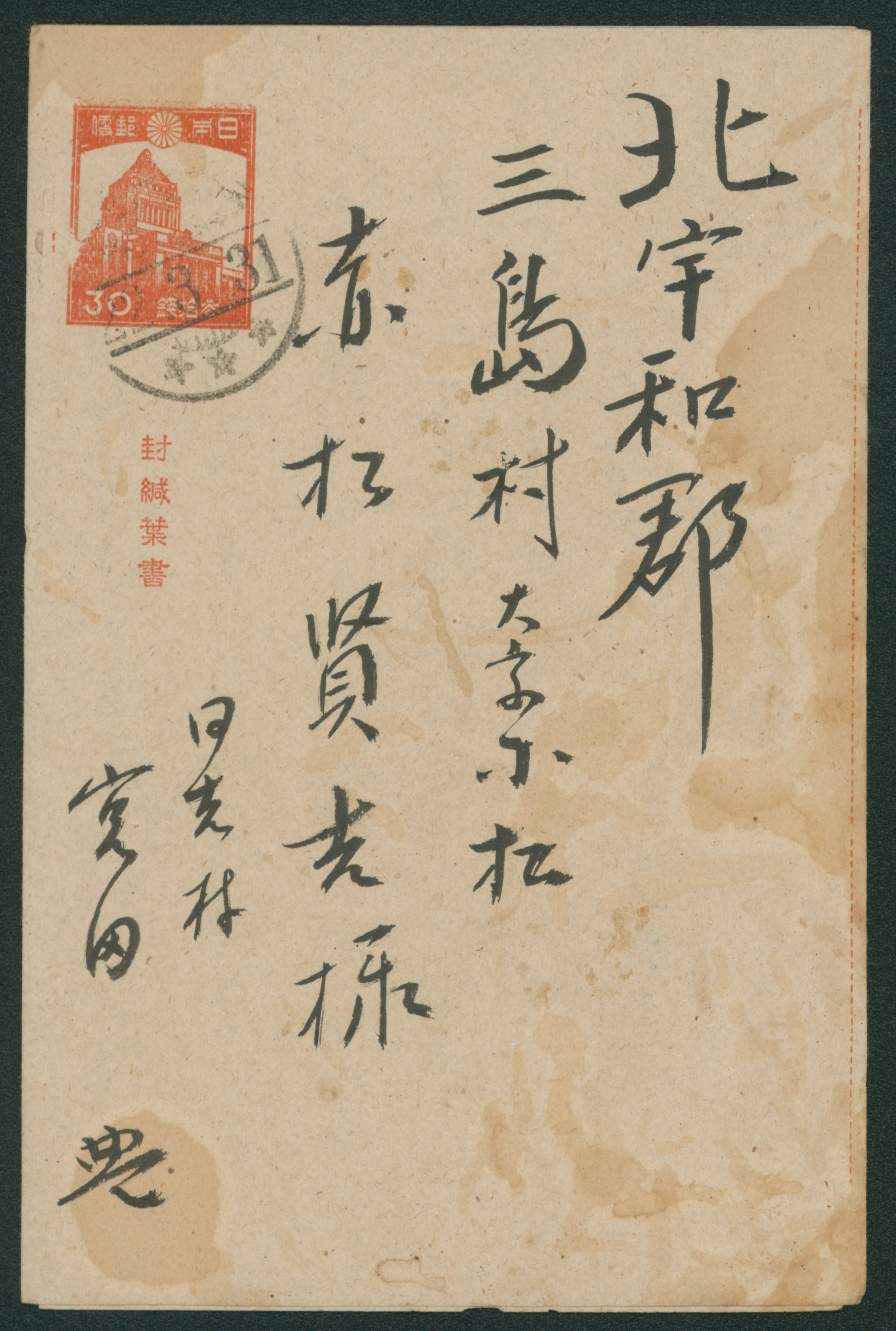 242 LS15 image1946 Letter sheets 30 Sen cancelled by comb cds 1947-03-31 cover stained, (Image1) (Image2) (All Images)