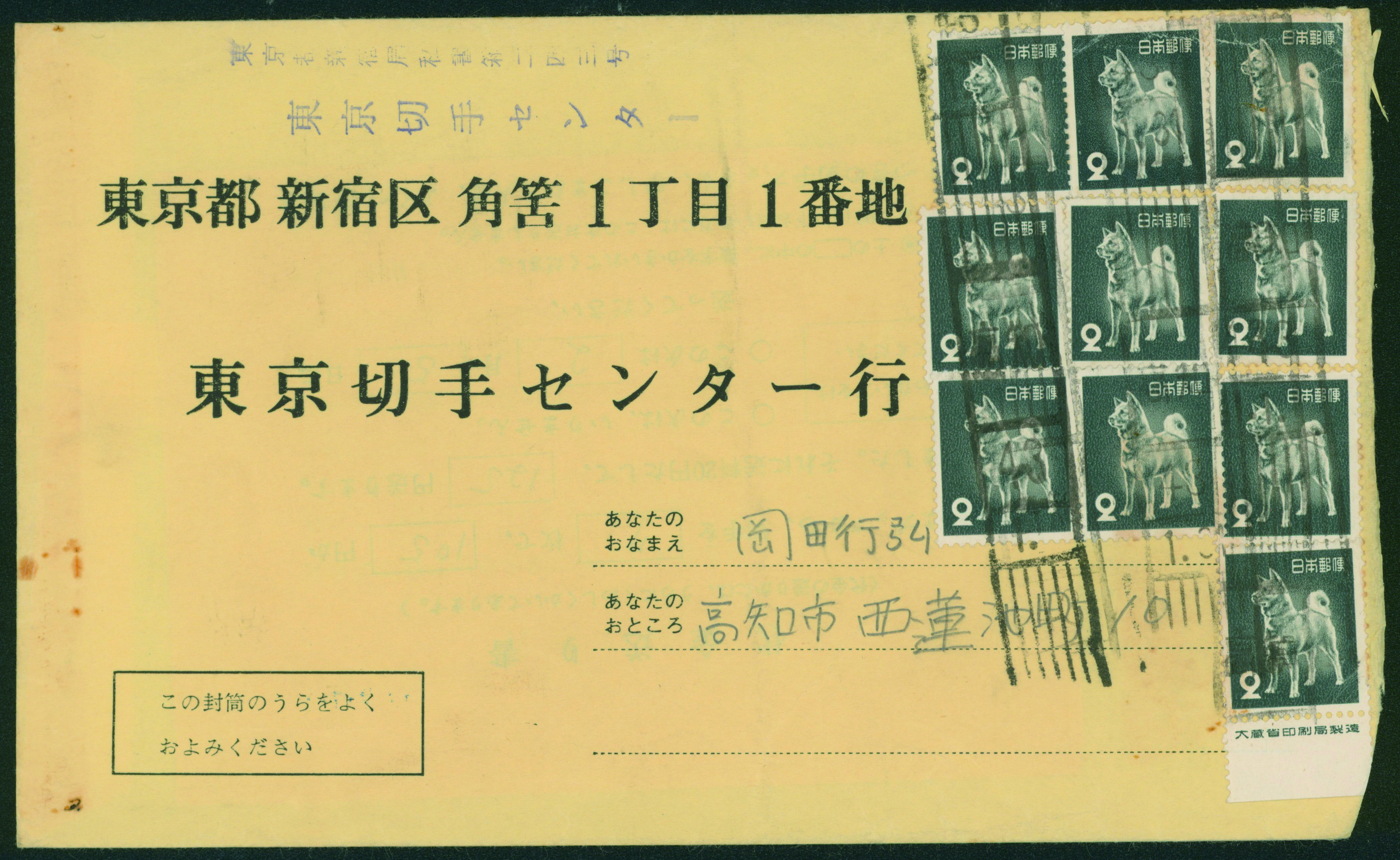 369 358,359 image1952-1959 issue 10 Yen , 14 Yen cancelled by roman letter roller cancellation 1961-03-27 TOKYOweight letter (Image1) (Image2) (All Images)