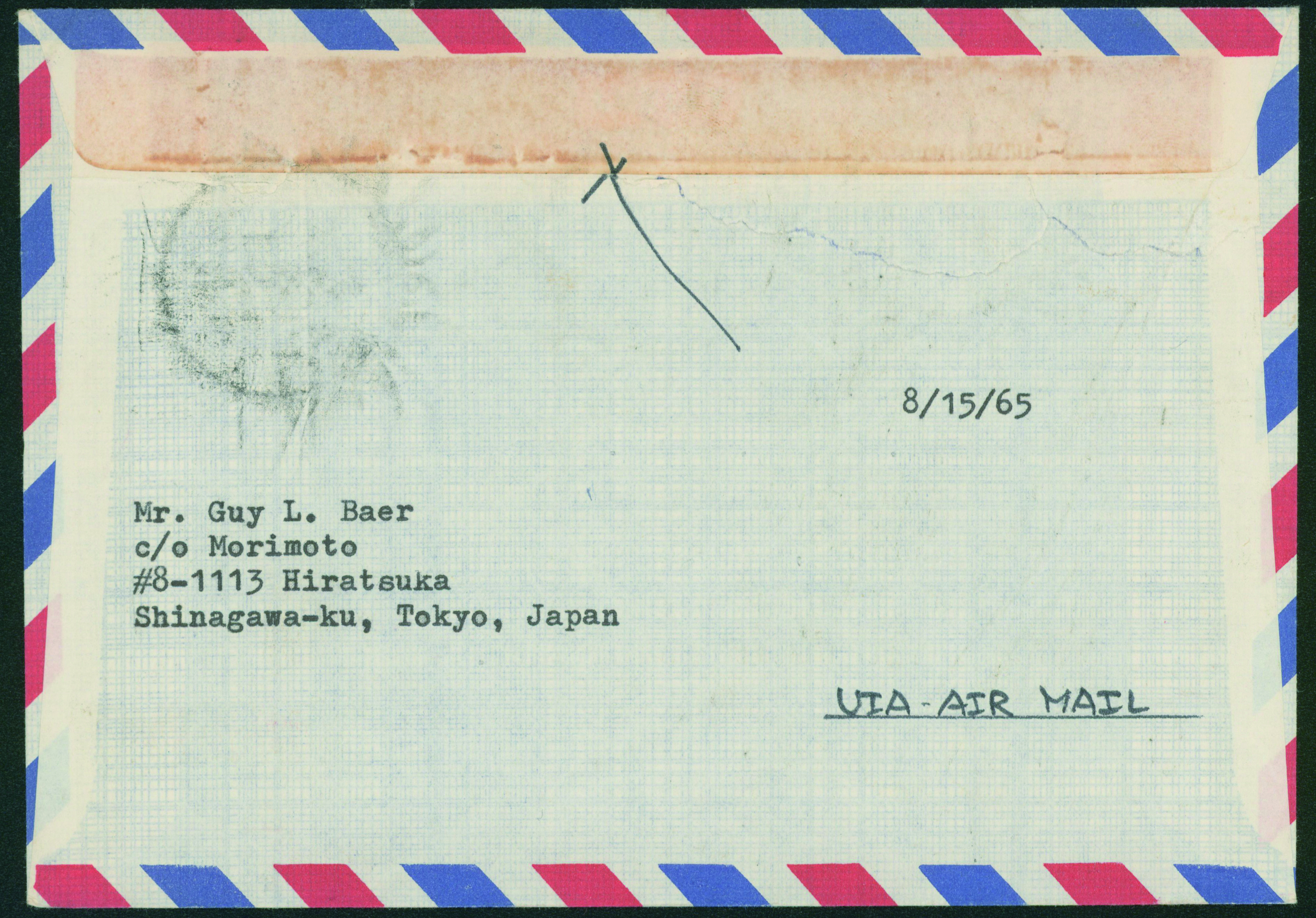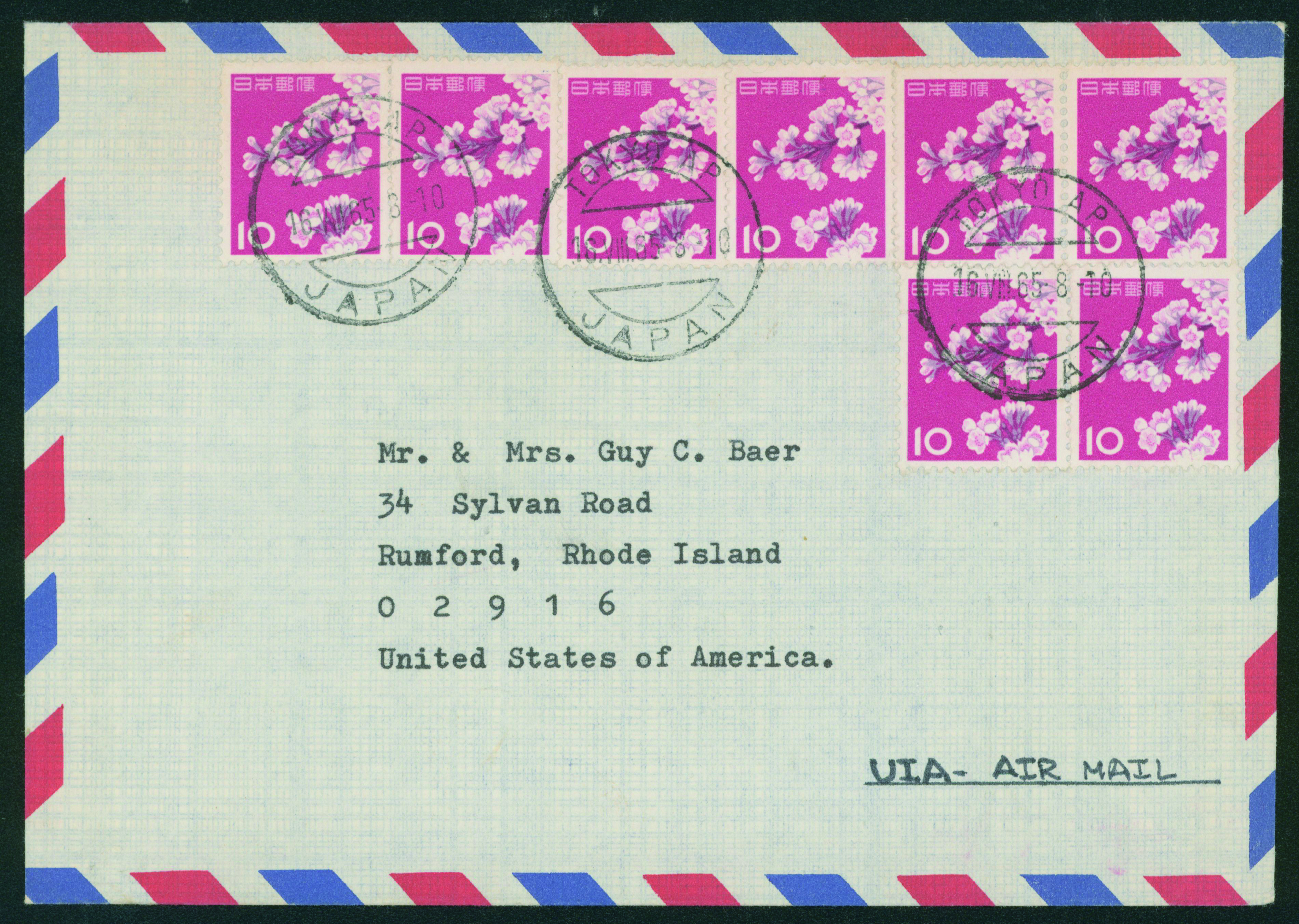376 374(8) image1961-1965 issue 10 Yen (8) cancelled by roman letter sword cds 1965-08-18 TOKYO AP to USA (Image1) (Image2) (All Images)