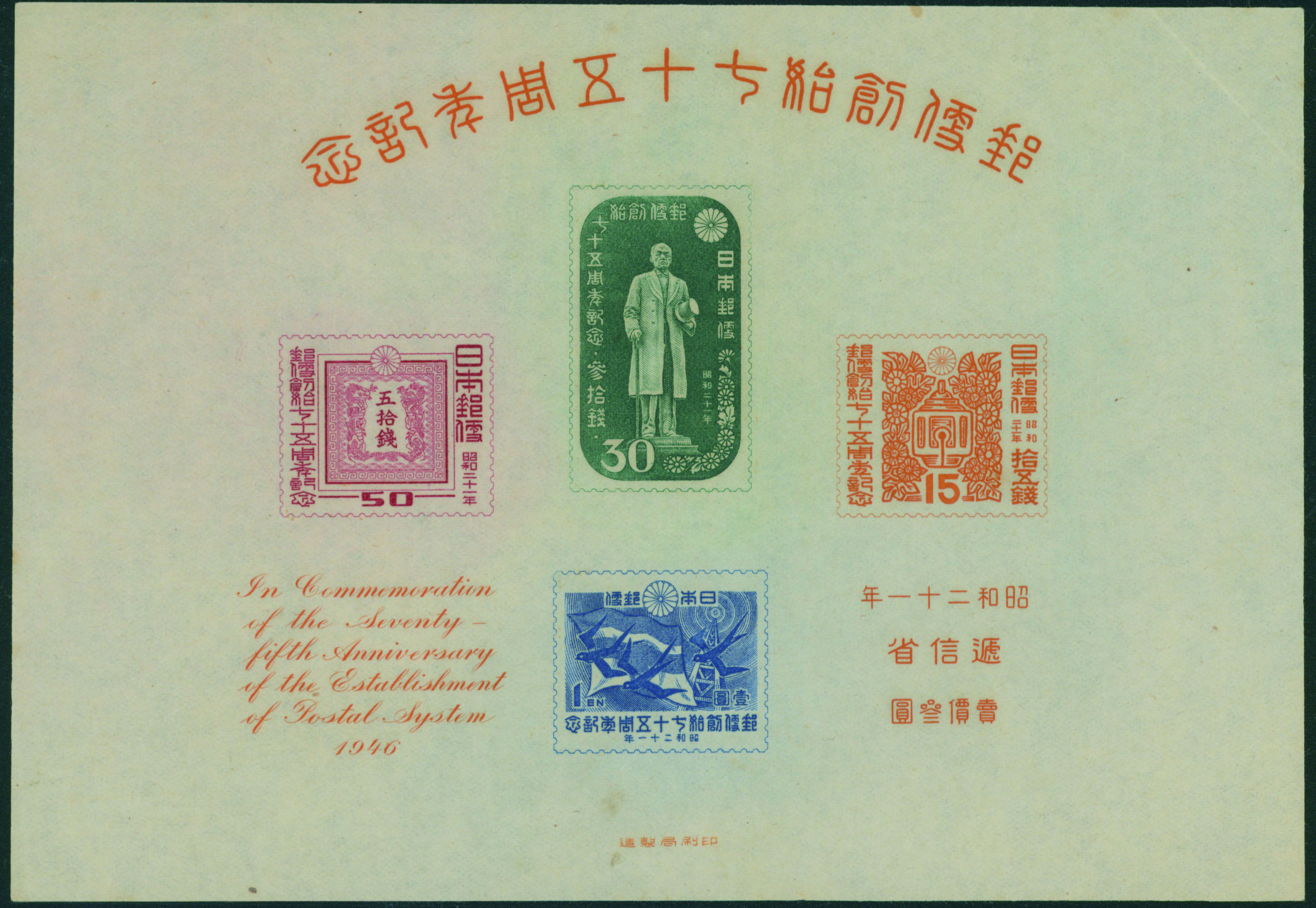 494 C107 image1947 Commemorative stamp 4 Yen unused shifted perforation (Image1) (Image2) (All Images)