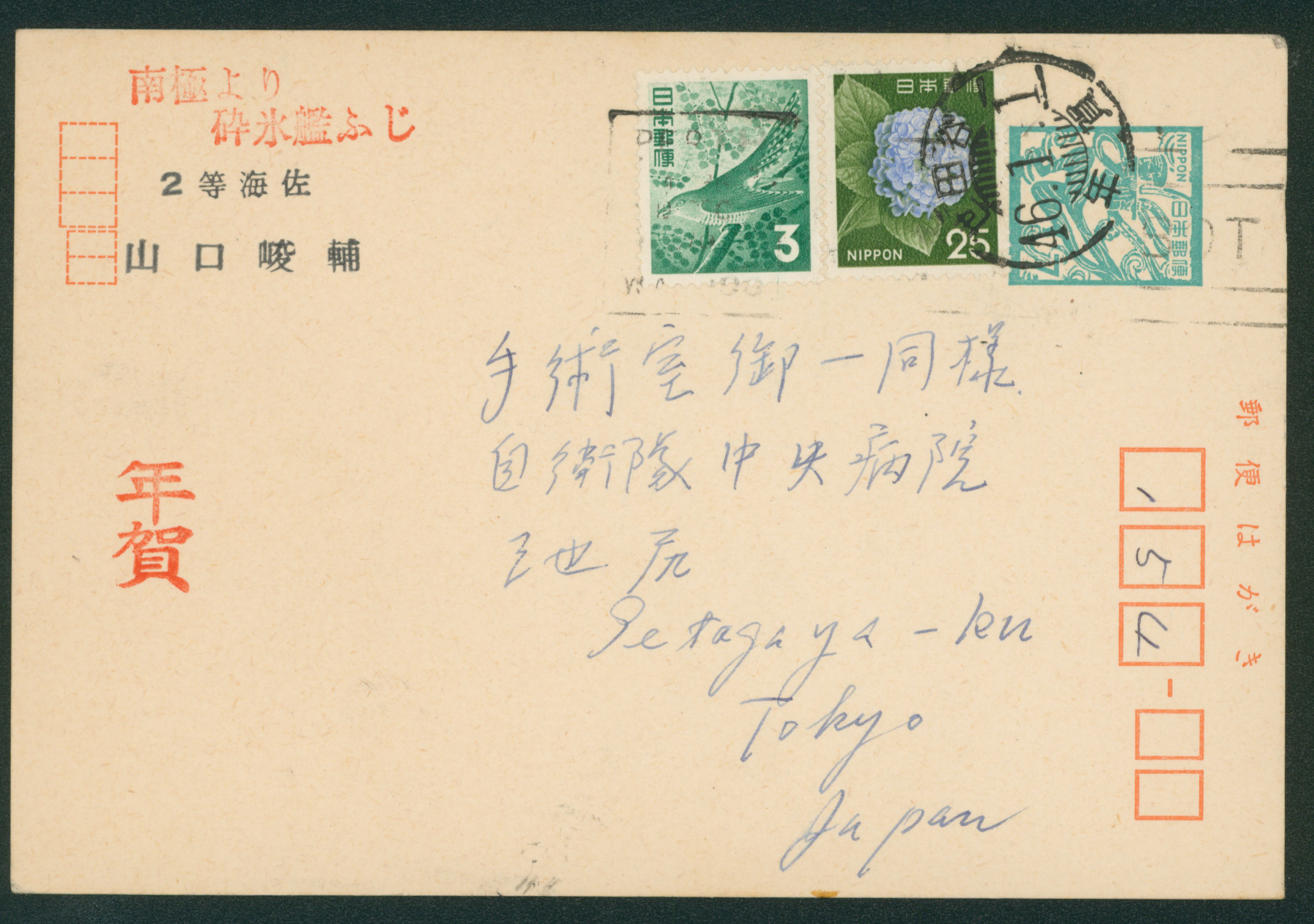484 PC66,354,404 imageInternal Postalcard 1969 issue 3rd 7 Yen , 1952-1959 issue 3 Yen , 1966 issue 25 Yen cancelled by machine cancellation to Setagaya arrival :1/1 年賀 new year greeting mail, PAQUEBOT, (Image1) (Image2) (All Images)