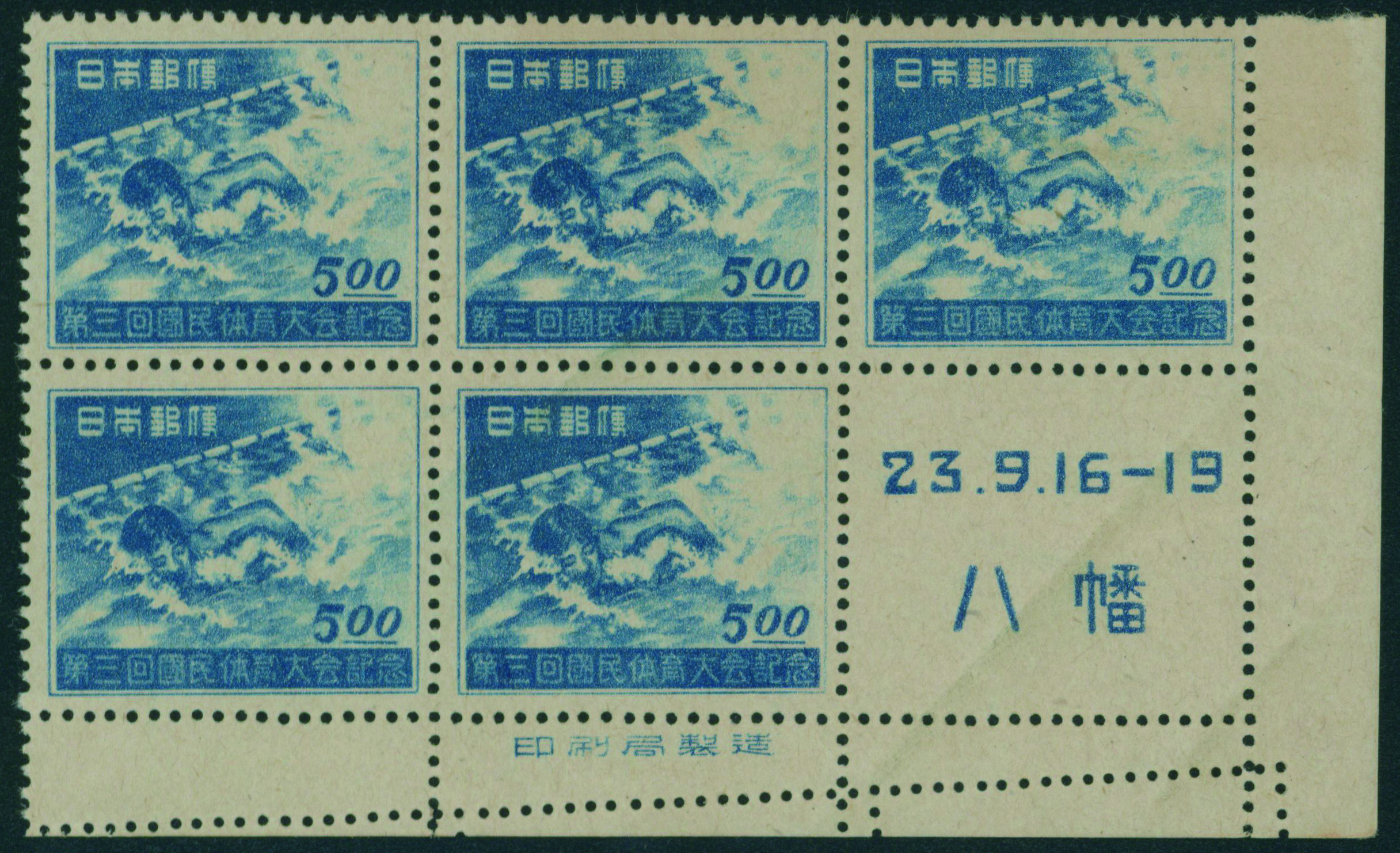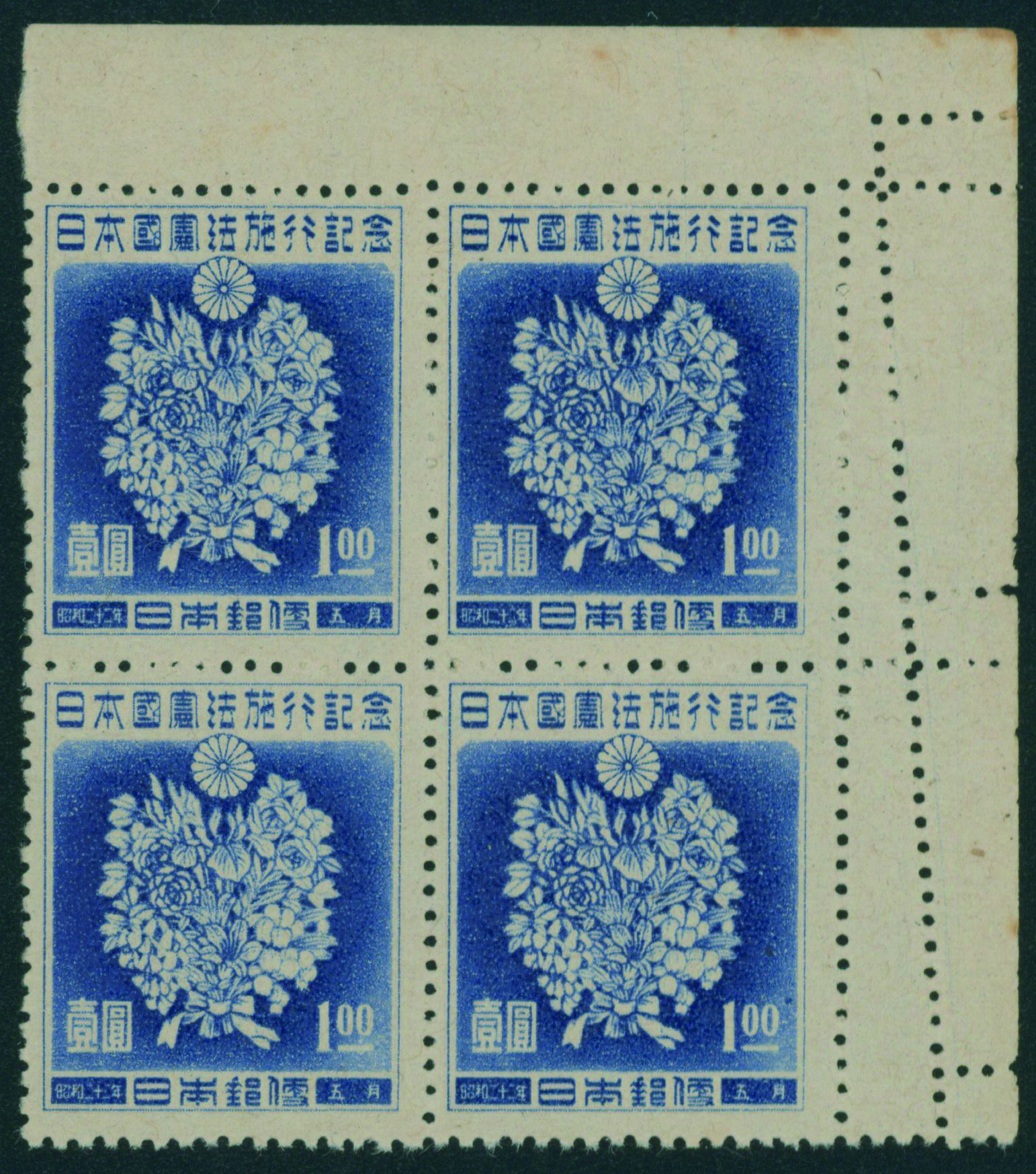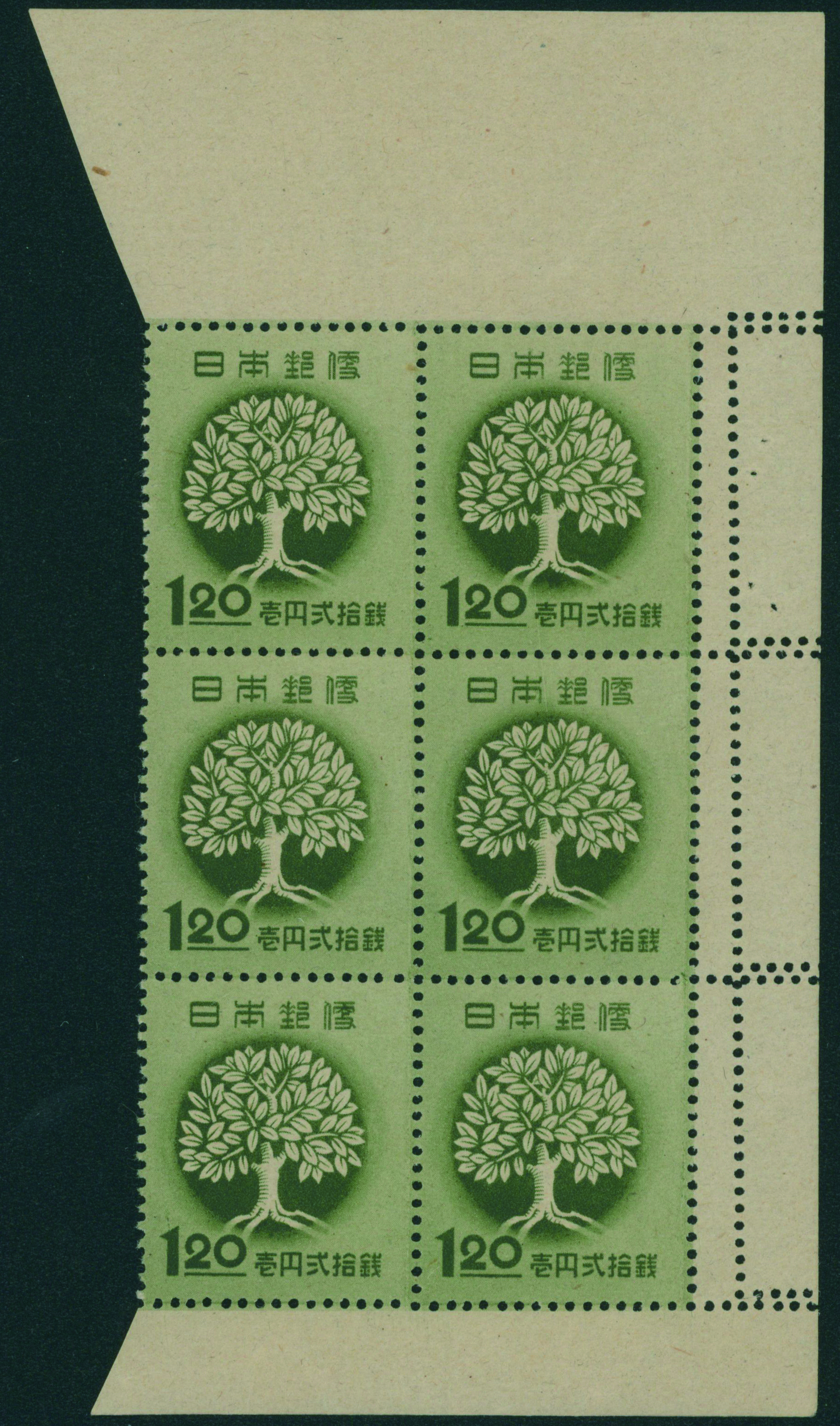 491 C102(4B) image1947 Commemorative stamp 50 Sen block(4) unused full original gum, excess perforation on the left margin (Image1) (Image2) (All Images)