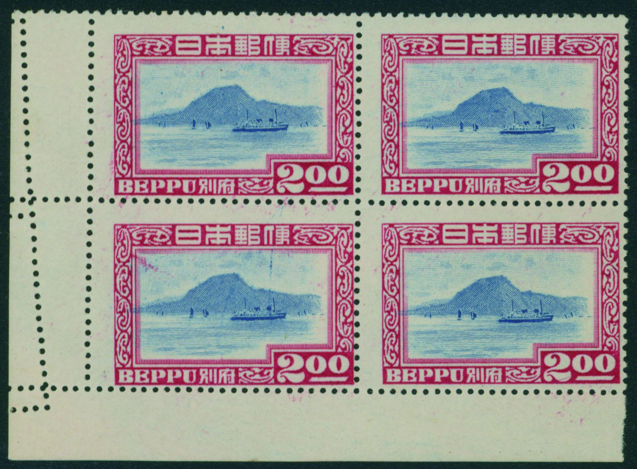 485 C100(4B) image1946 Commemorative stamp 1 Yen block(4) unused full original gum, shifted perforation (Image1) (Image2) (All Images)