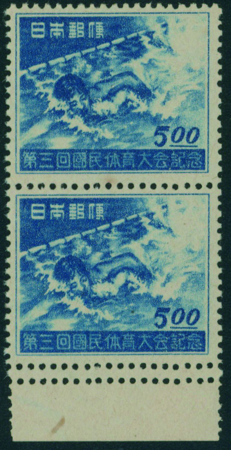 497 C128(2P) image1948 Athletic meet pair unused full original gum, double perforation on the bottom margin (Image1) (Image2) (All Images)