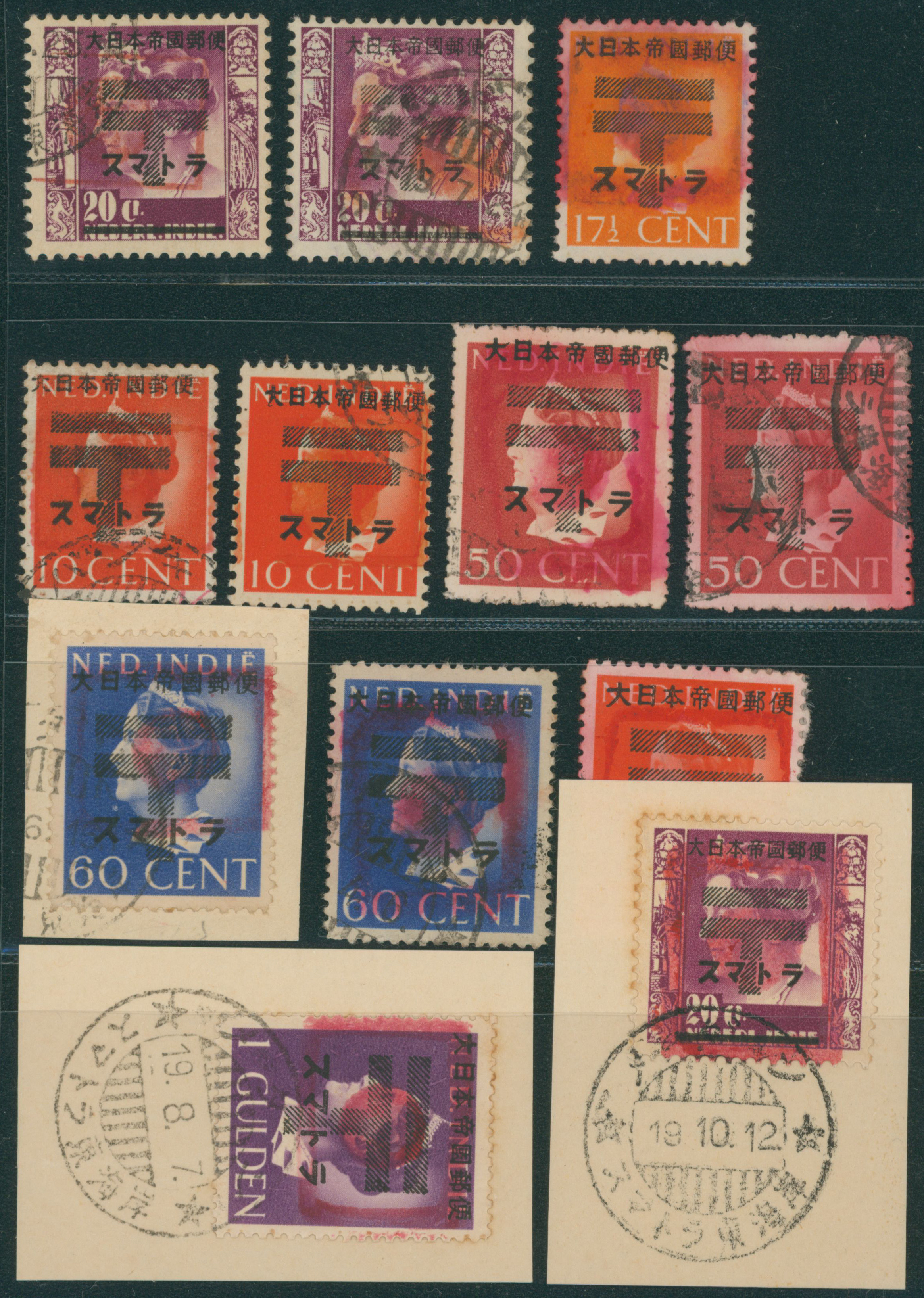 Ned. Indies Sumatra ovpt., 12 stamps mixed condition of unused and used, (Image1) (Image2)