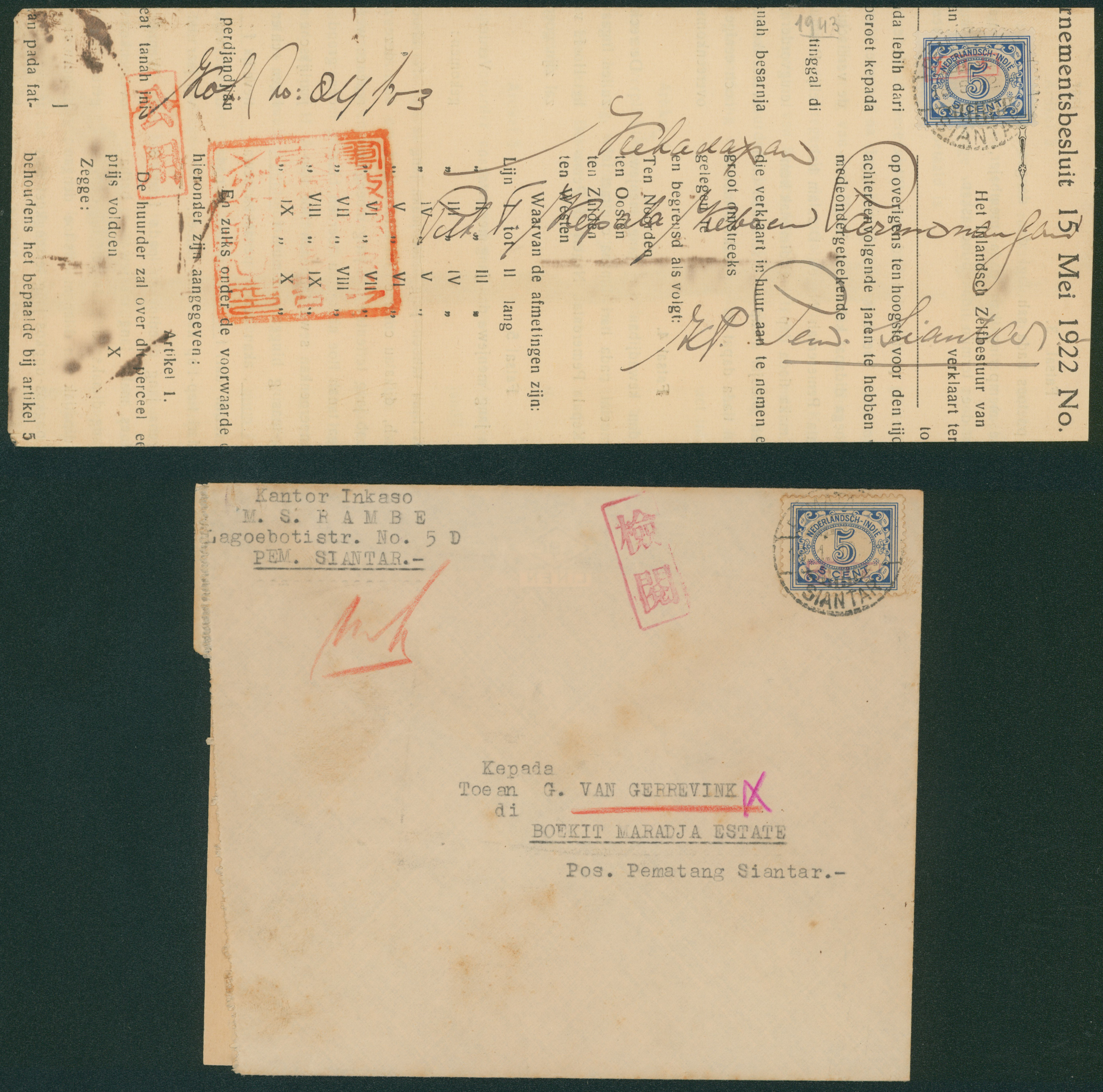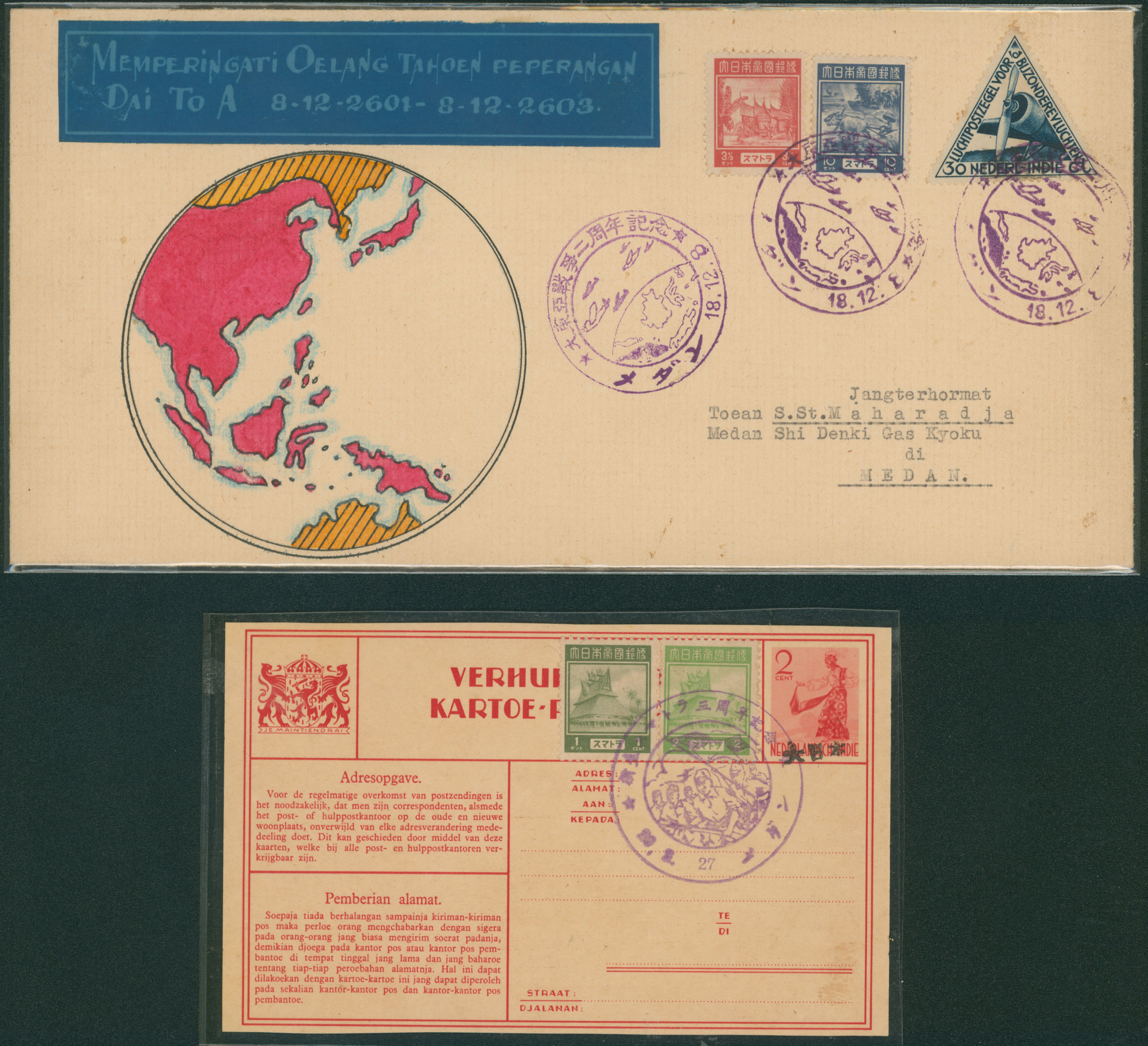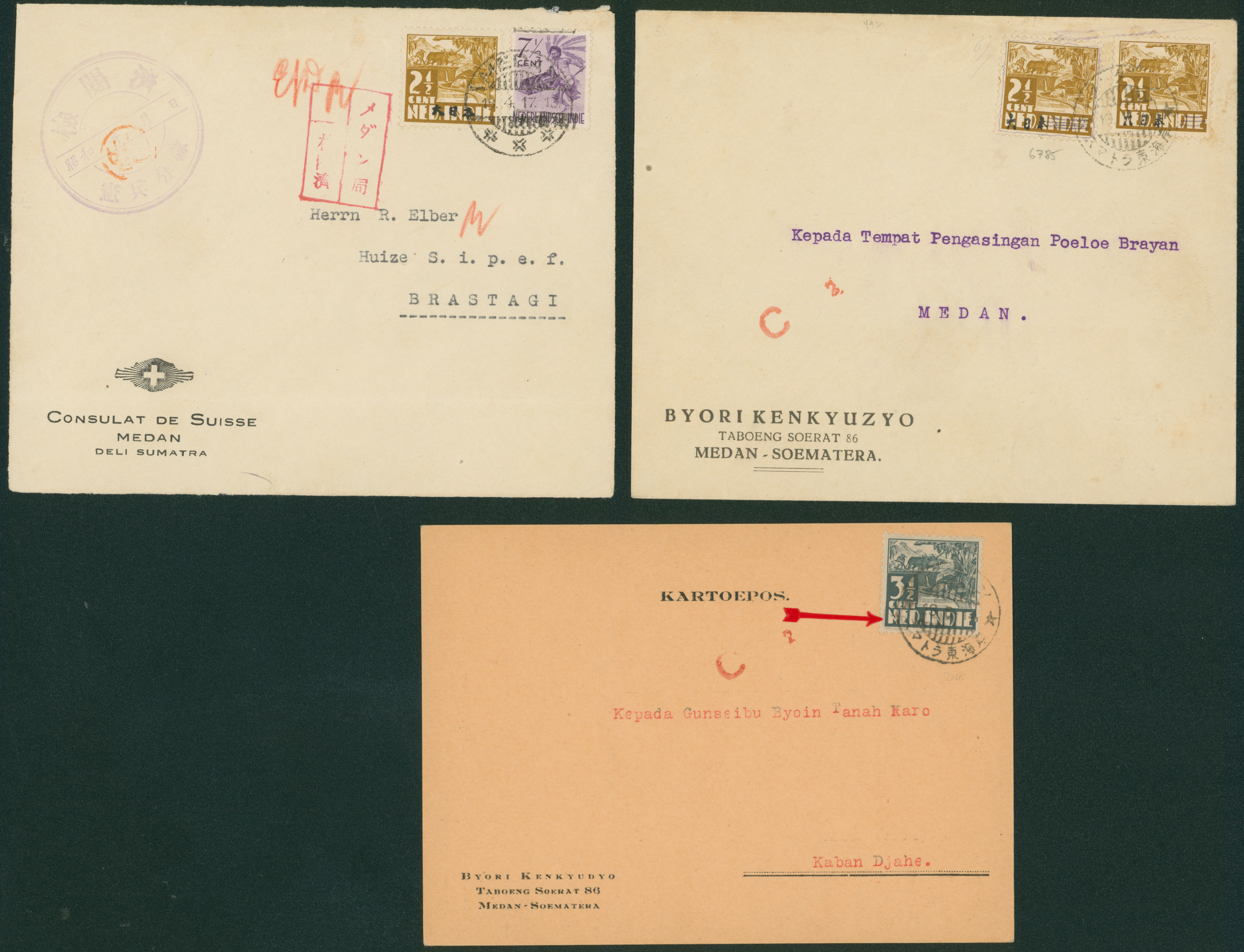Ned. Indies Sumatra , 3 covers including 1 front censored (Image1) (Image2)