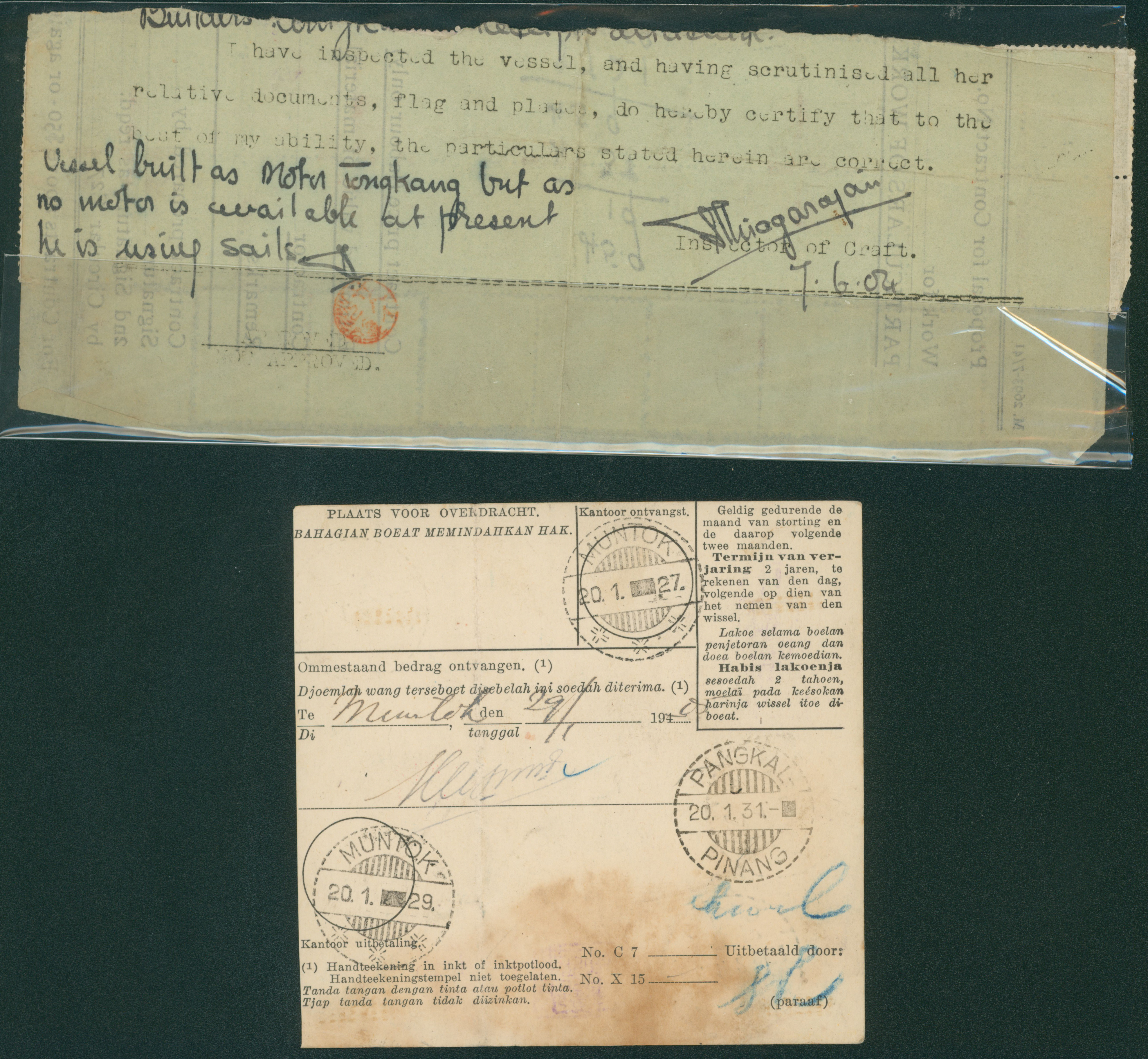 Ned. Indies Palembang 2 examples money order, good condition, censored (Image1) (Image2)