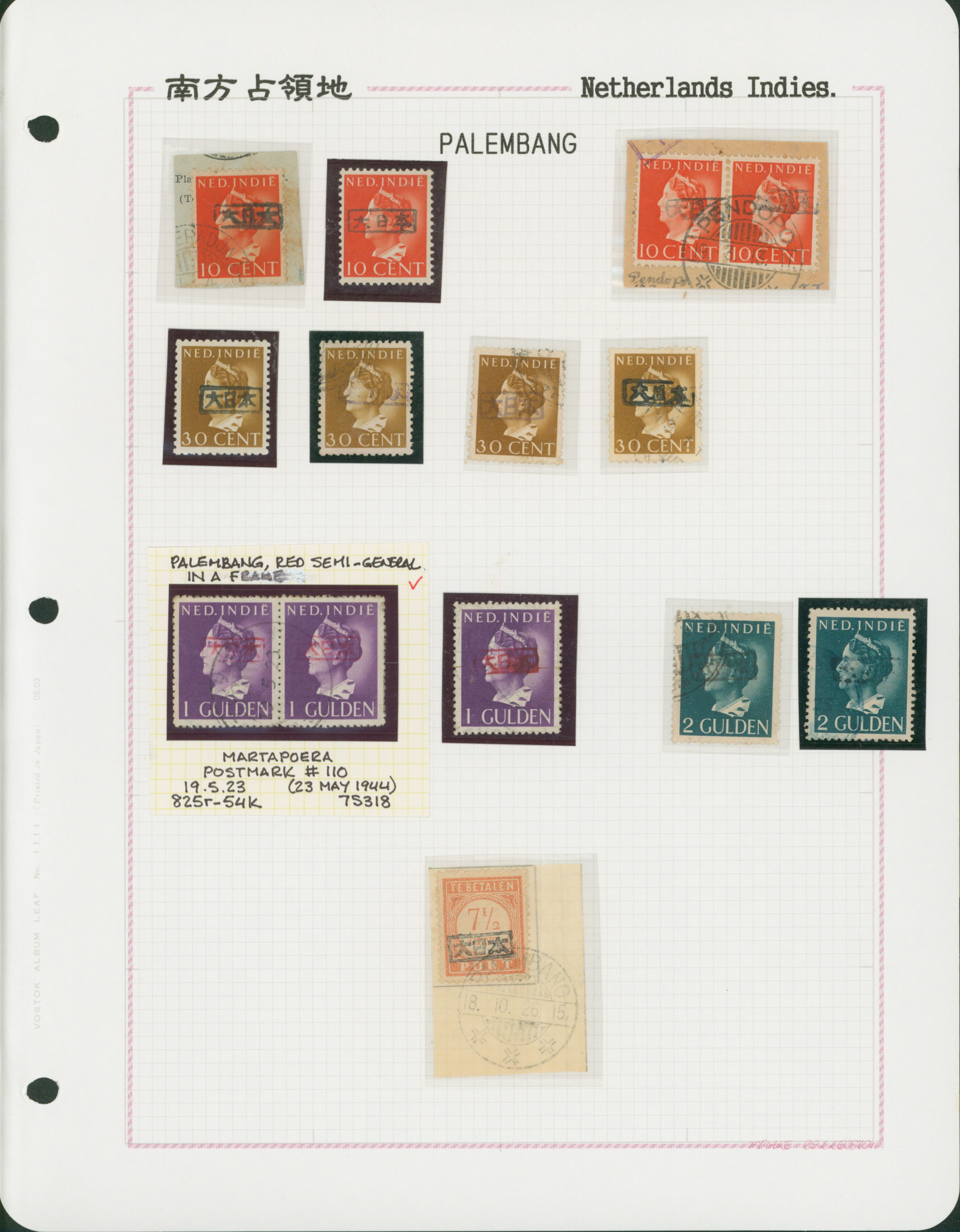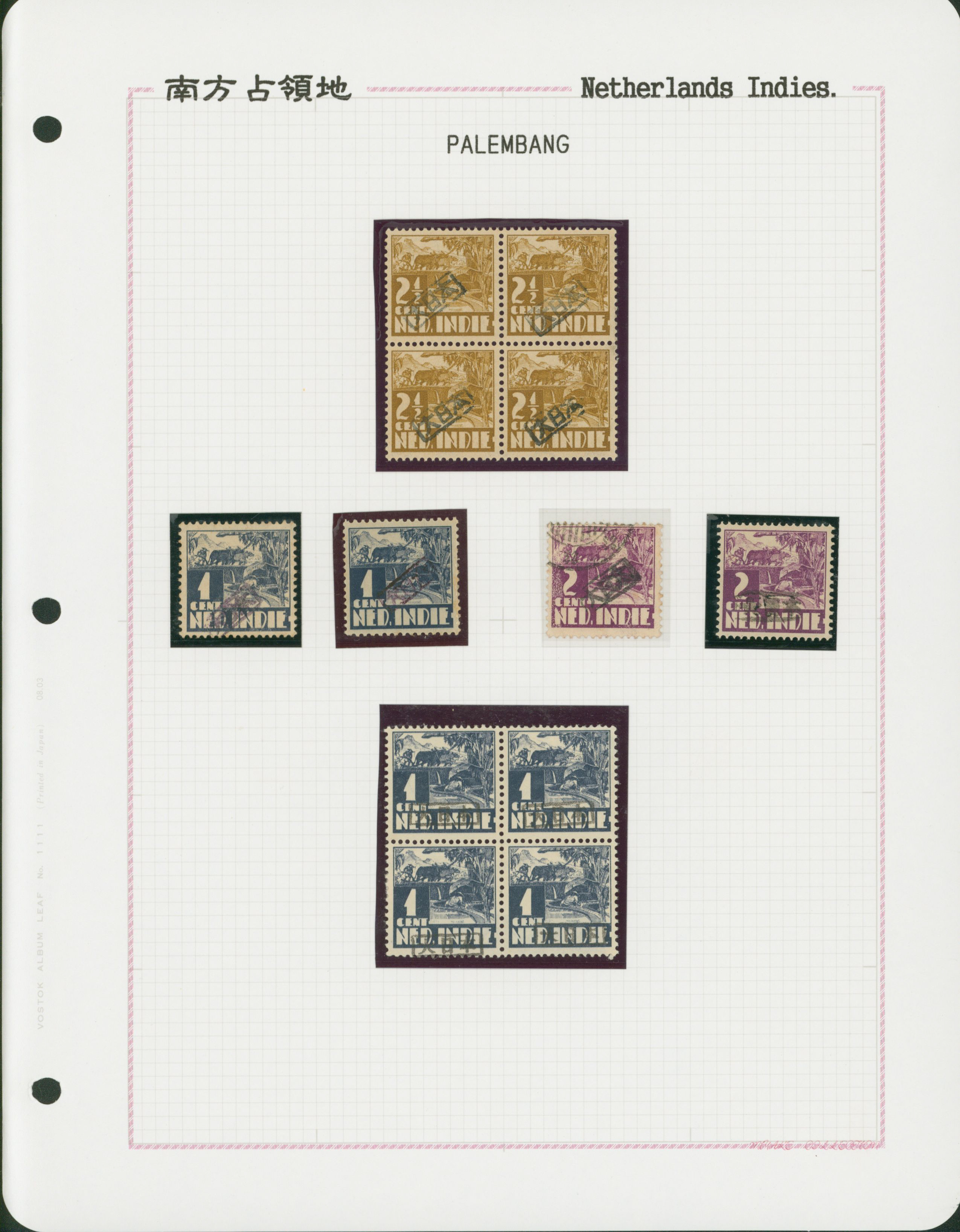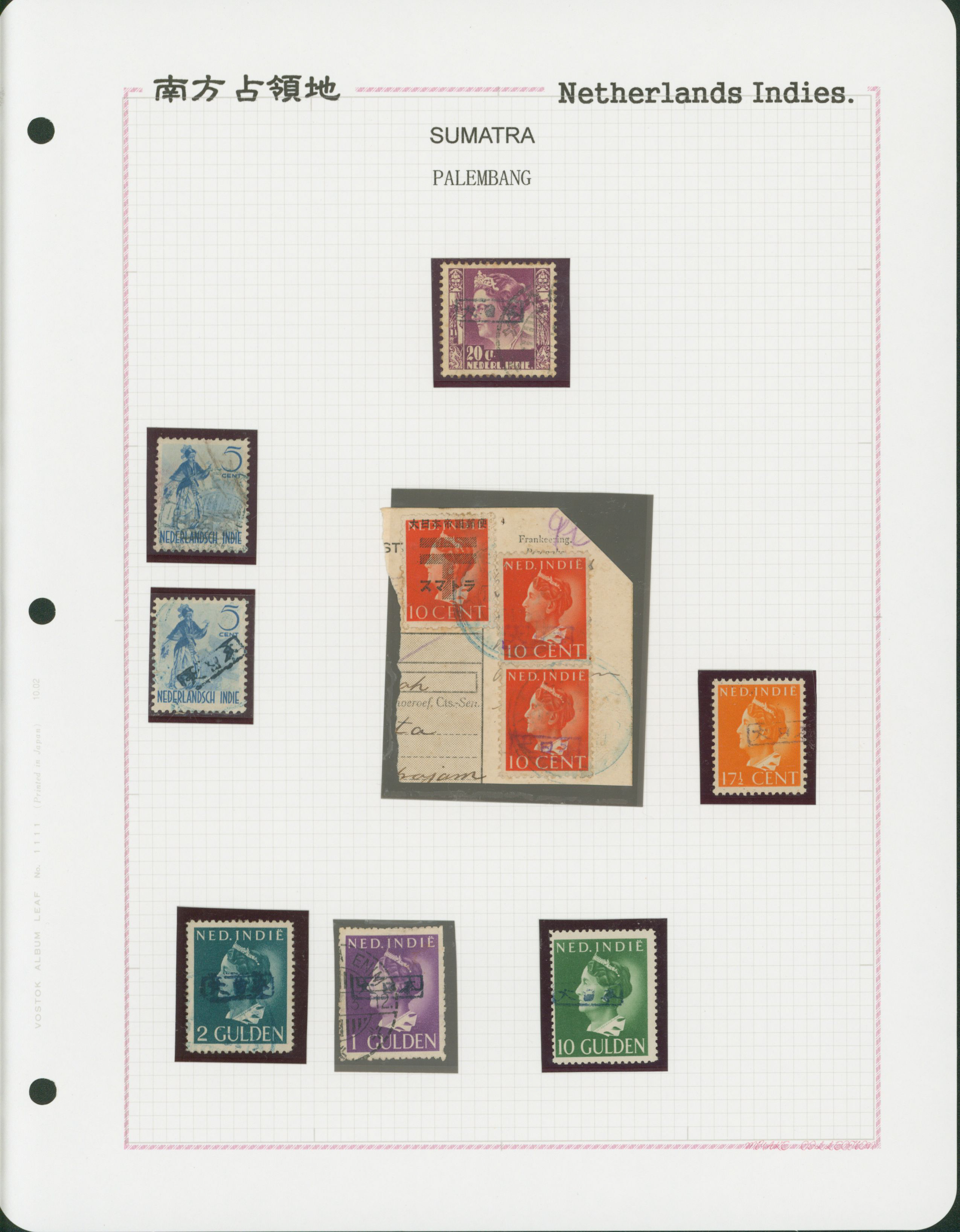 Ned. Indies Sumatra Palembang IPL 6 leaves, 100 stamps mixed condition of unused and used, including