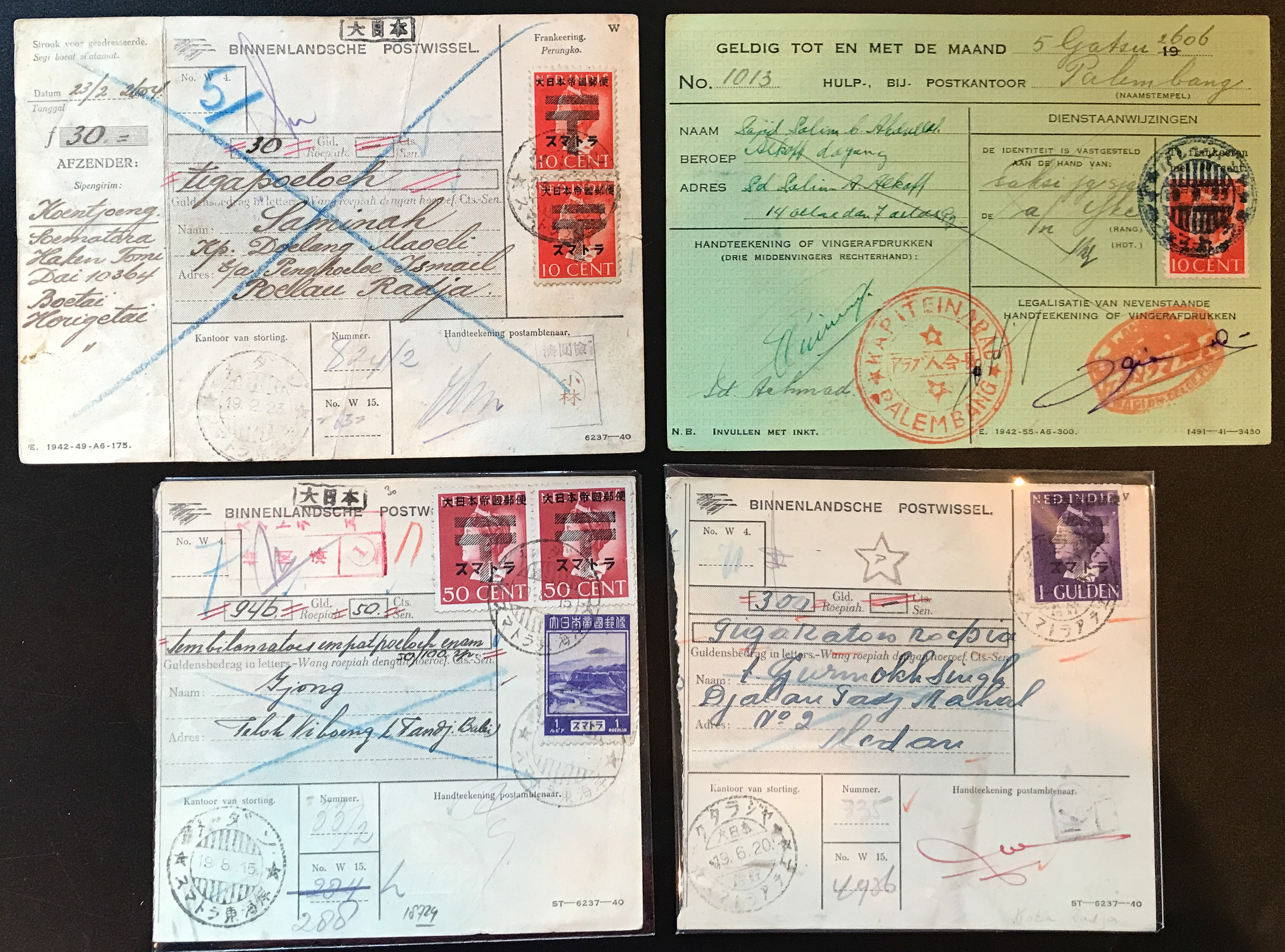 Ned. Indies Sumatra covers 3 money orders and 1 telegram document (Image1)