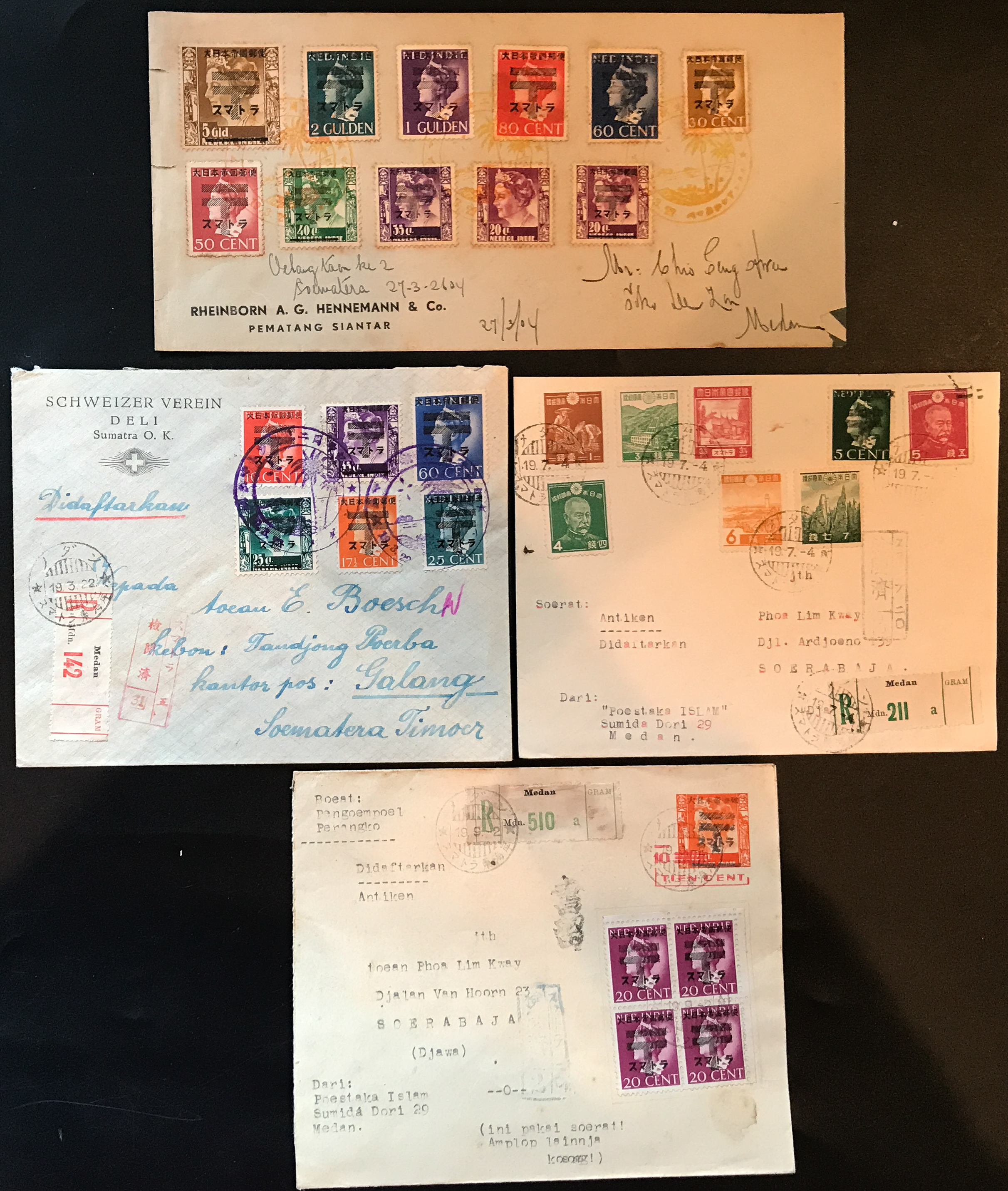 Ned. Indies Sumatra covers 4 examples including 2 fronts (Image1)