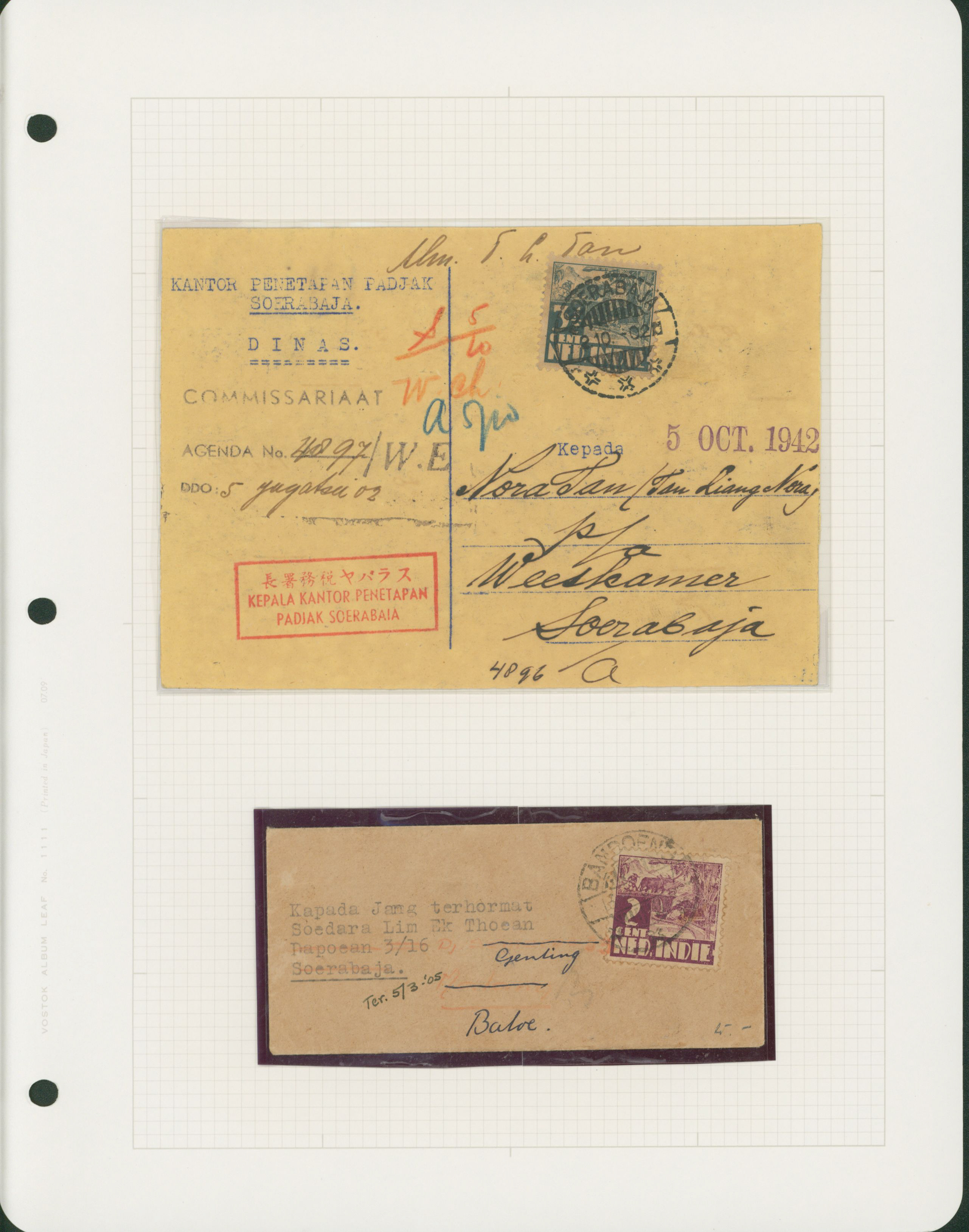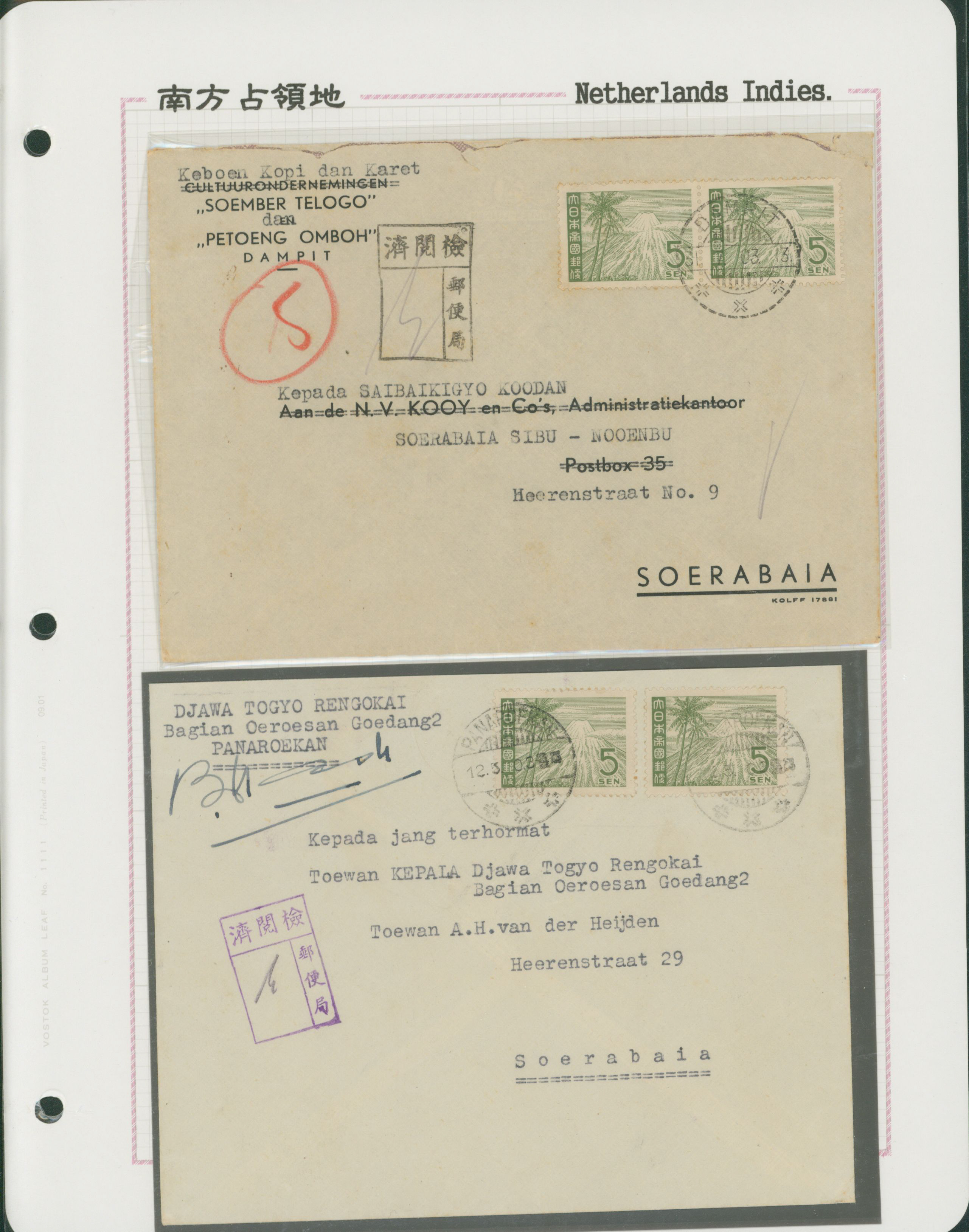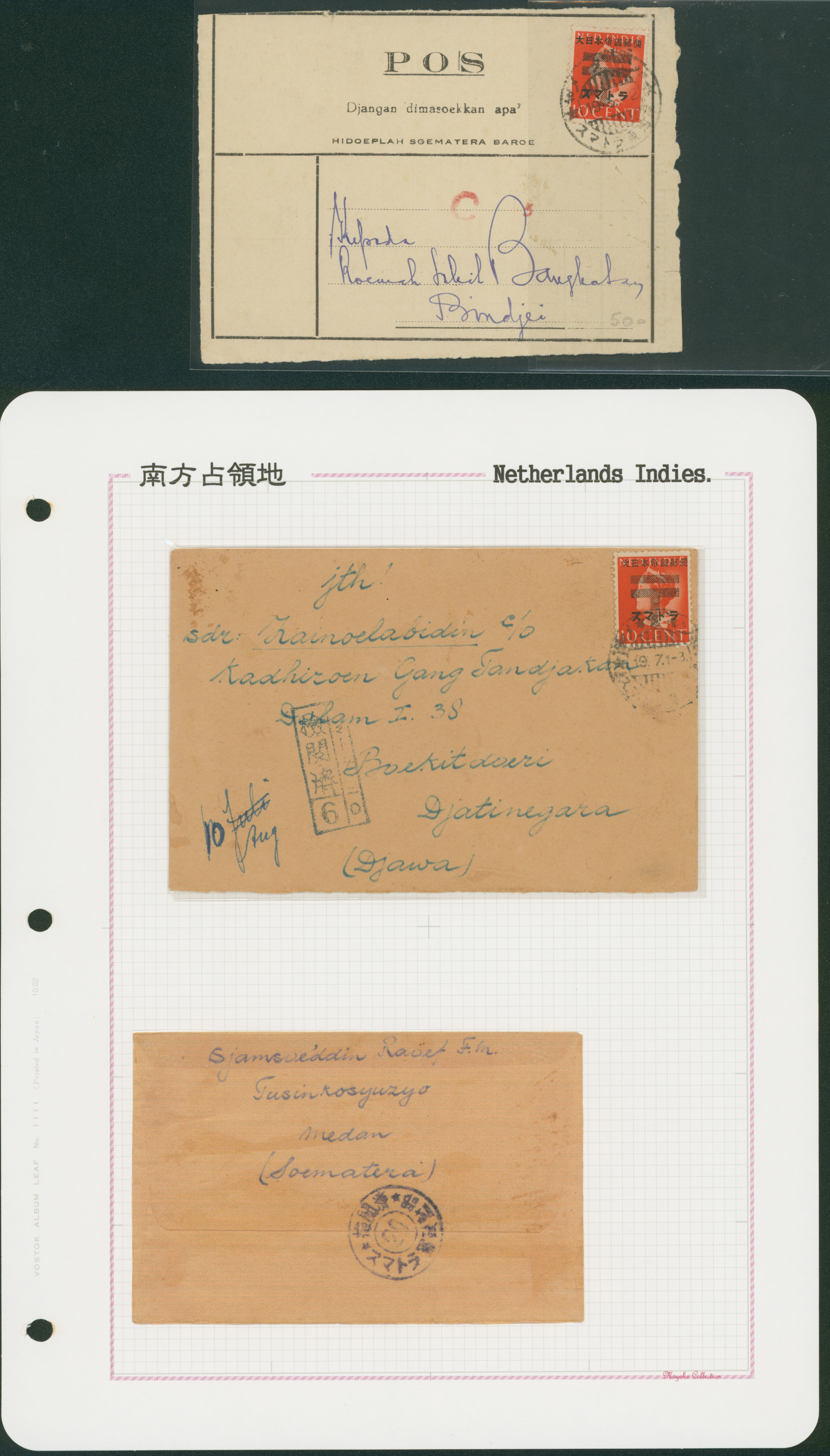650 11S66(2) imageNed. Indies Sumatra 10c , 2 covers single franking including 1 front censored (Image1) (Image2) (All Images)