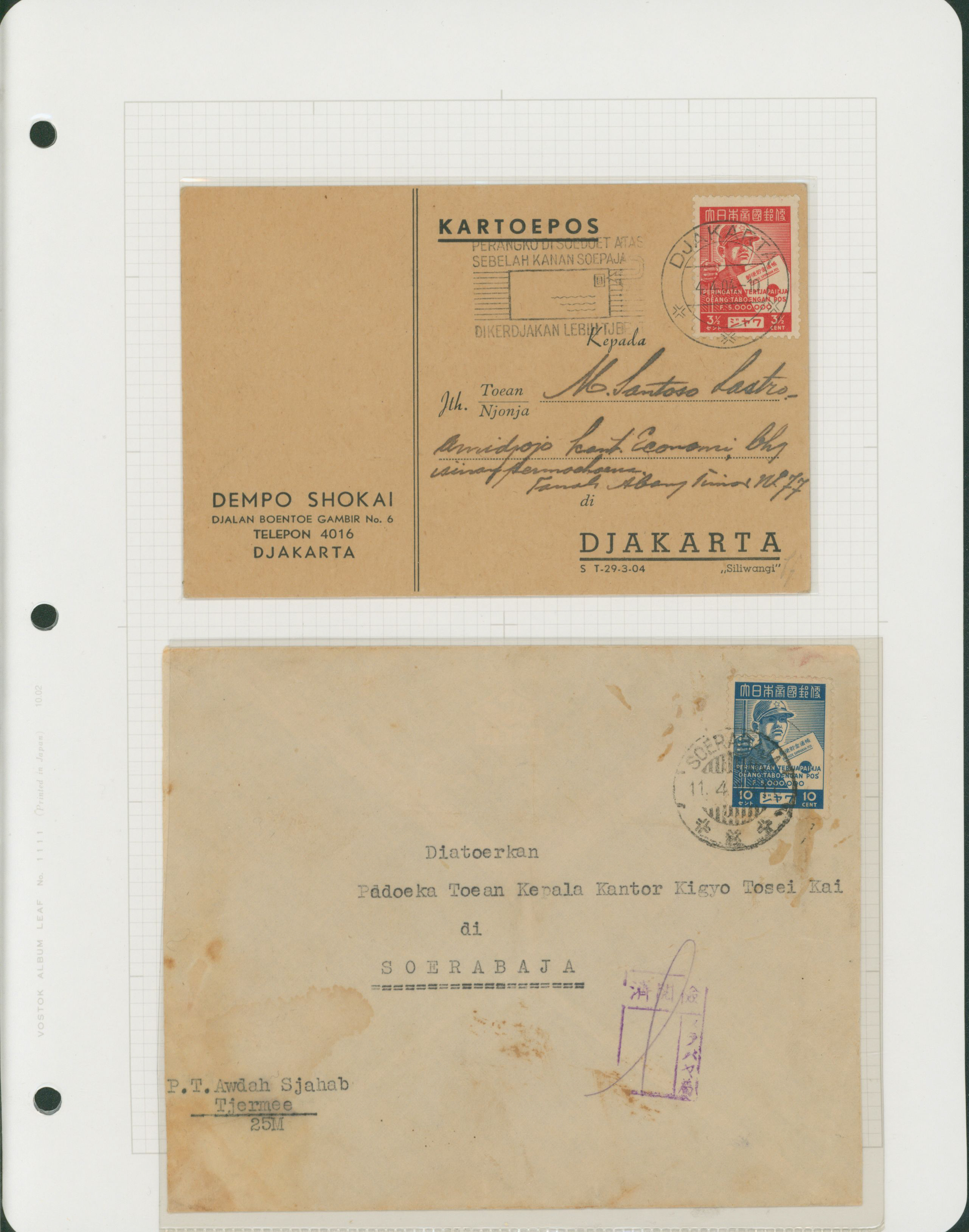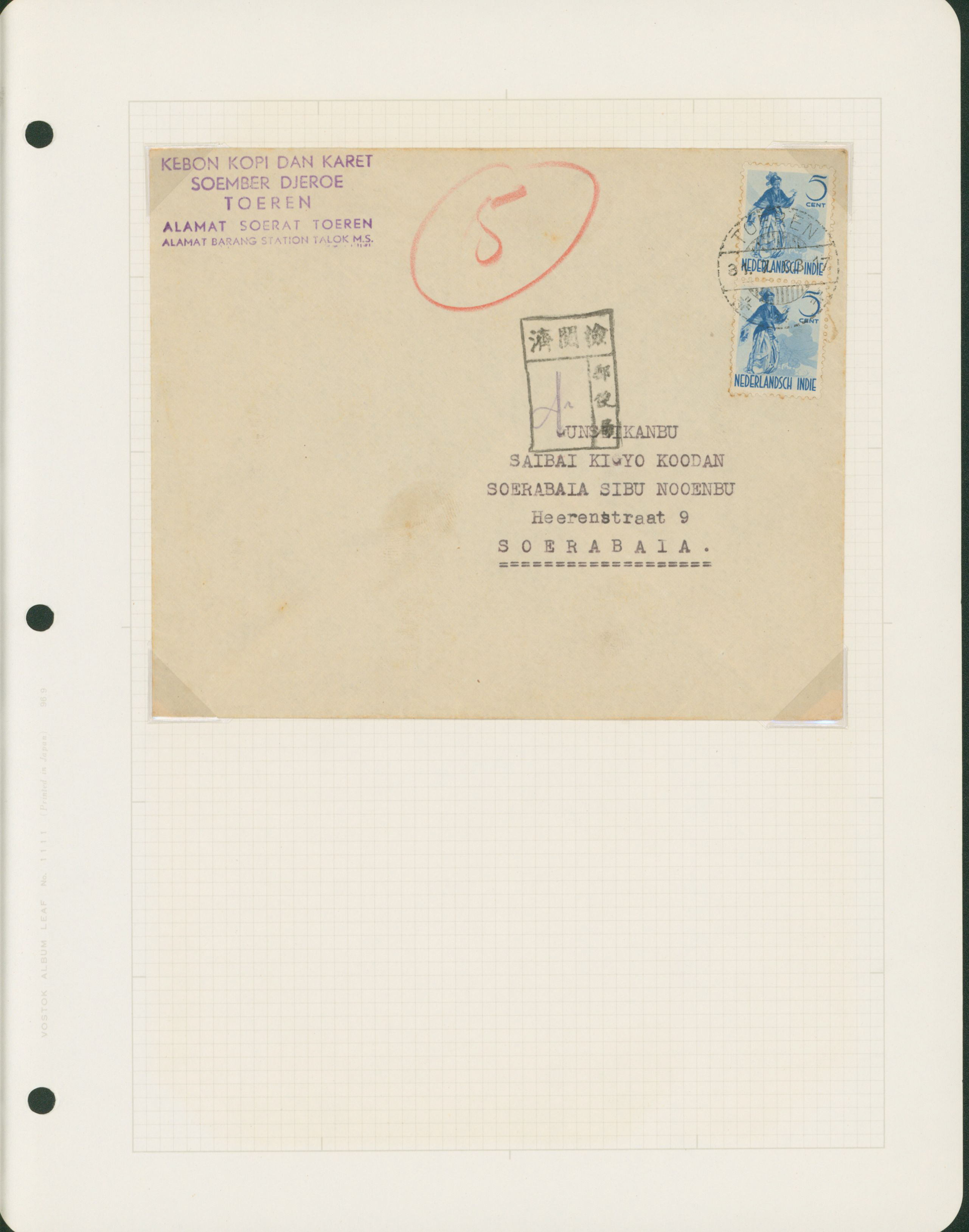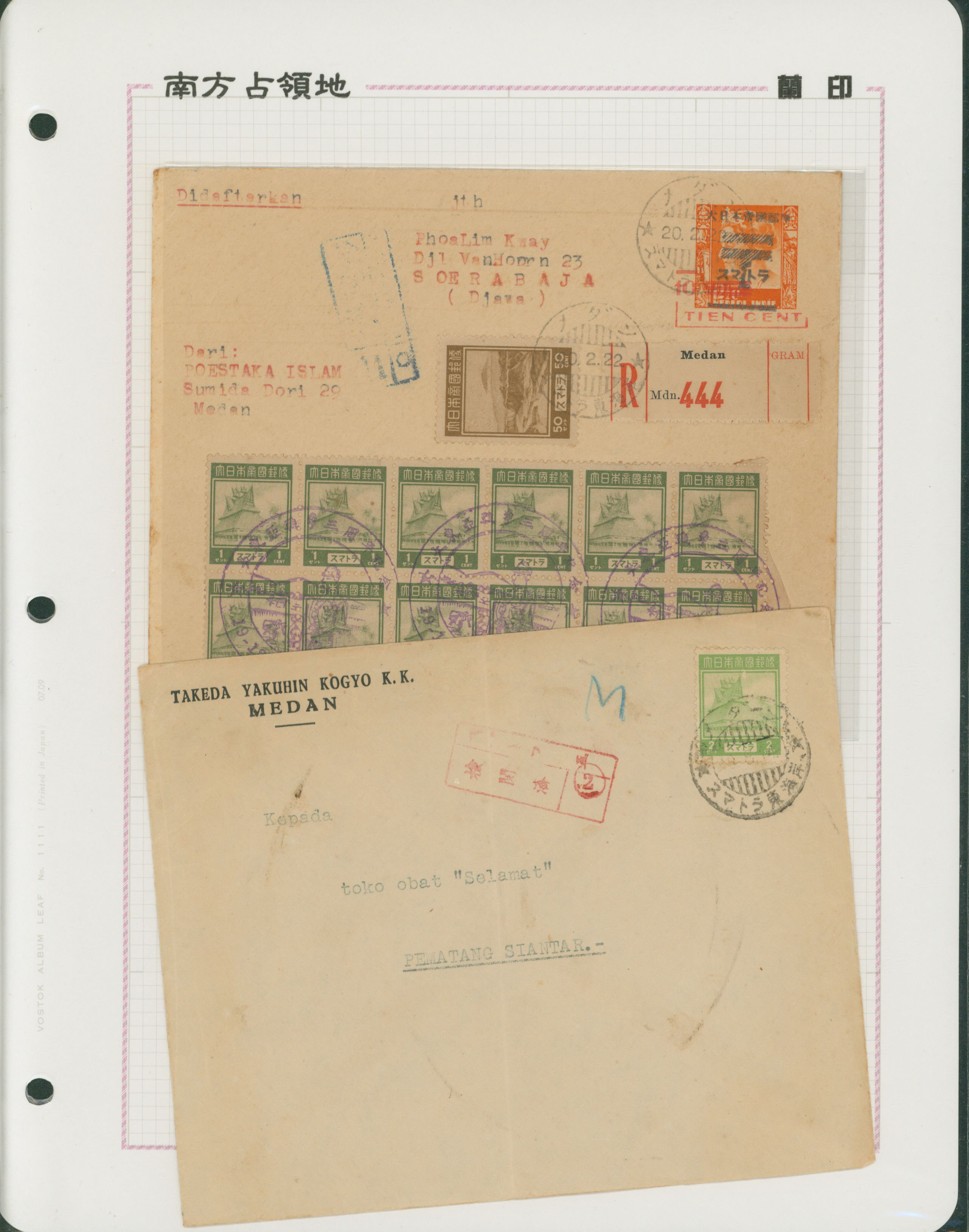 650 11S66(2) imageNed. Indies Sumatra 10c , 2 covers single franking including 1 front censored (Image1) (Image2) (All Images)
