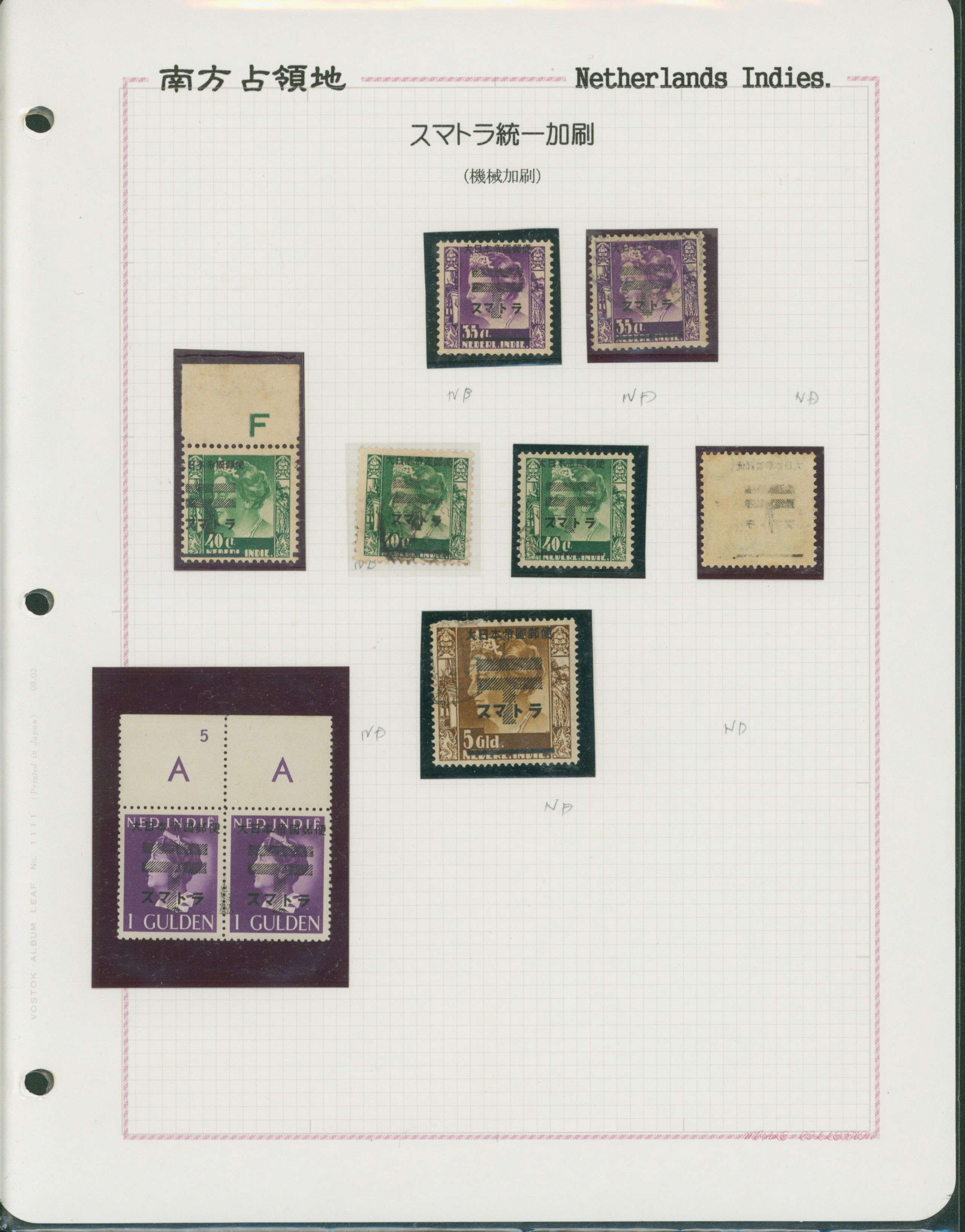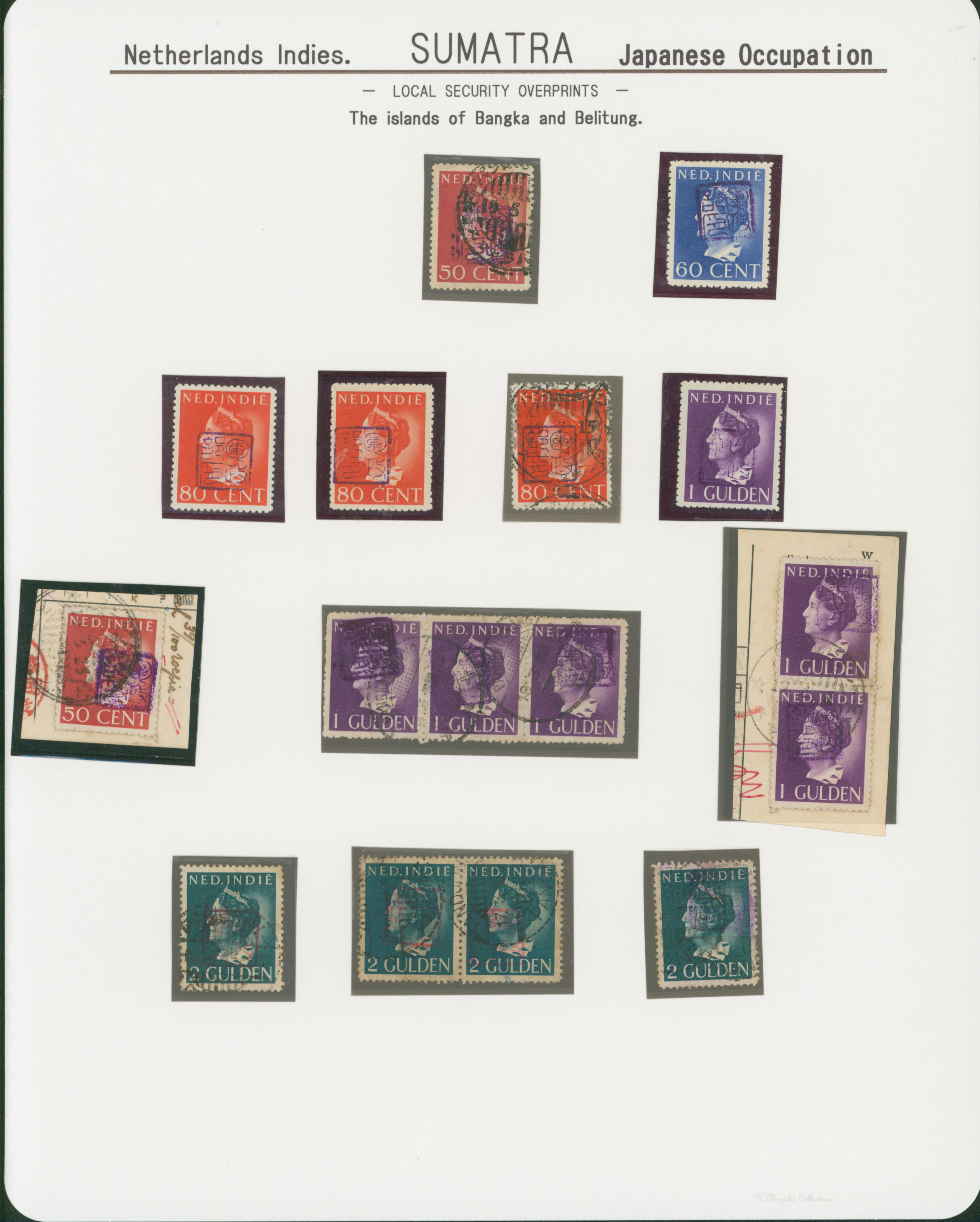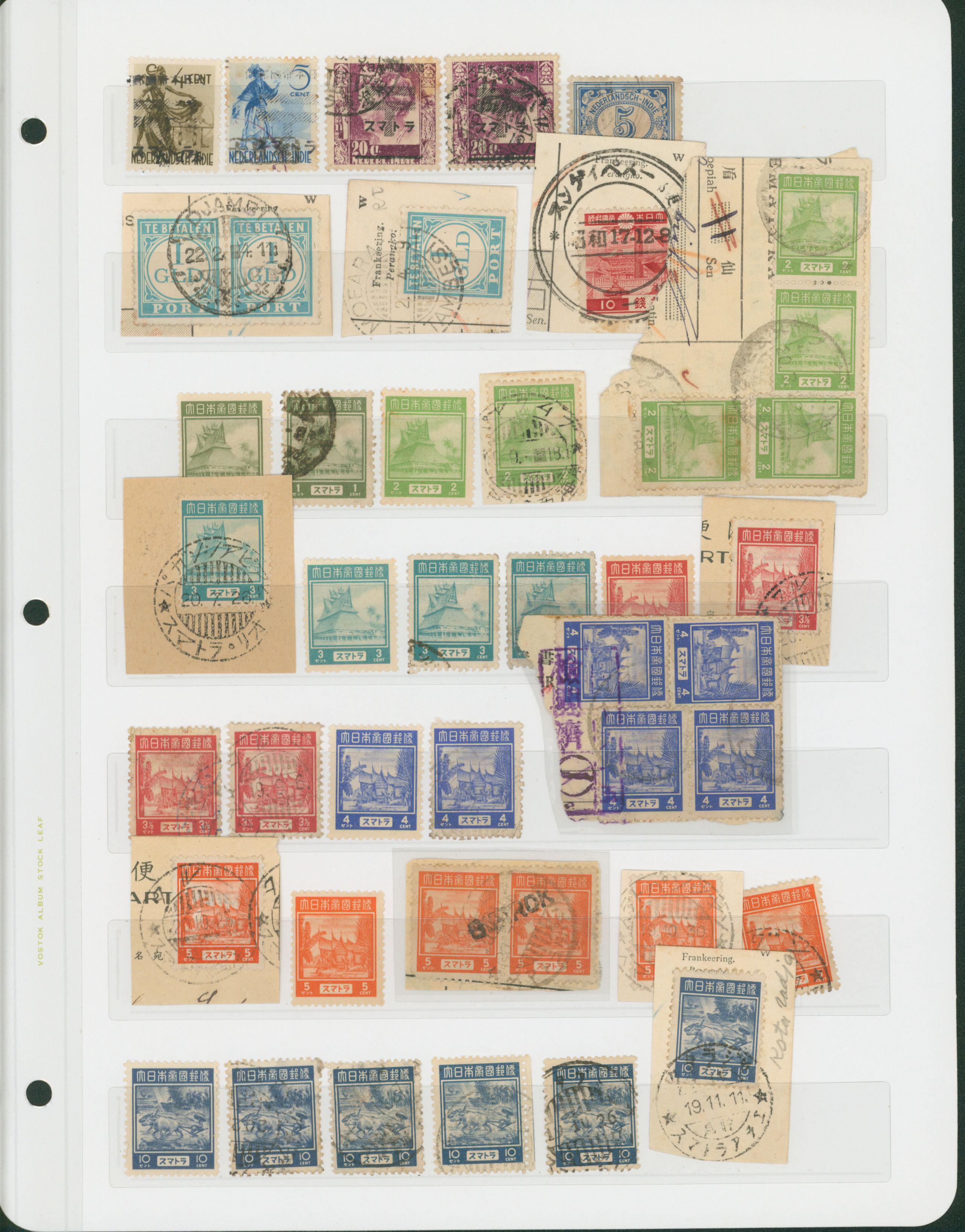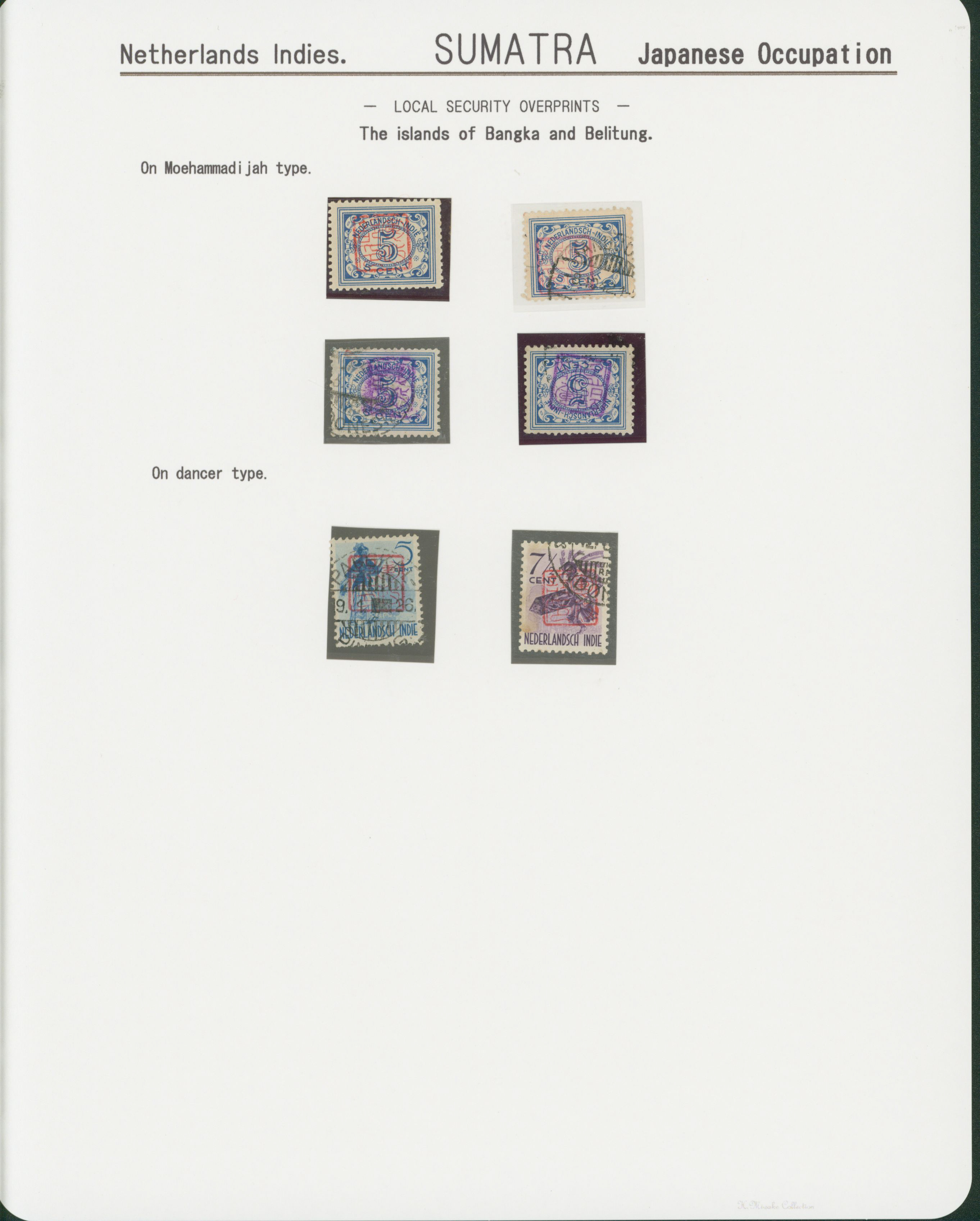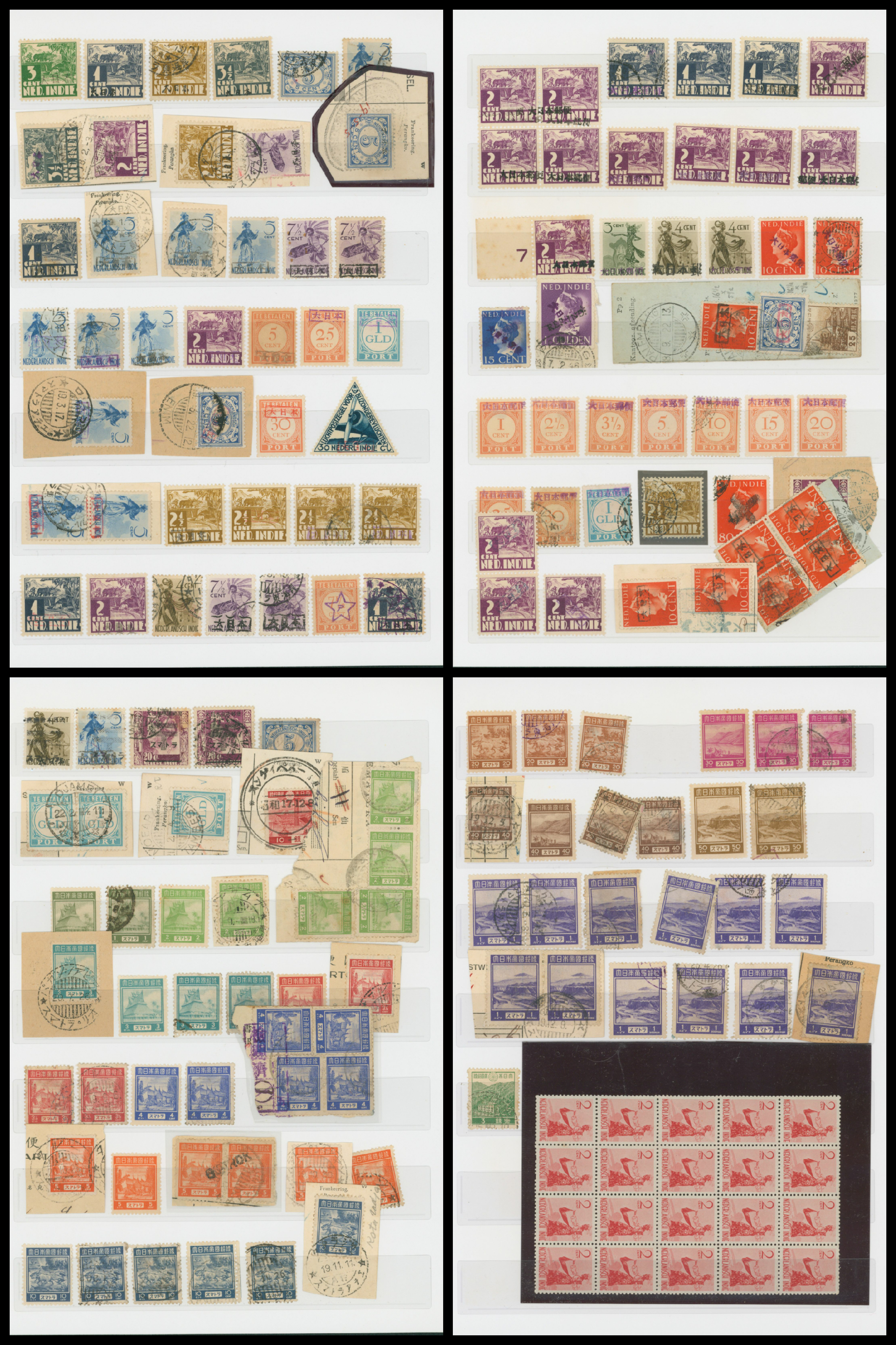652   imageNed. Indies Sumatra Unification Overprint 6 leaves, 70 stamps unused used including shifted overprint, offset, and inverted ovpt. varieties (Image1) (Image2) (Image3) (Image4) (Image5) (Image6) (Image7) (All Images)