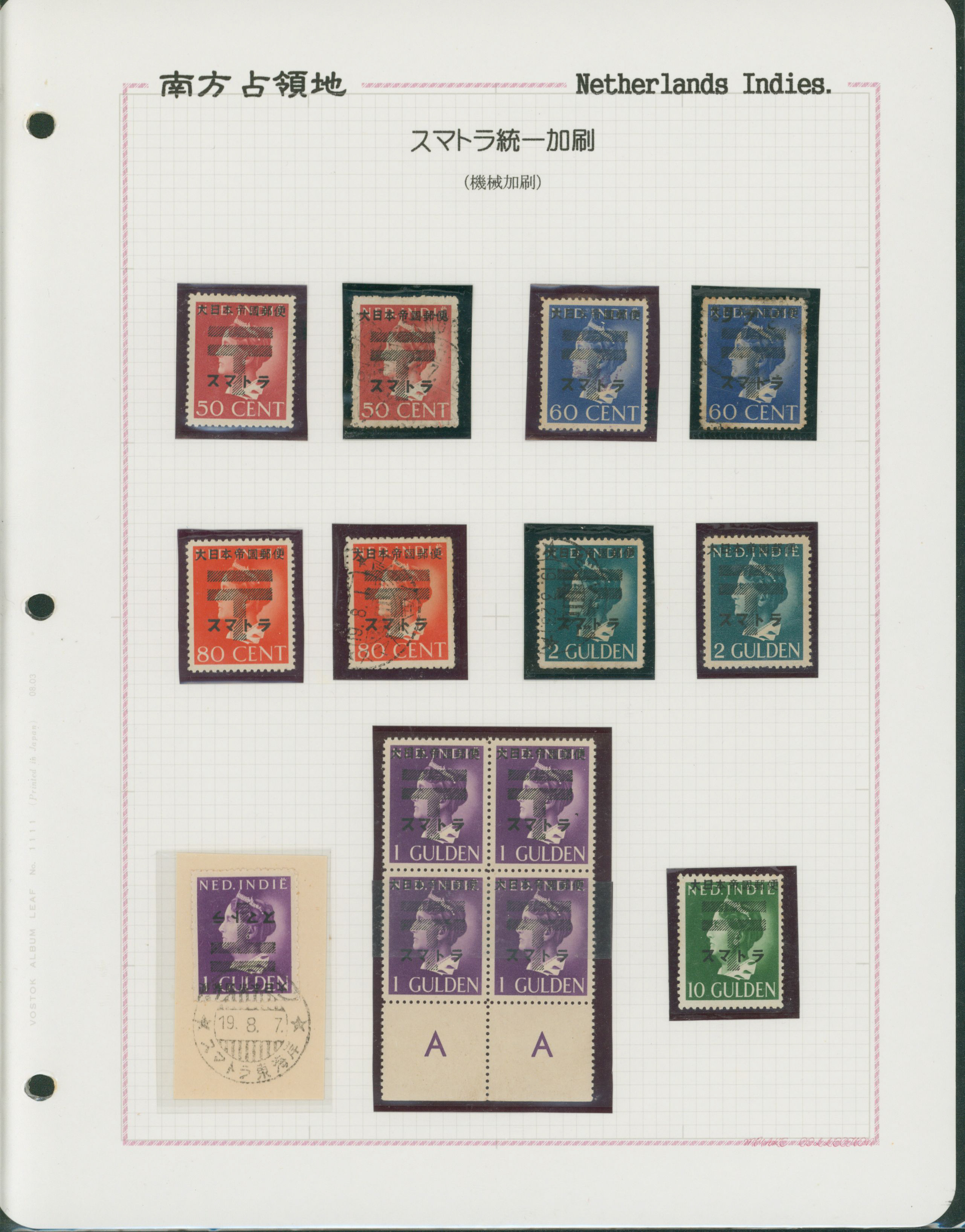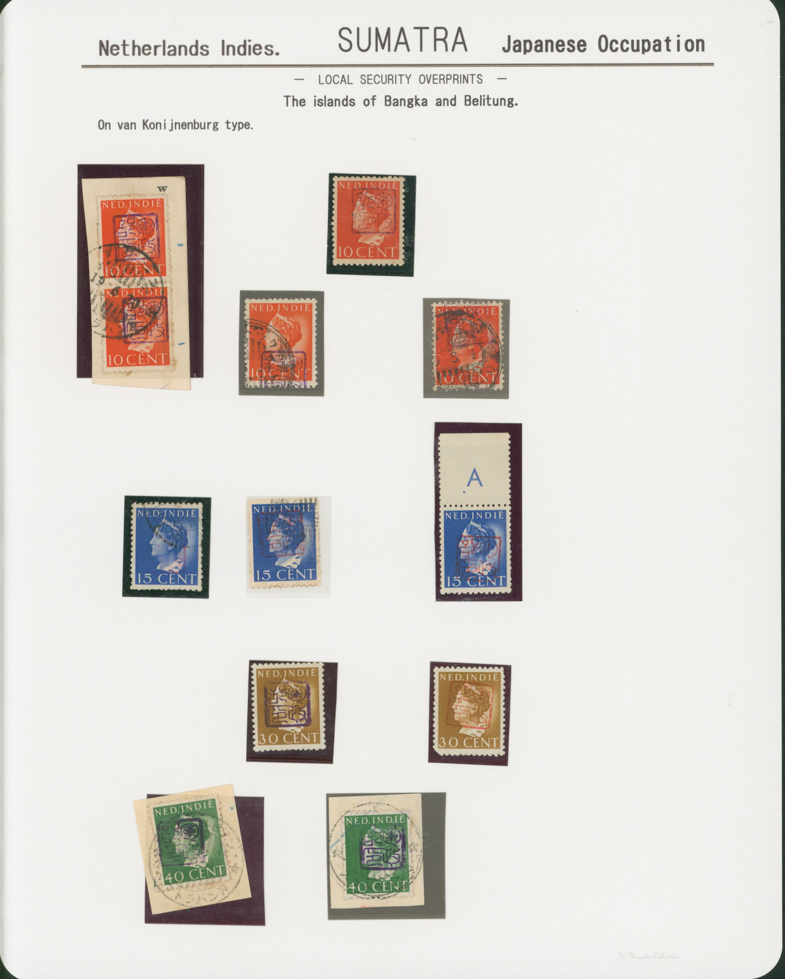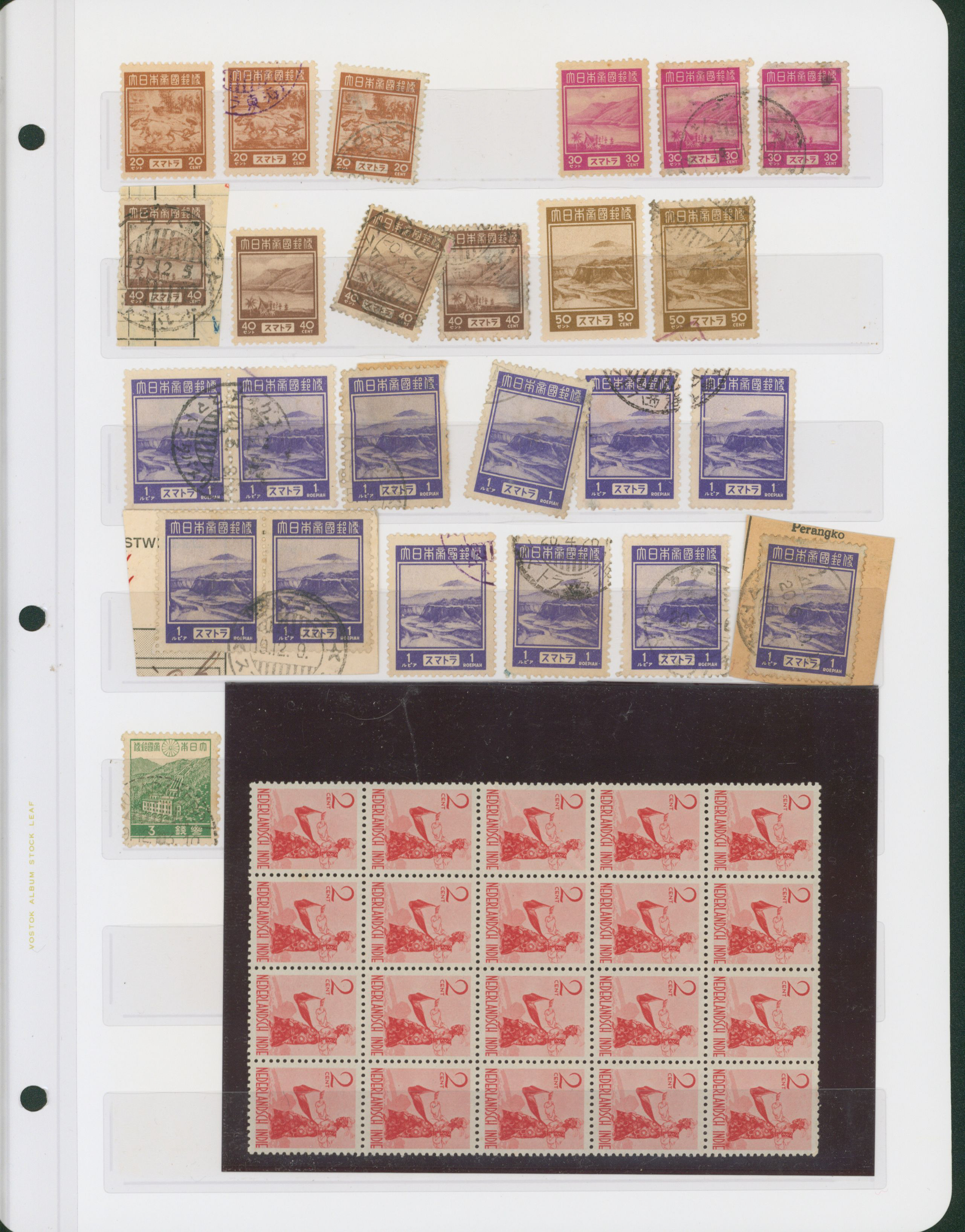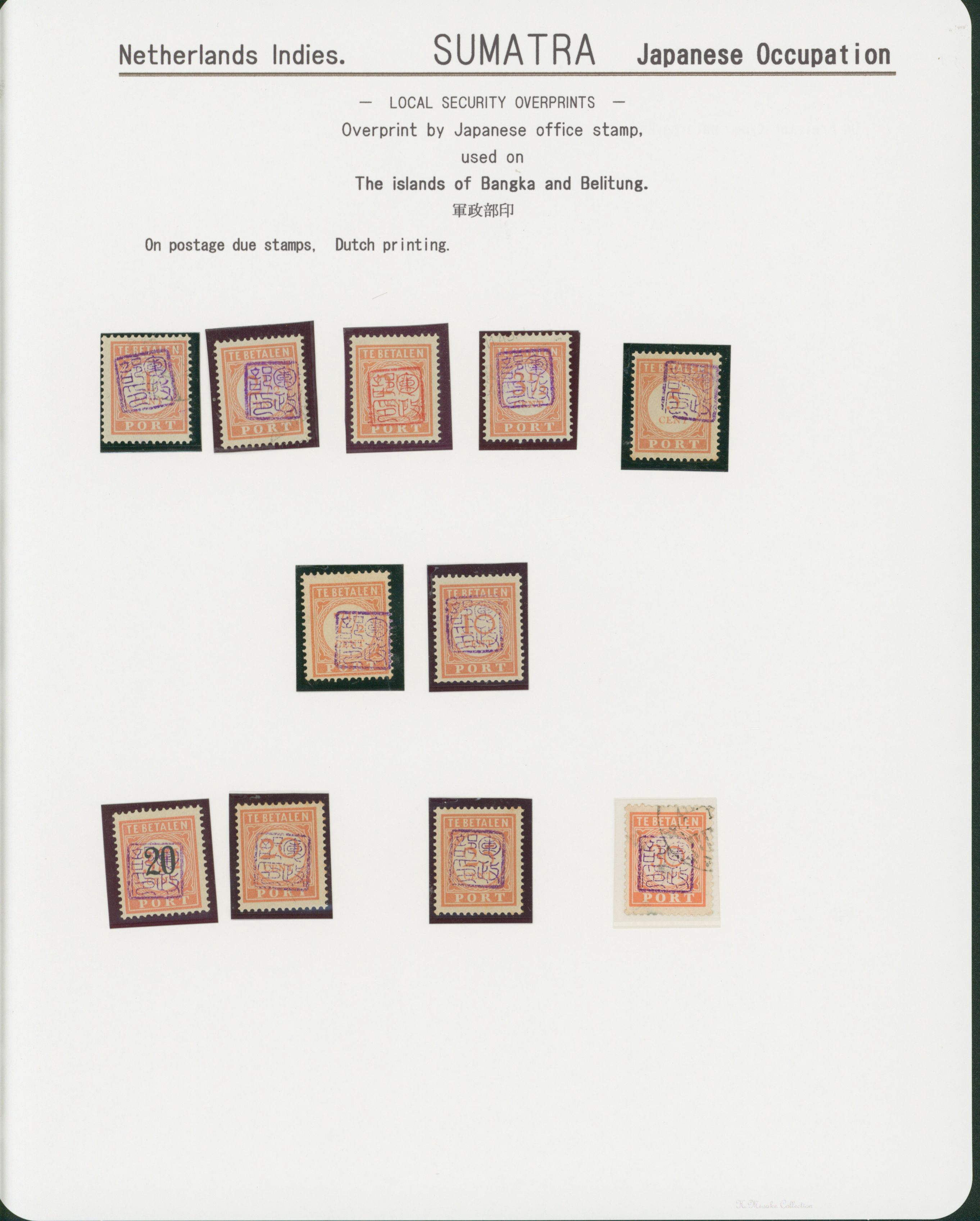 652   imageNed. Indies Sumatra Unification Overprint 6 leaves, 70 stamps unused used including shifted overprint, offset, and inverted ovpt. varieties (Image1) (Image2) (Image3) (Image4) (Image5) (Image6) (Image7) (All Images)