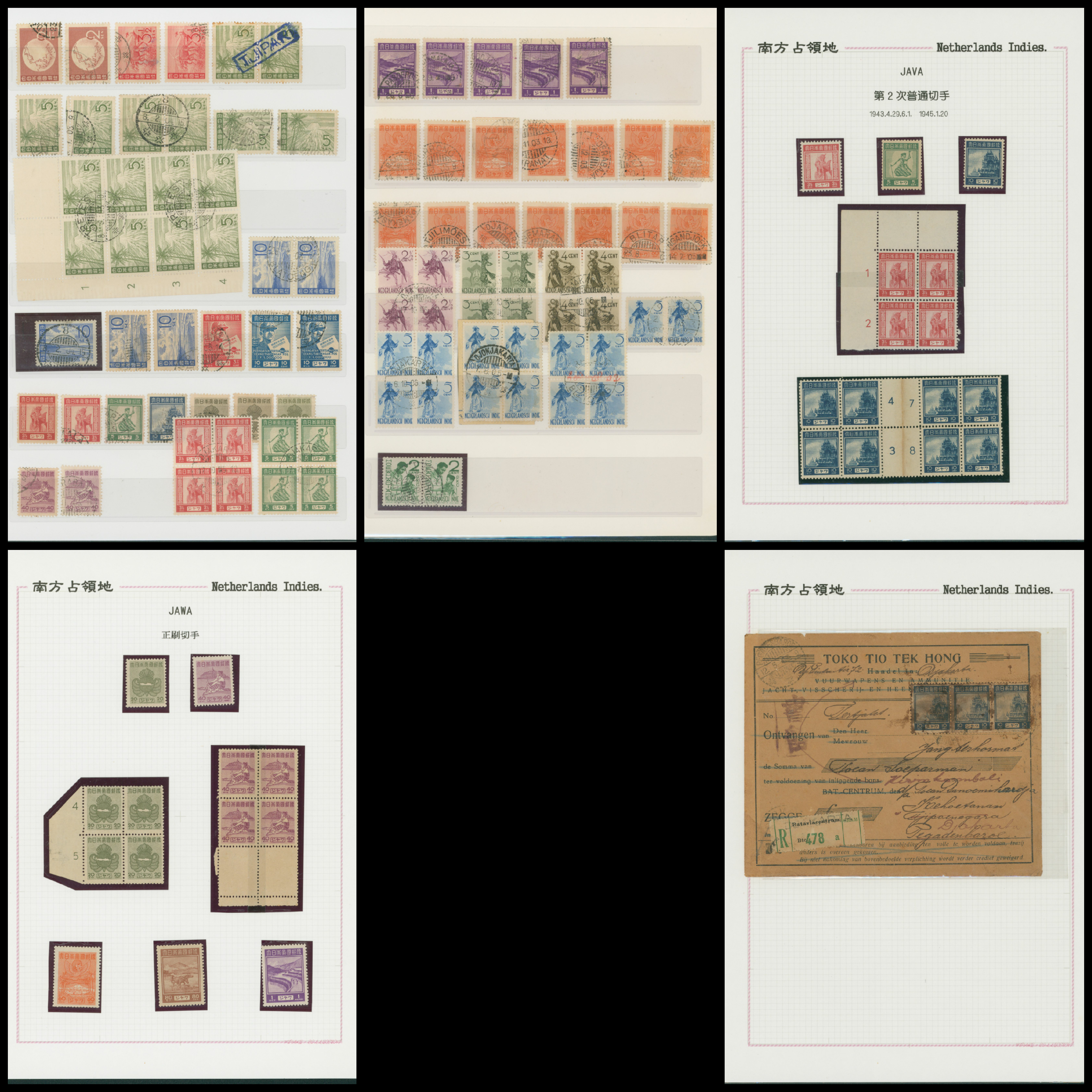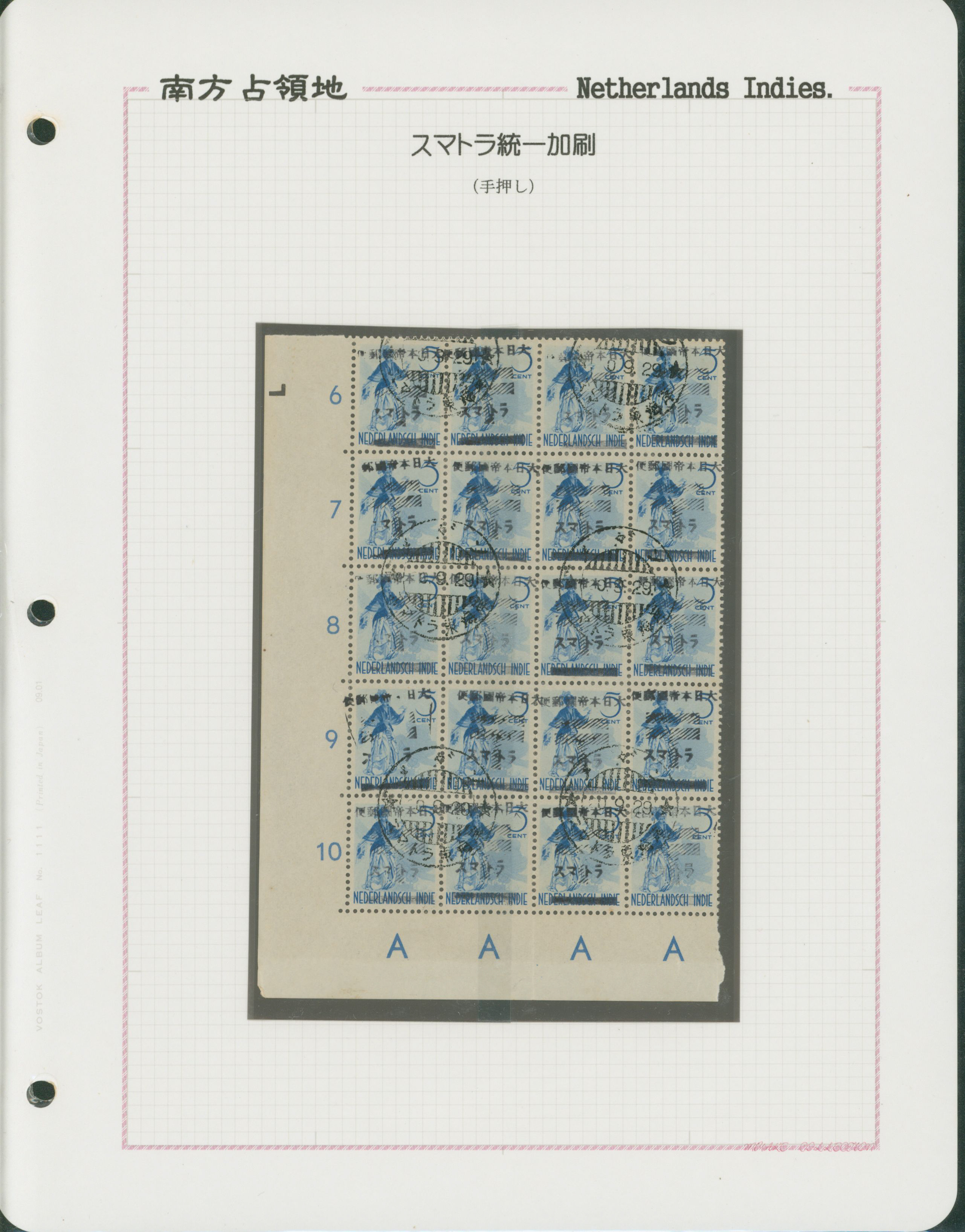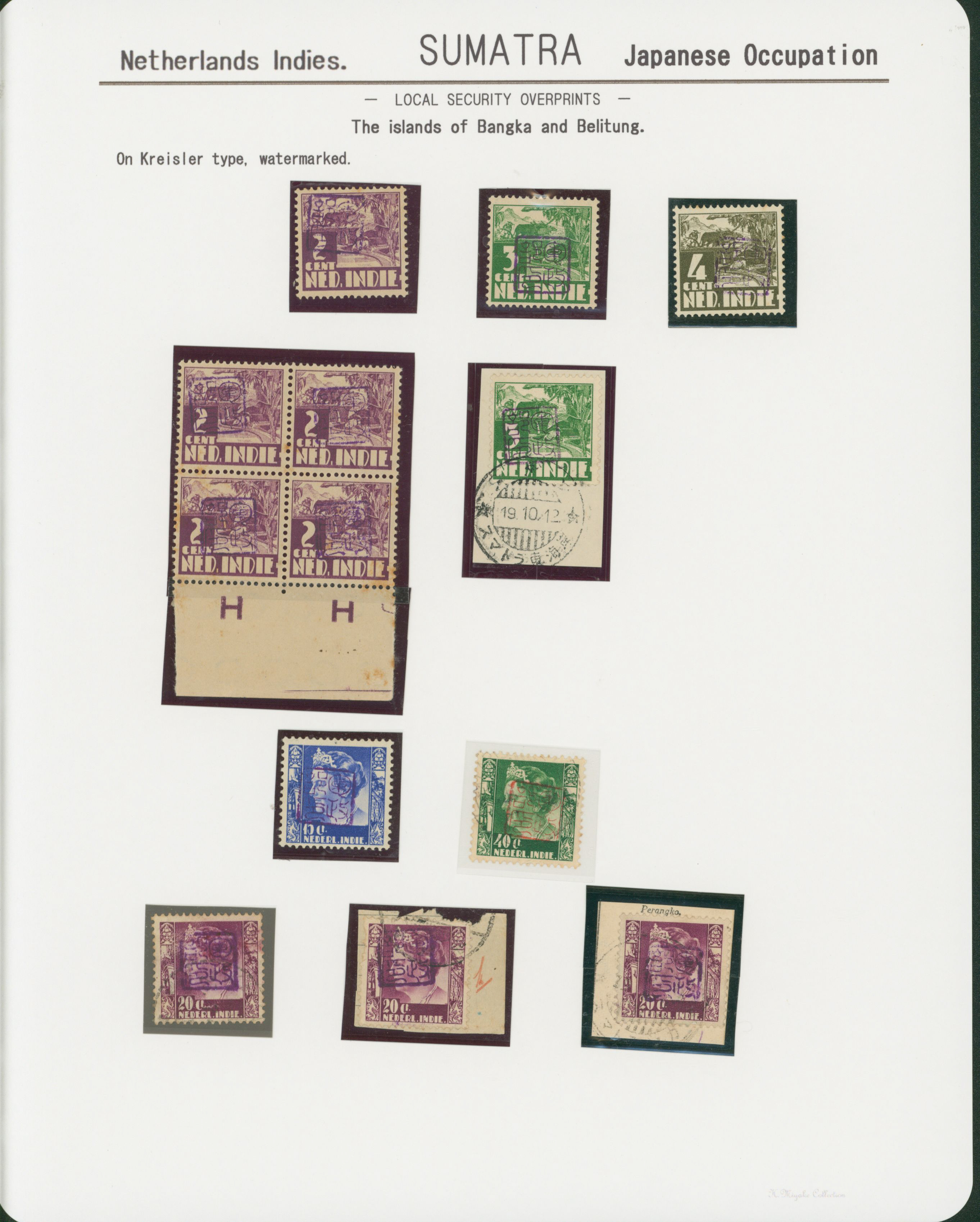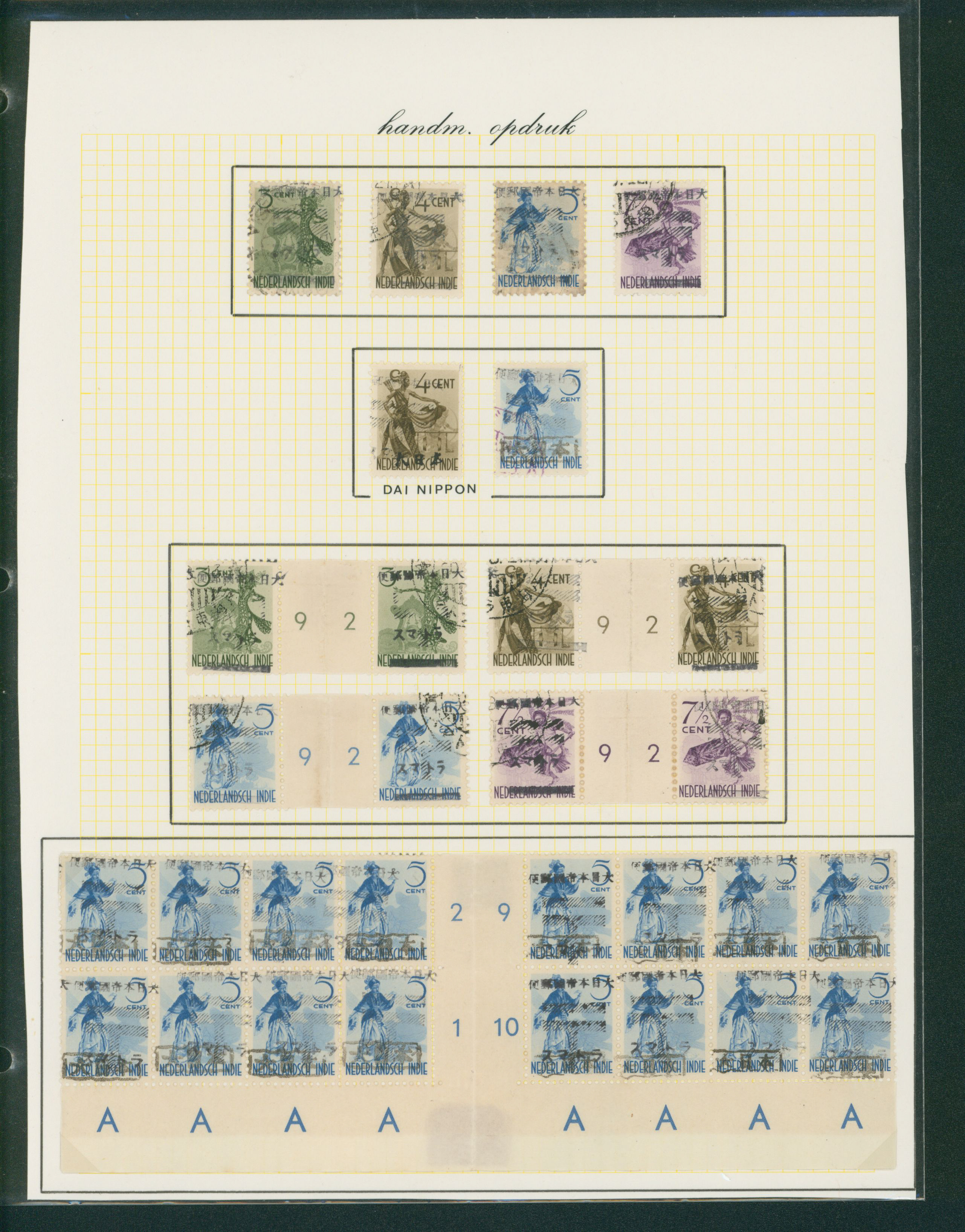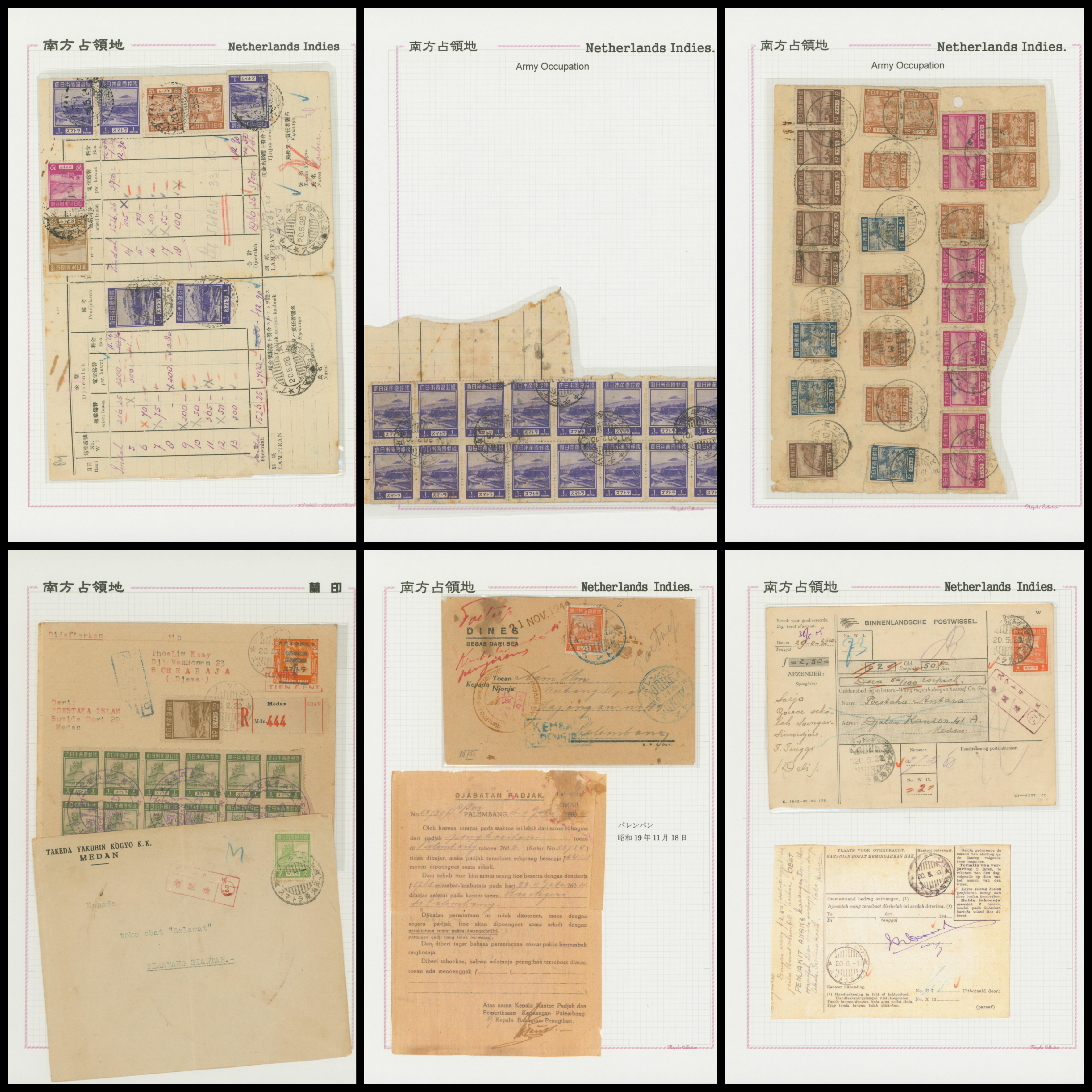 652   imageNed. Indies Sumatra Unification Overprint 6 leaves, 70 stamps unused used including shifted overprint, offset, and inverted ovpt. varieties (Image1) (Image2) (Image3) (Image4) (Image5) (Image6) (Image7) (All Images)
