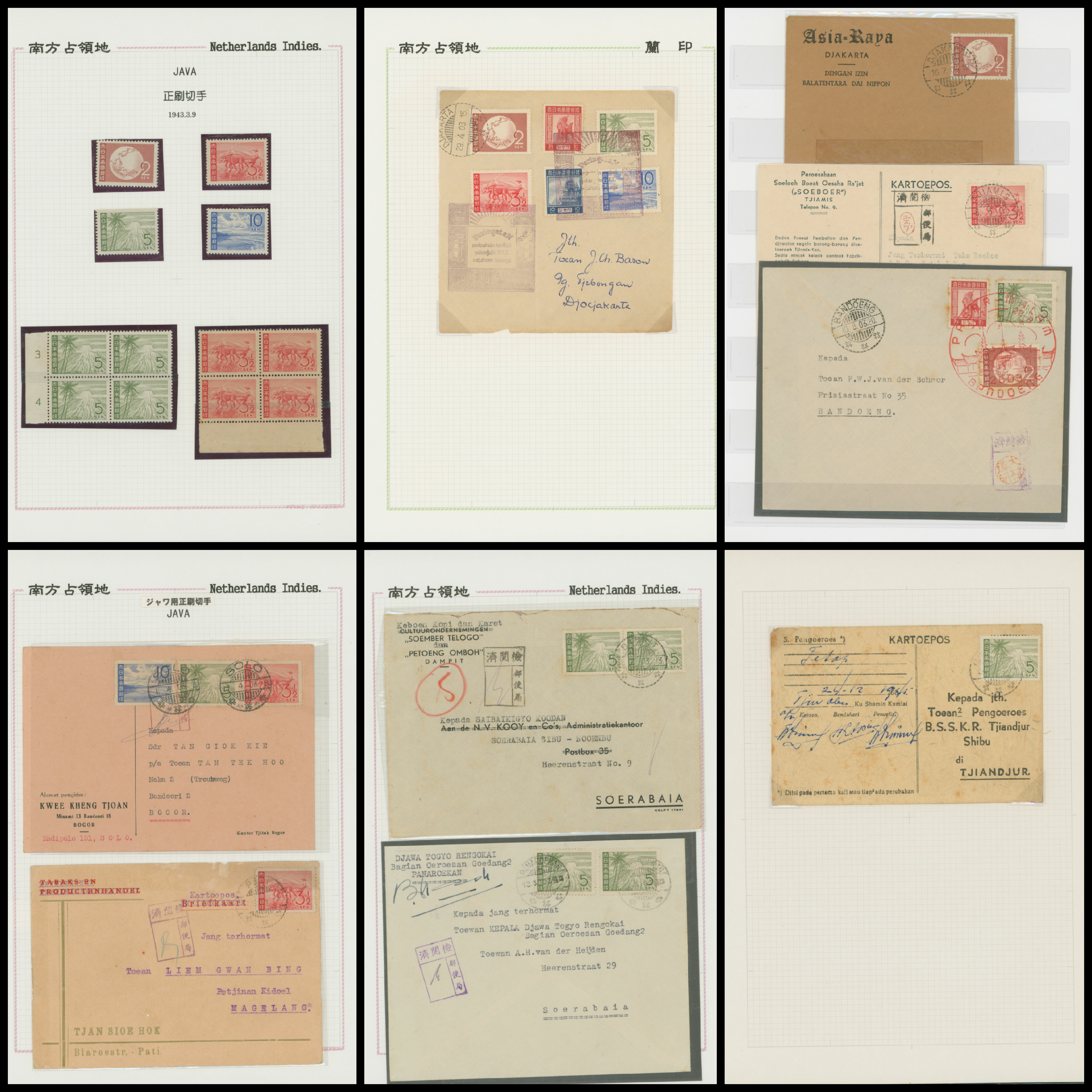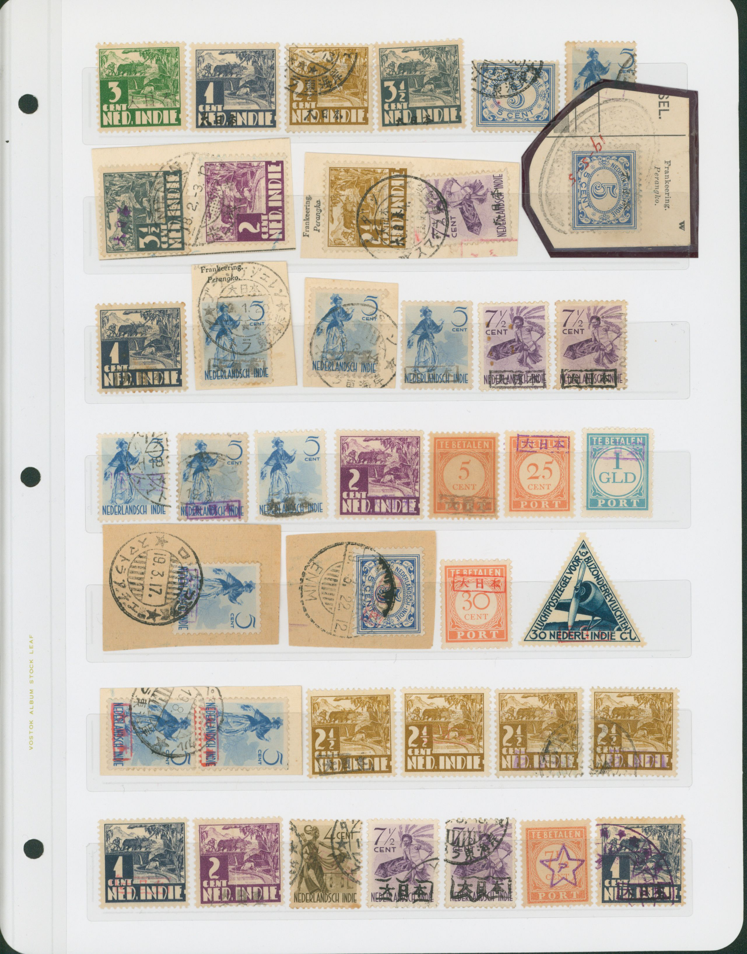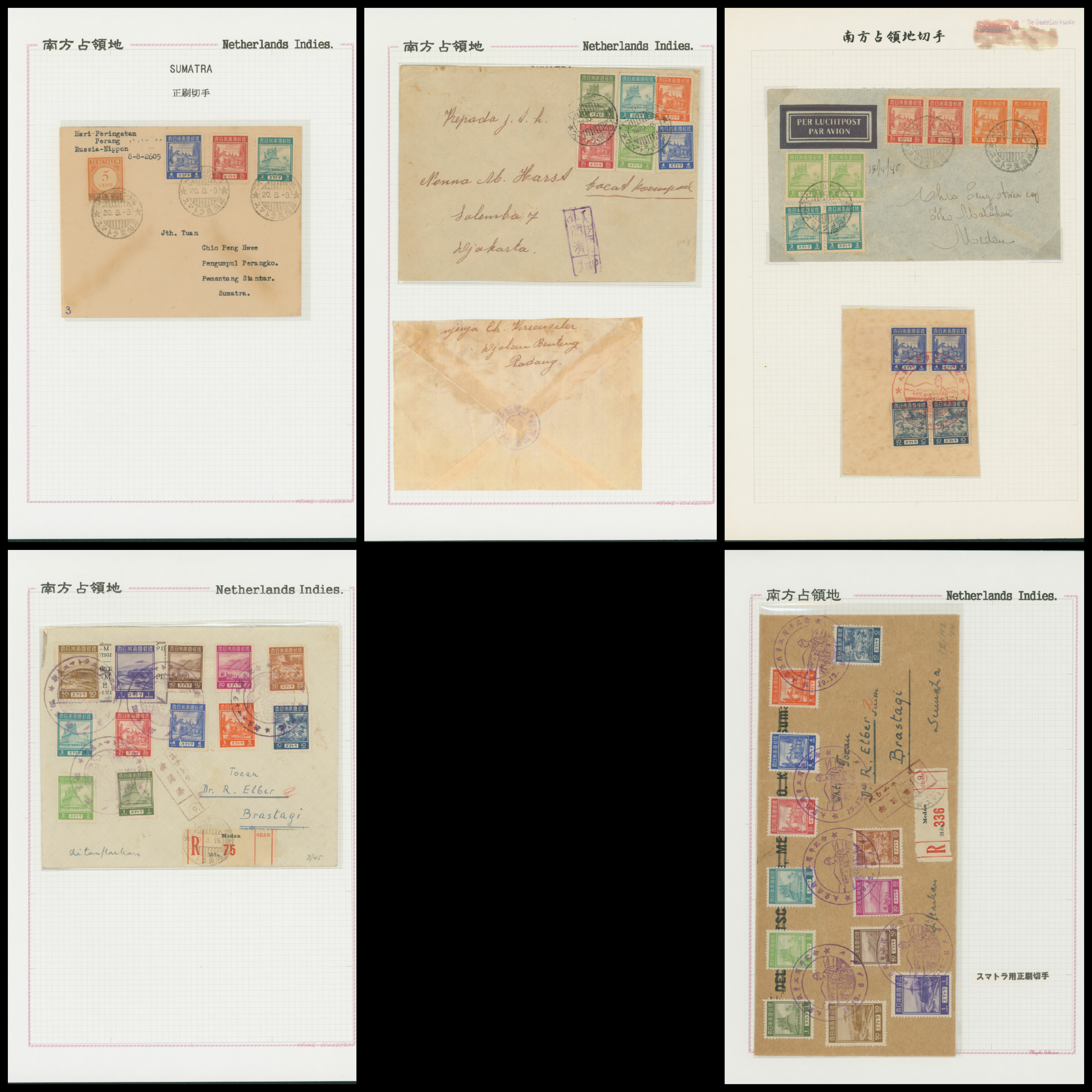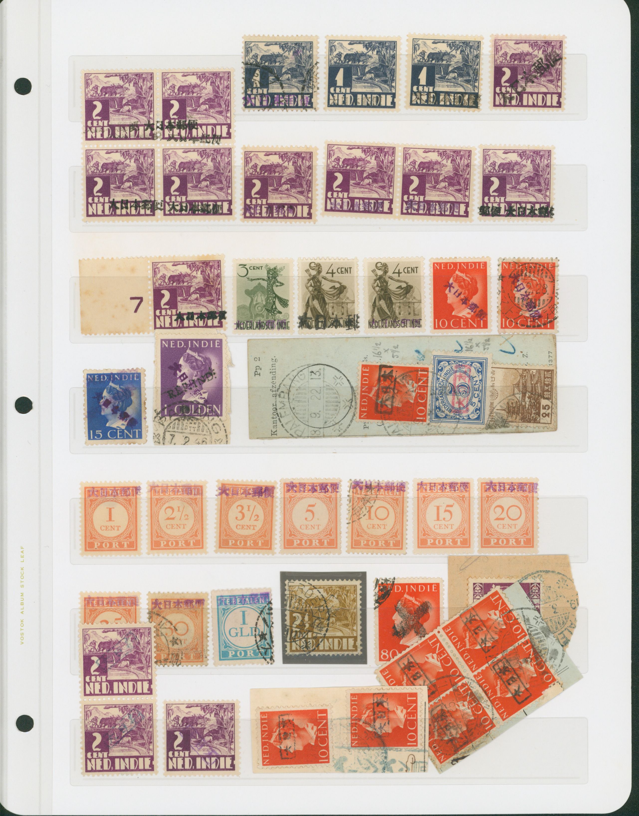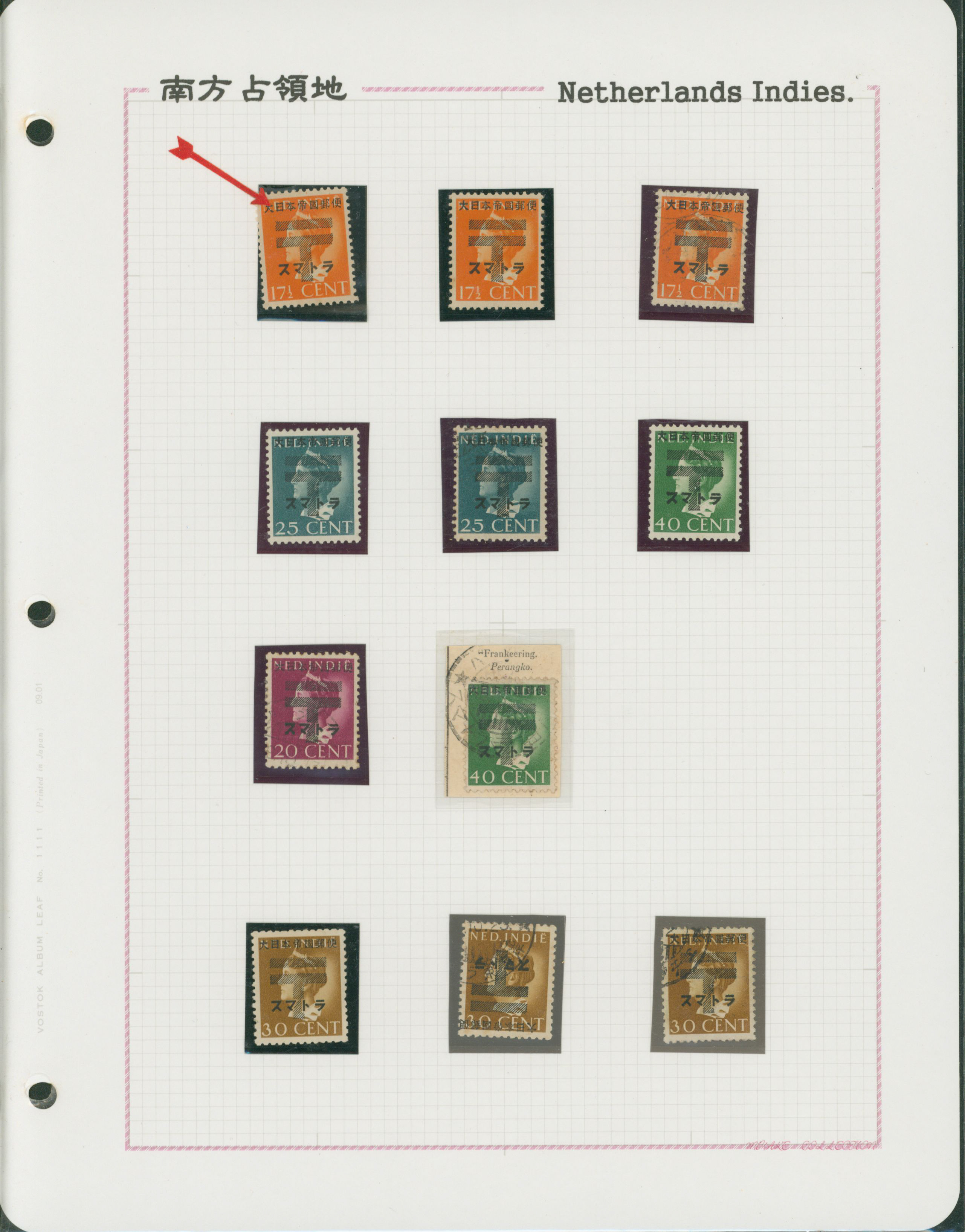 652   imageNed. Indies Sumatra Unification Overprint 6 leaves, 70 stamps unused used including shifted overprint, offset, and inverted ovpt. varieties (Image1) (Image2) (Image3) (Image4) (Image5) (Image6) (Image7) (All Images)