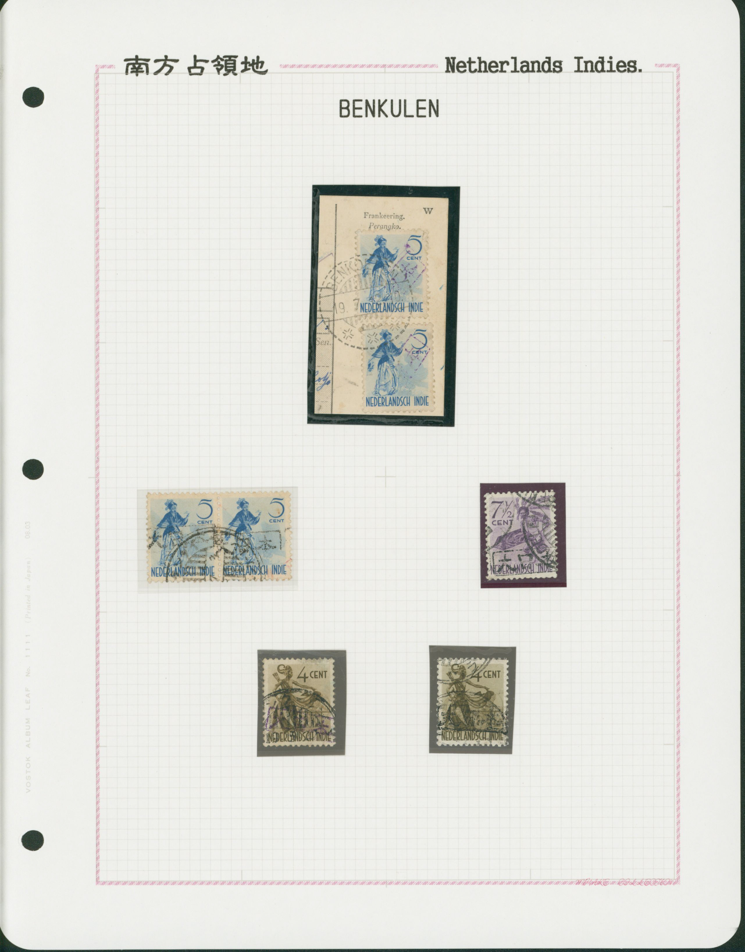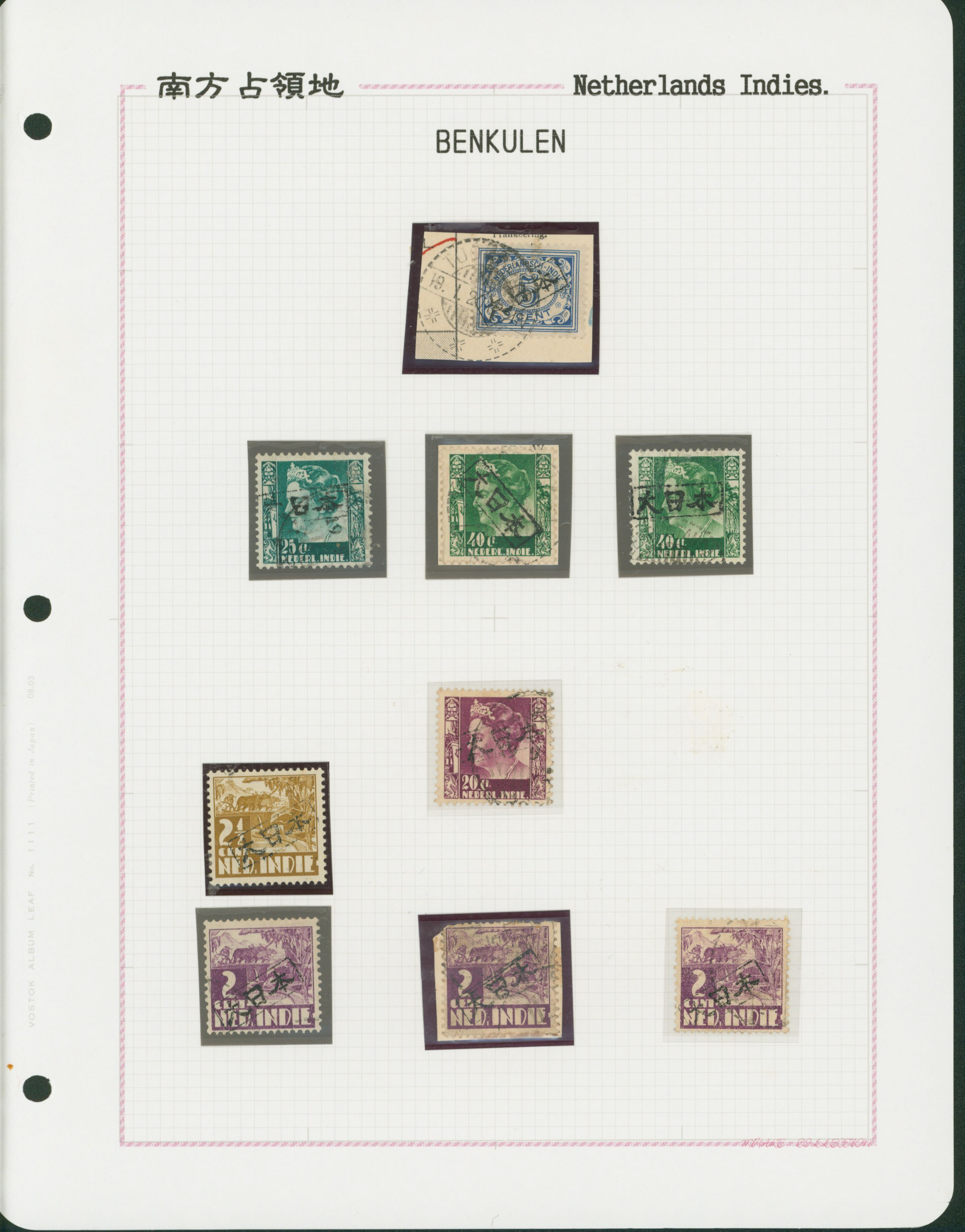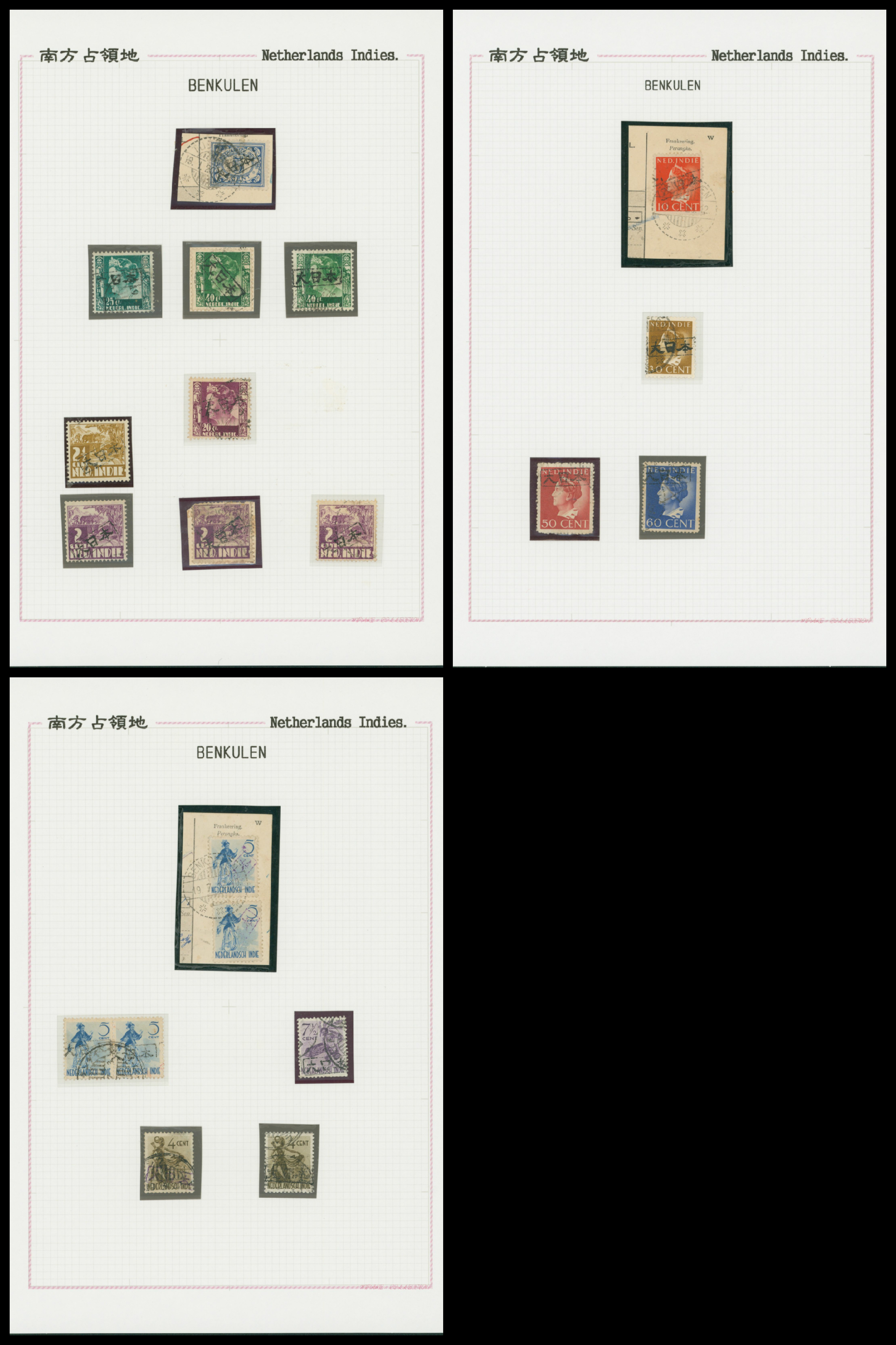 645   imageNed. Indies Sumatra Benkulen 3 leaves, 20 stamps used (Image1) (Image2) (Image3) (Image4) (All Images)