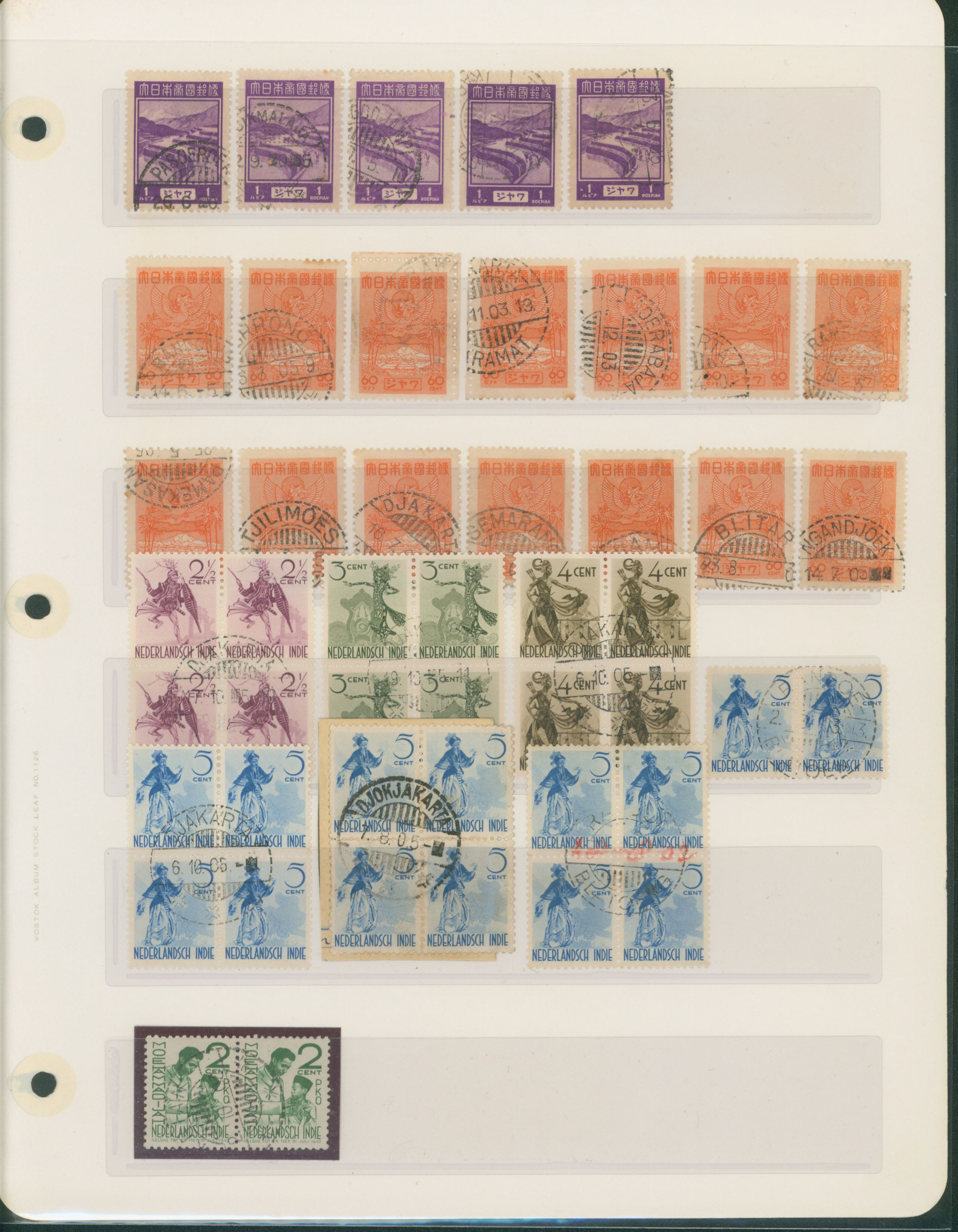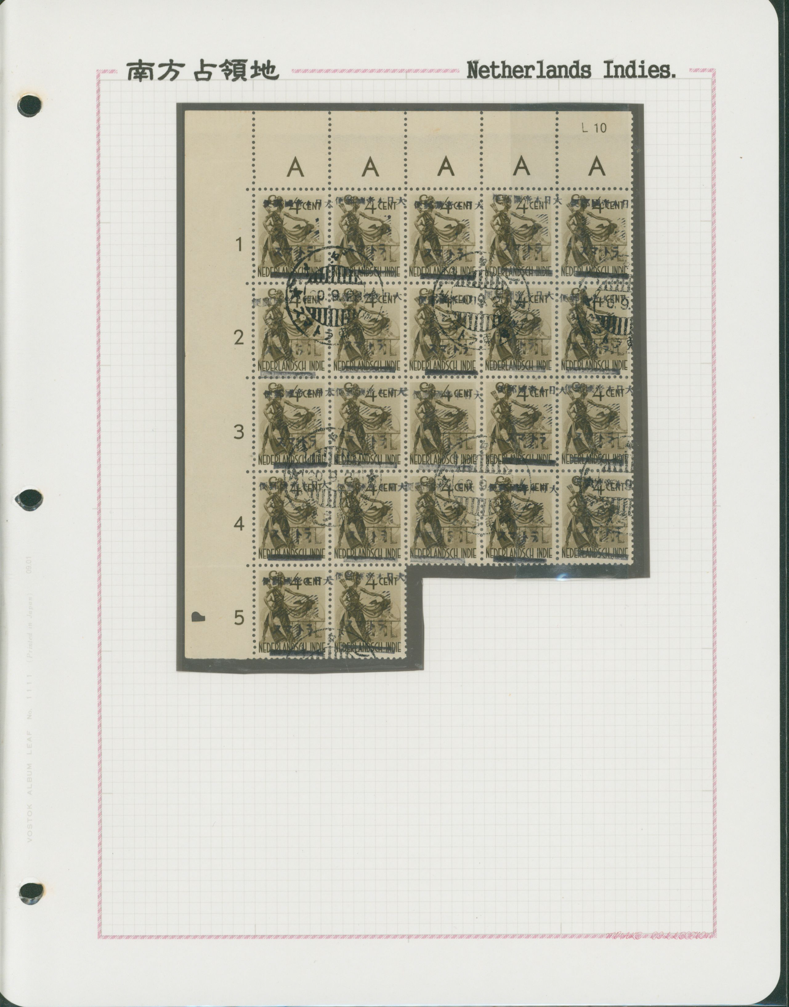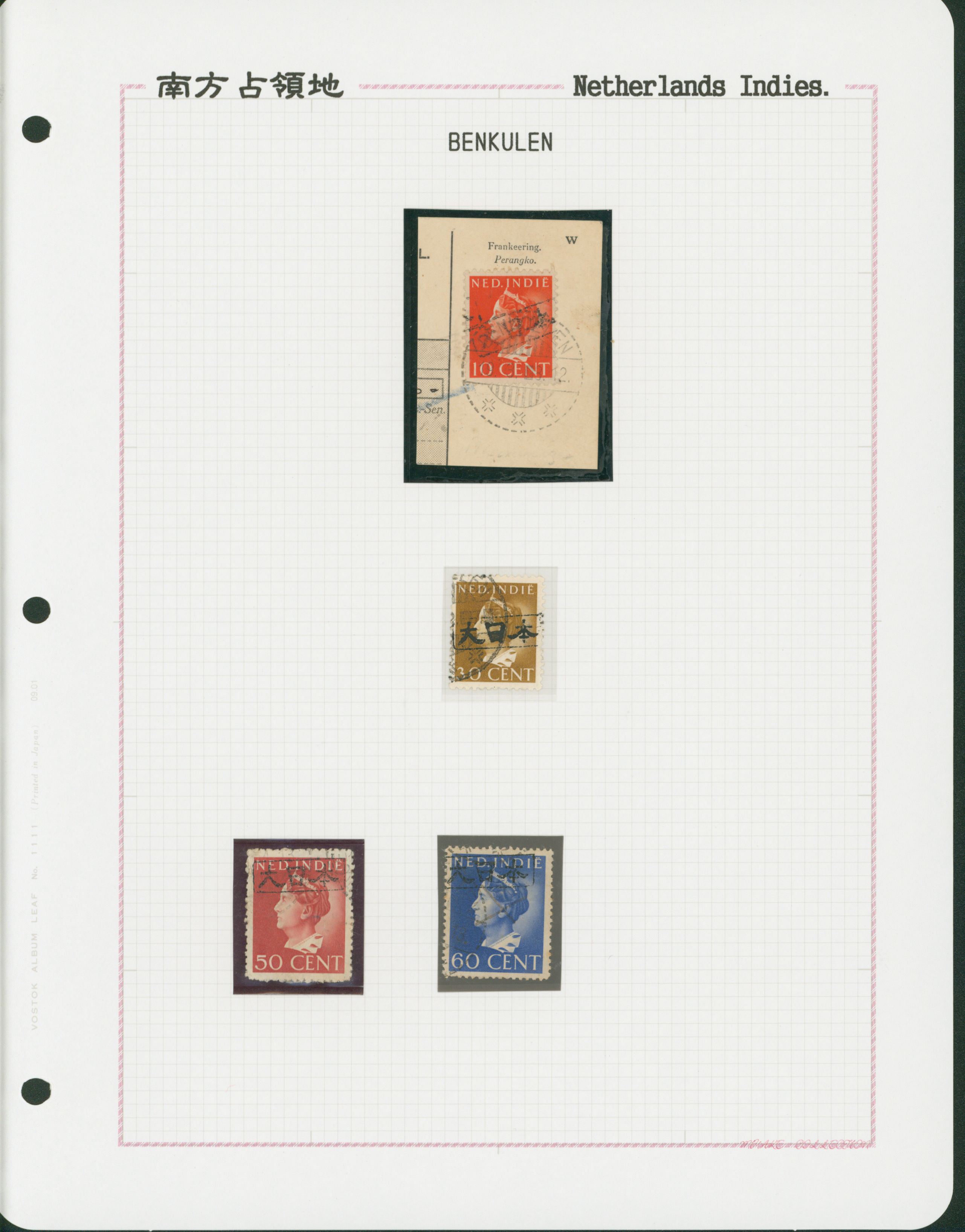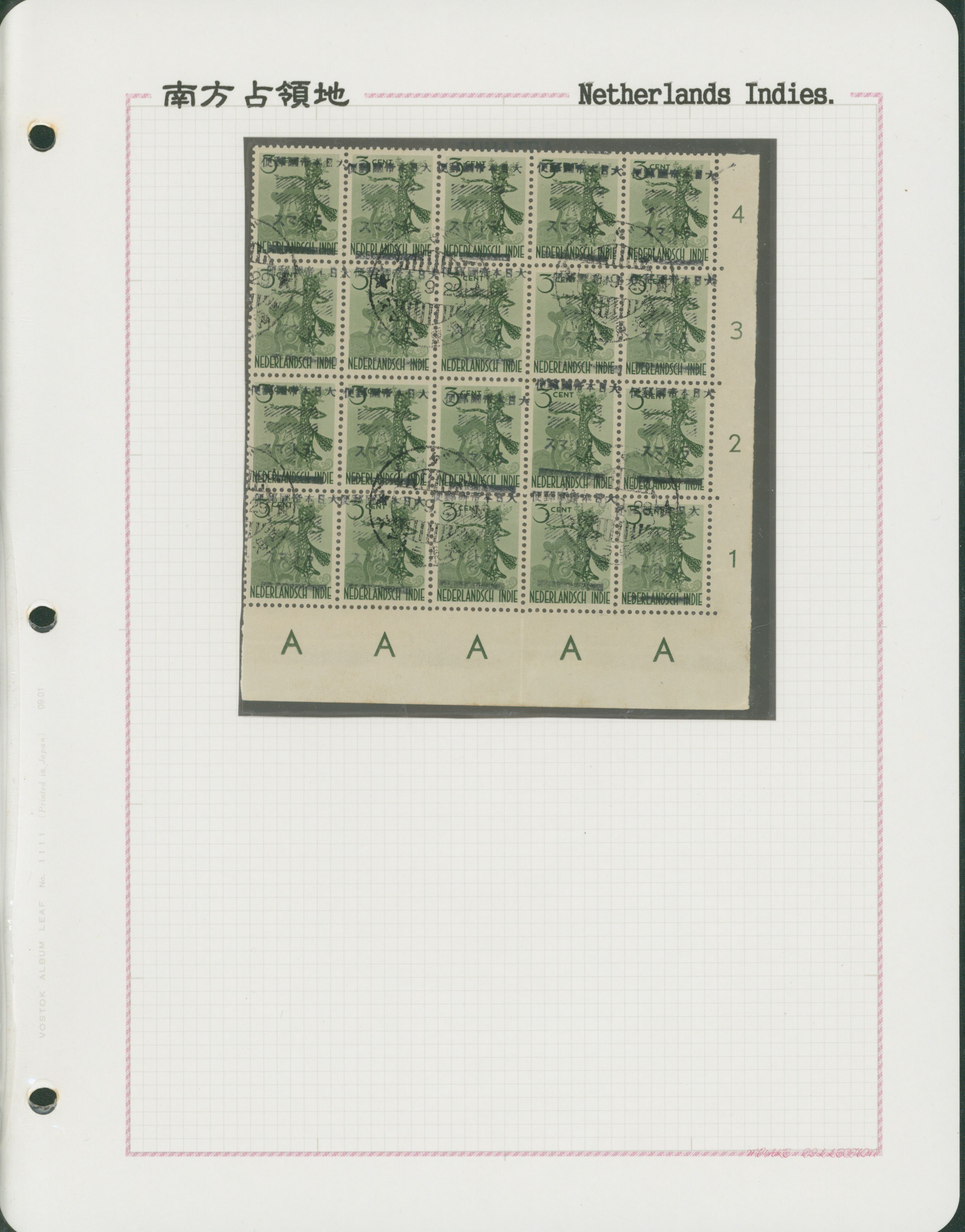 645   imageNed. Indies Sumatra Benkulen 3 leaves, 20 stamps used (Image1) (Image2) (Image3) (Image4) (All Images)