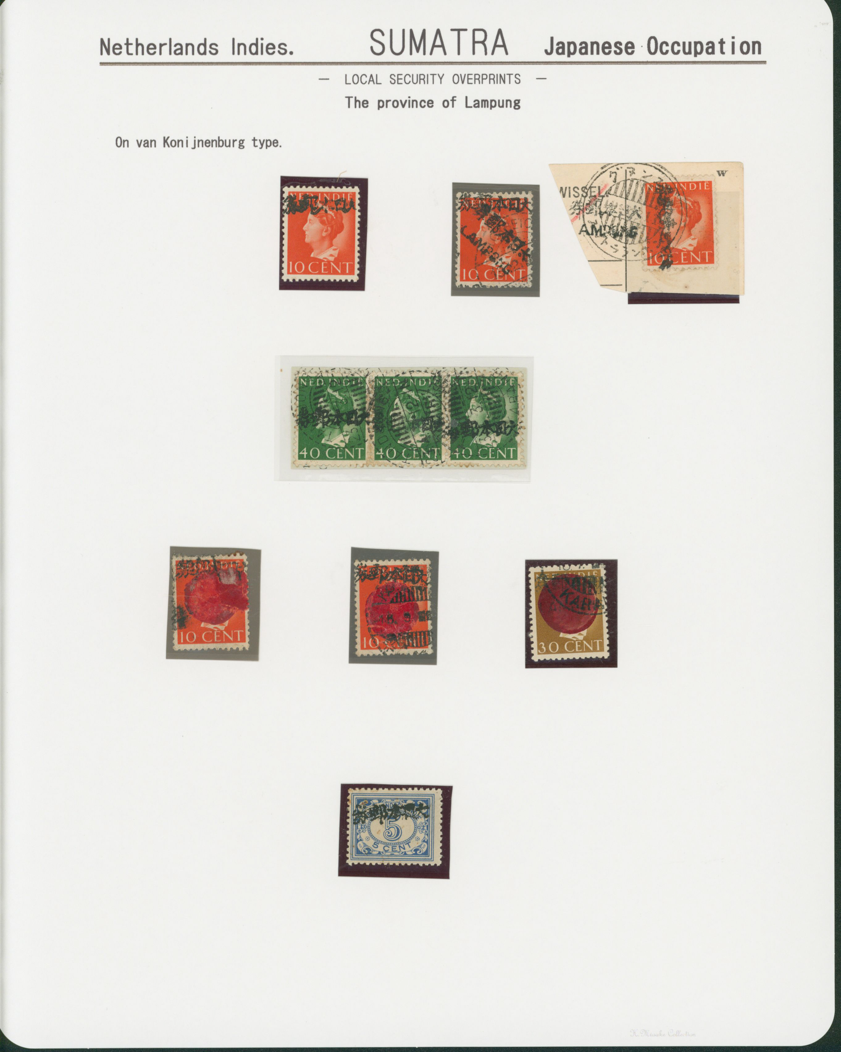 651   imageNed. Indies Sumatra Unification Overprint 10 pages mixed condition of unused and used, (Image1) (Image2) (Image3) (Image4) (Image5) (Image6) (Image7) (All Images)