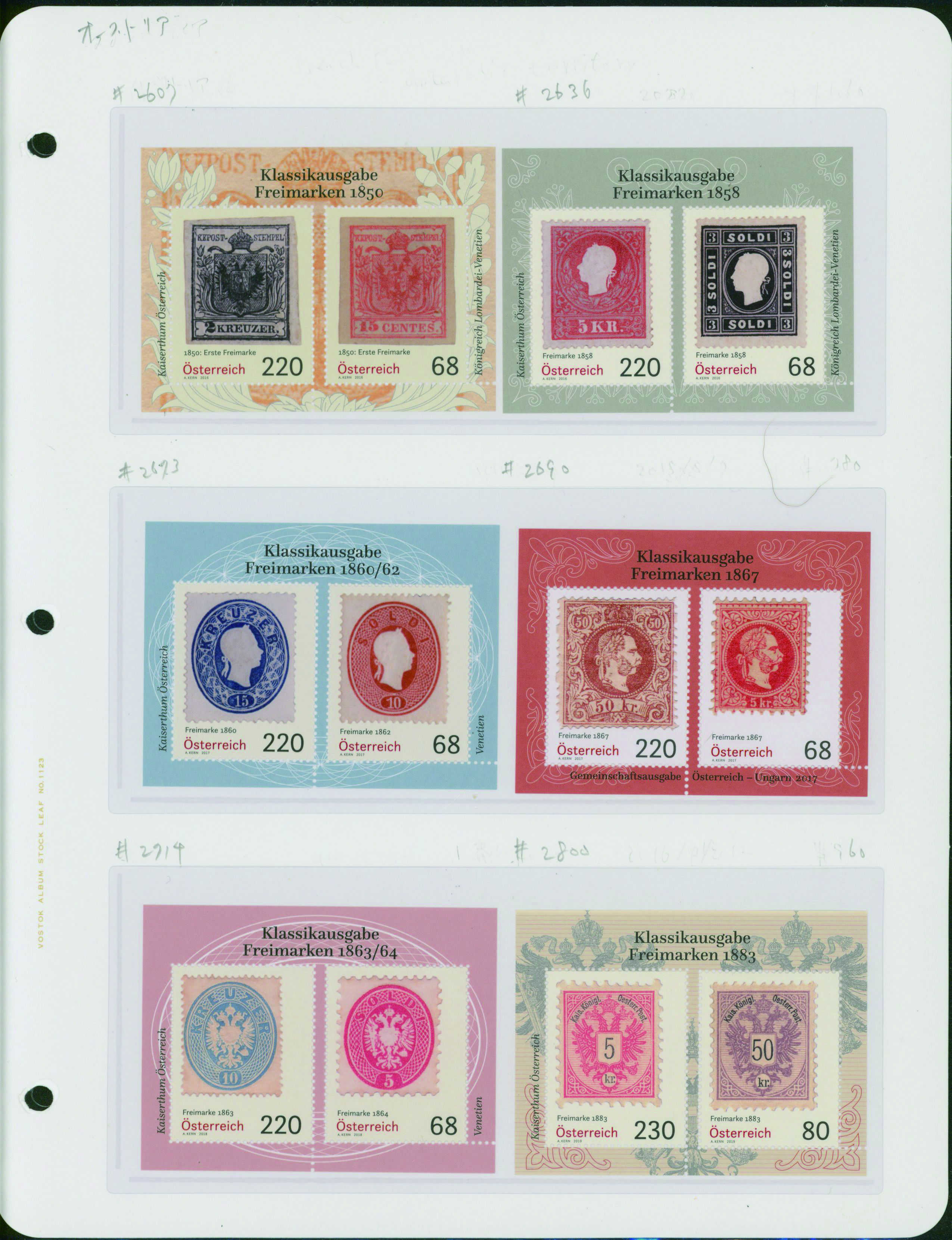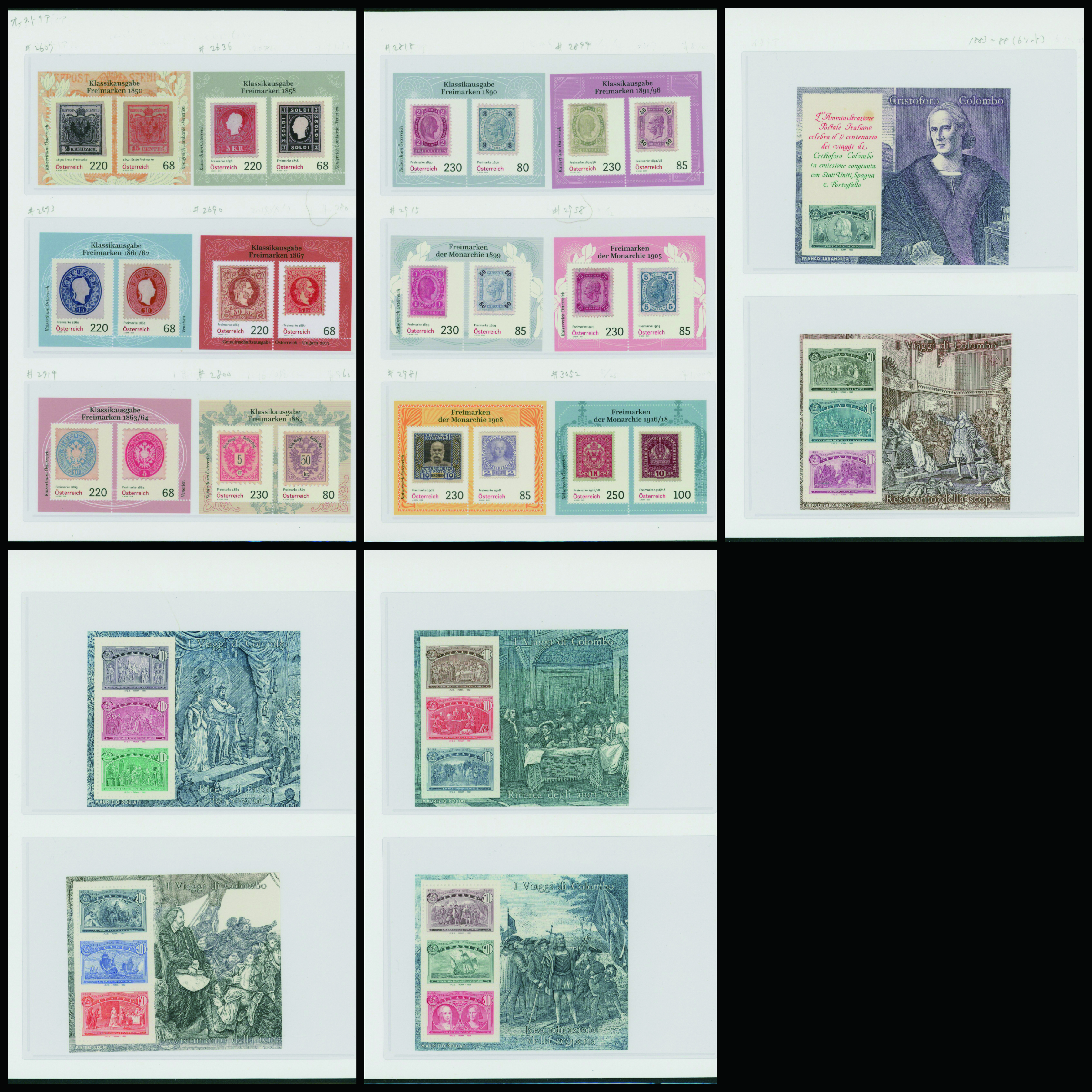 839   imagestamp of issued stamps Austria, Stamp days 12 S/S Italy Colombus exhibit. 6 S/S unused 5 pages (Image1) (Image2) (Image3) (Image4) (Image5) (Image6) (All Images)