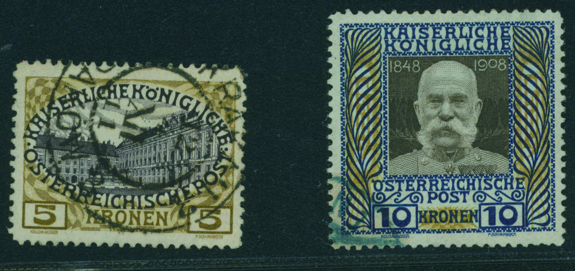 838 126,127 imageAustria 1908 5Kr. 10Kr. used (Image1) (Image2) (All Images)