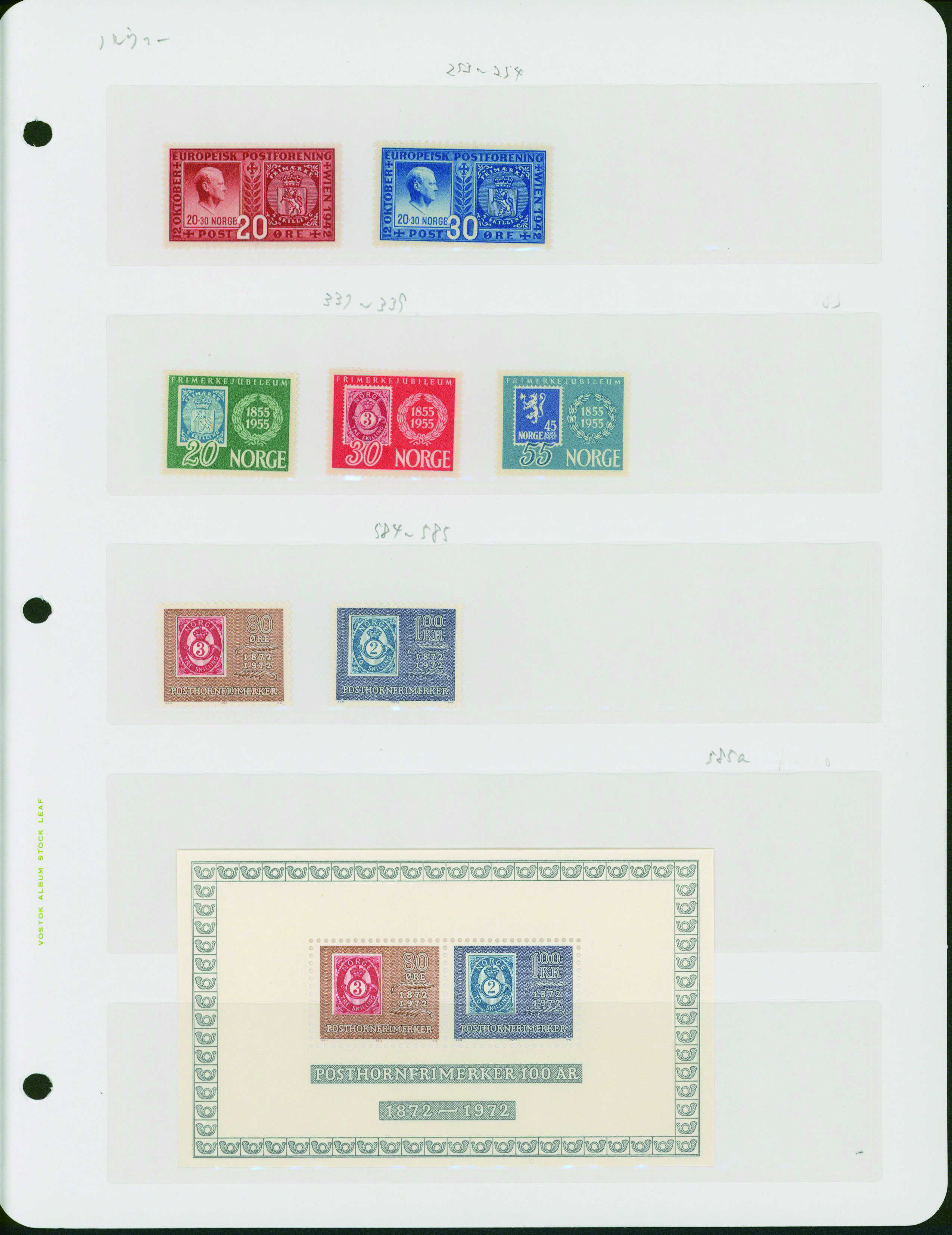 877   imageNorway stamp of issued stamps 3 leaves mainly unused with some used, (Image1) (Image2) (Image3) (Image4) (All Images)