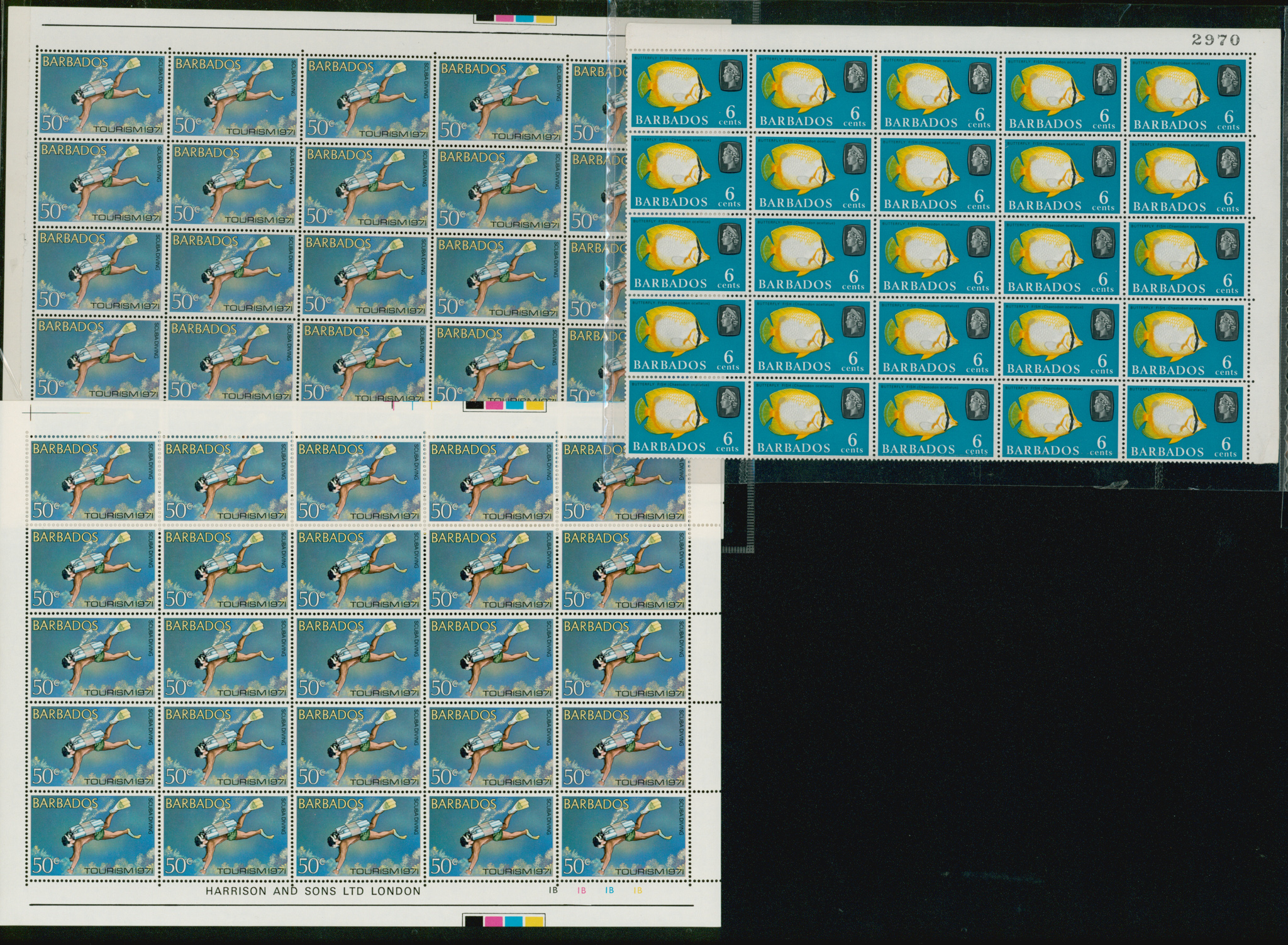 930 272,433, imageBarbados 1965 6c Inverted Wmk. variety Block of 25, 1971 50c Wmk. variety 2 Sheet of 25, , 75 stamps unused (Image1) (Image2) (All Images)