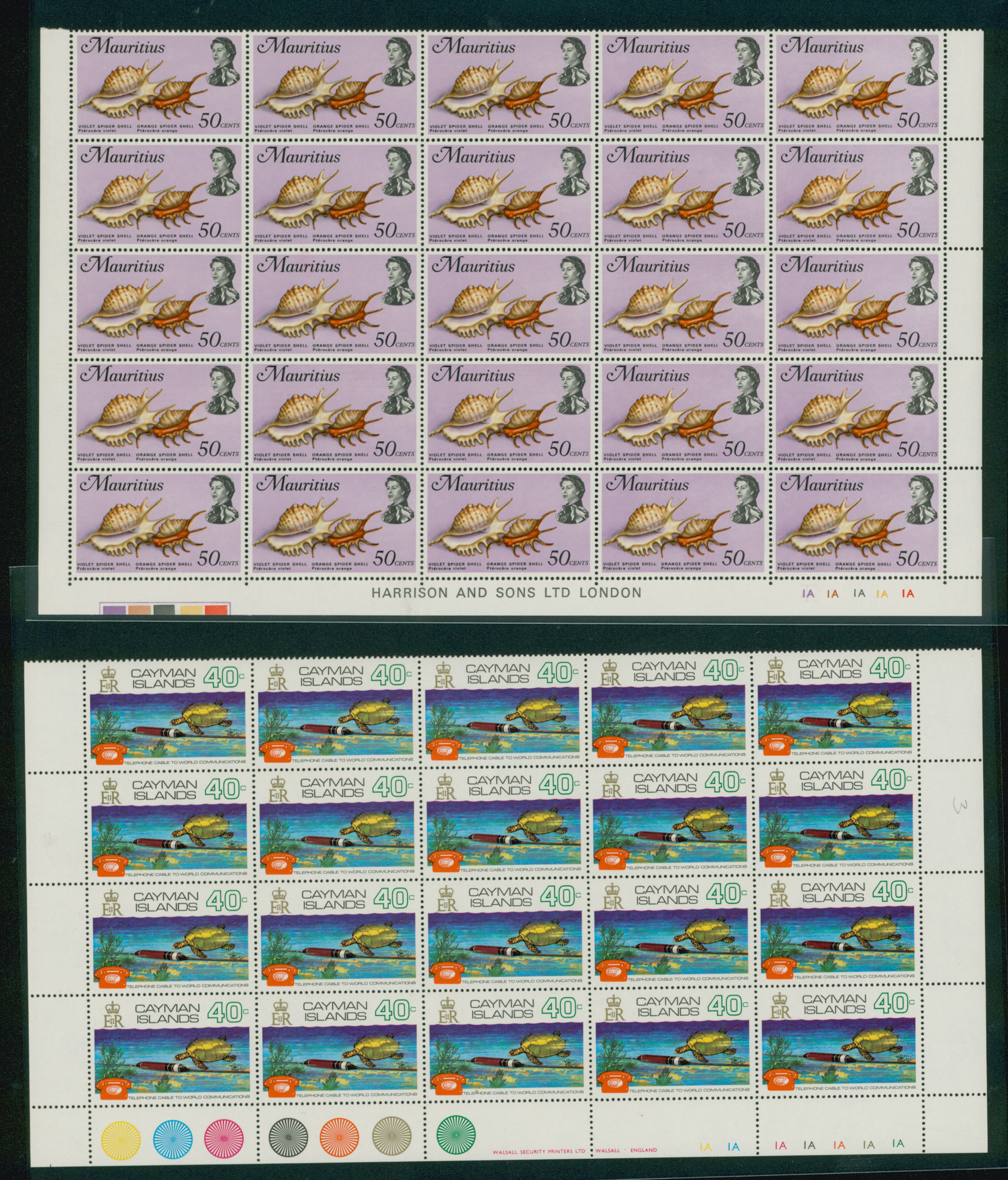 935 350,Cayman Is.-299, imageMauritius 1969 50c Wmk. variety Block of 25, Cayman Islands 1972 40c Wmk. variety Block of 20, , 45 stamps unused (Image1) (Image2) (All Images)