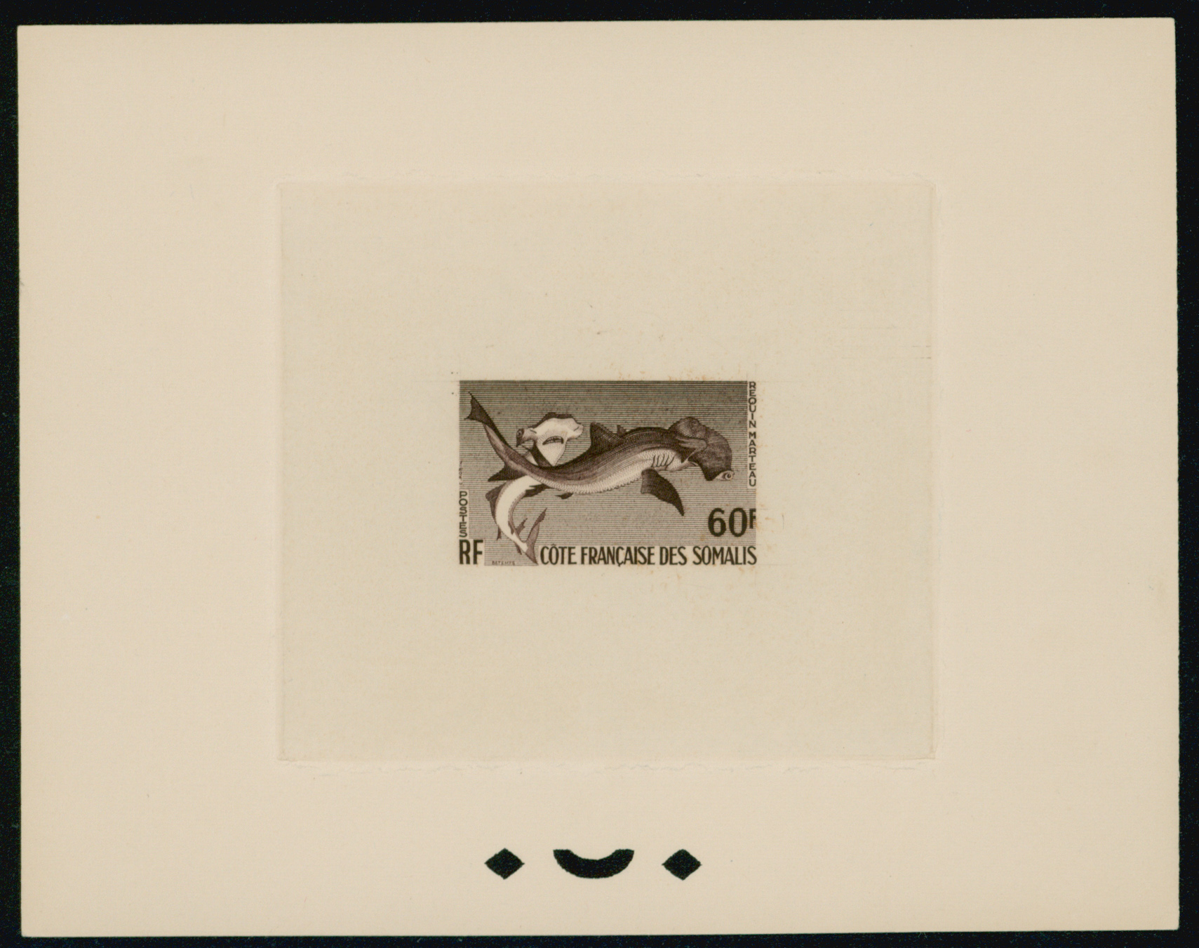 941 282 imageSomali Coast 1959 60fr De Luxe Black-brown Proof Sheet unused stained, (Image1) (Image2) (All Images)