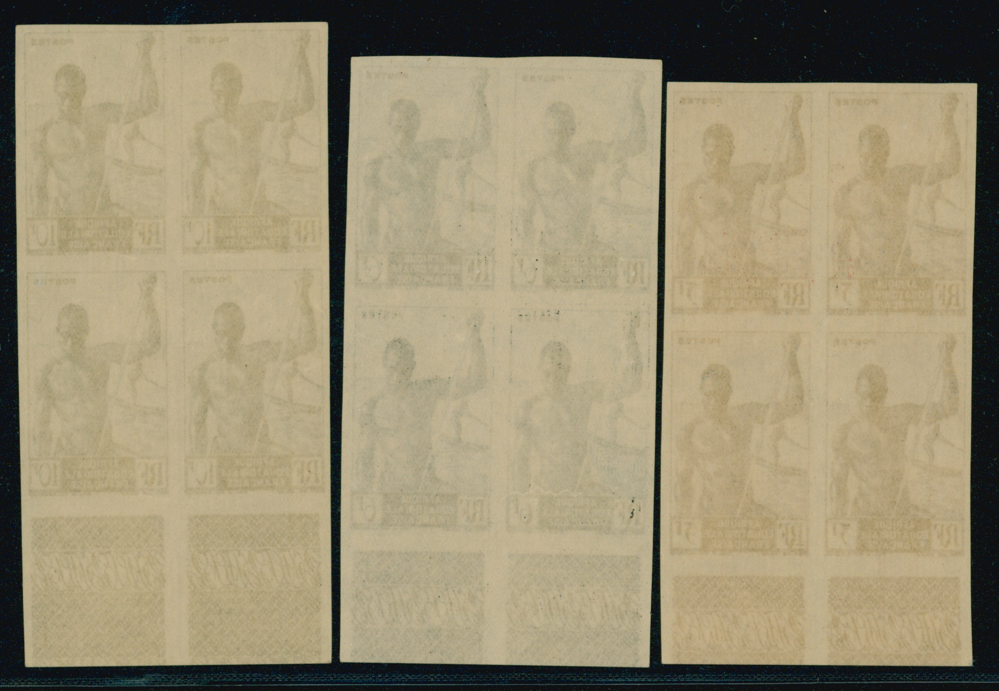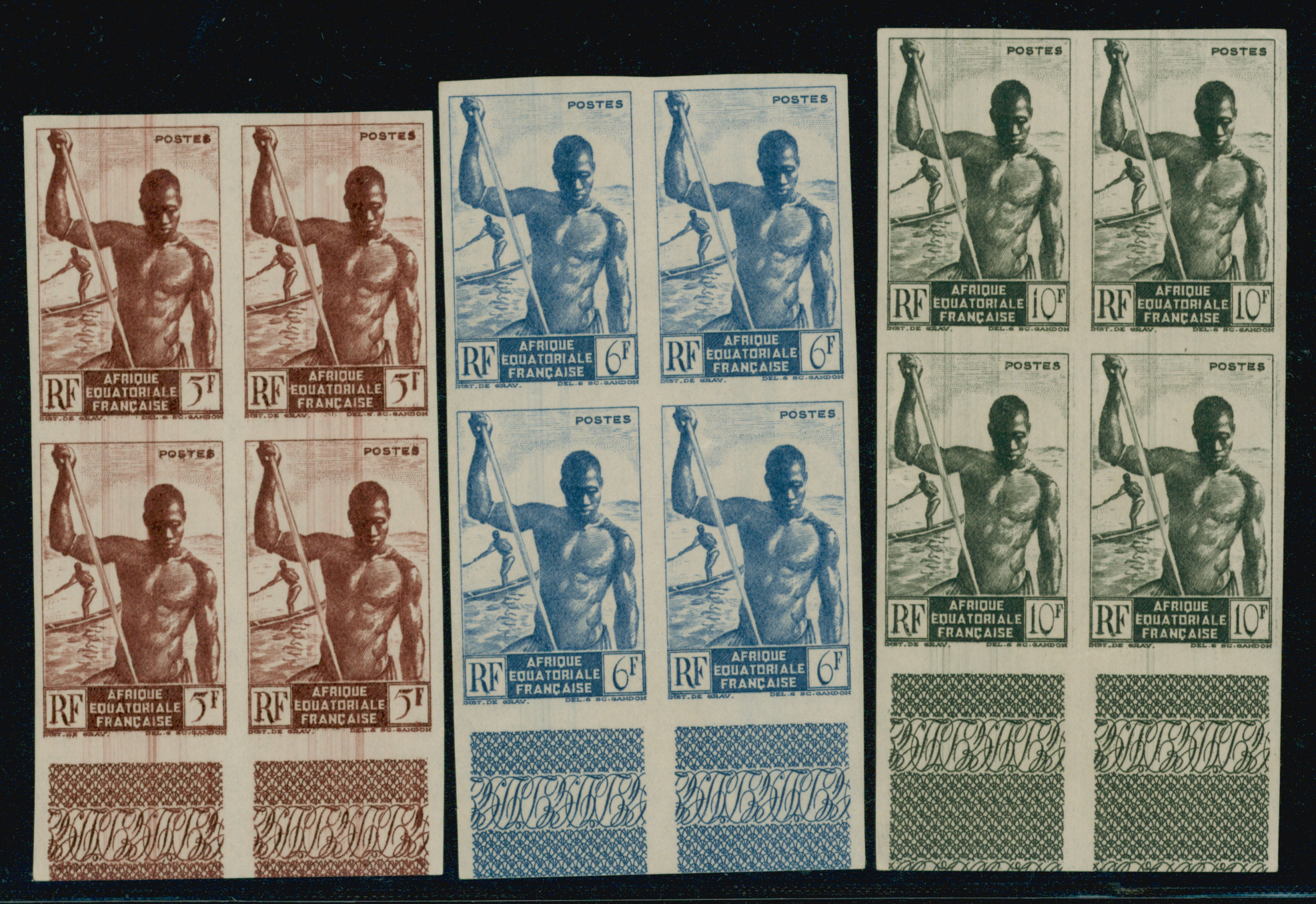 940 179,180.181, imageFrench Equatorial Africa 1946 5fr 6fr 10fr, Imperf block of 4, unused full original gum, , 12 examples (Image1) (Image2) (All Images)