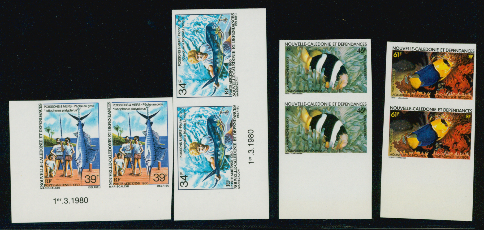 962 C182,C183,C193,C194, imageNew Caledonia 1980 34fr 39fr, 1984 46fr 61fr, 4 imperf. pairs unused full original gum, (Image1) (Image2) (All Images)