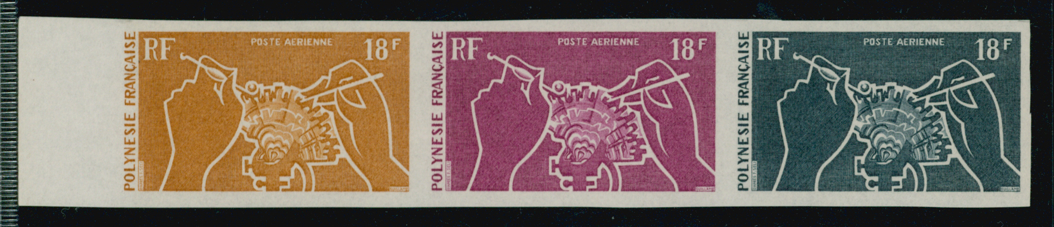 967 C59 imageFr. Polynesia 1970 Air Mail 18fr Colour Trails Strip of 3 (Image1) (Image2) (All Images)