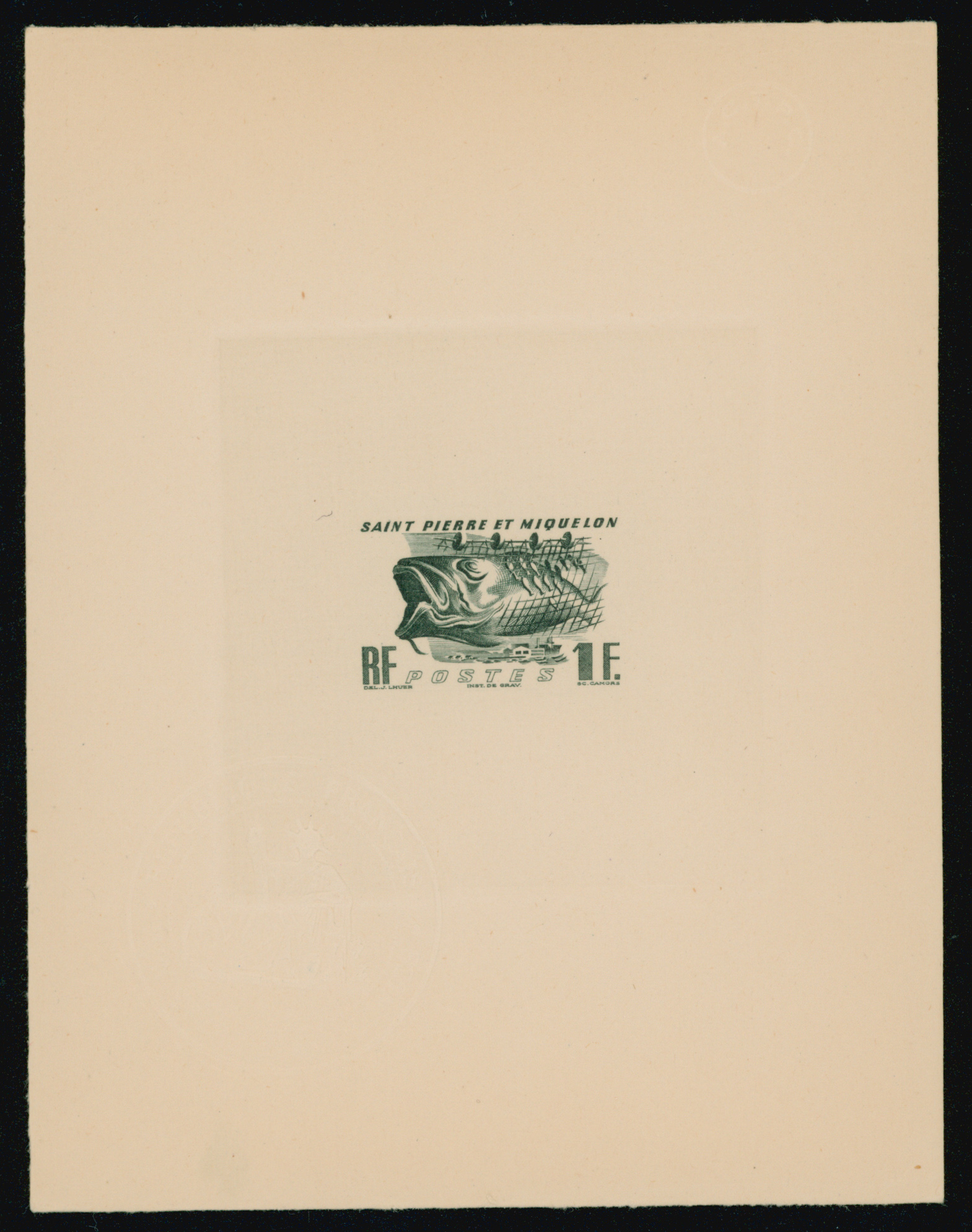 969 330 imageSaint Pierre and Miquelon 1947 1fr Die Proof (Image1) (Image2) (All Images)