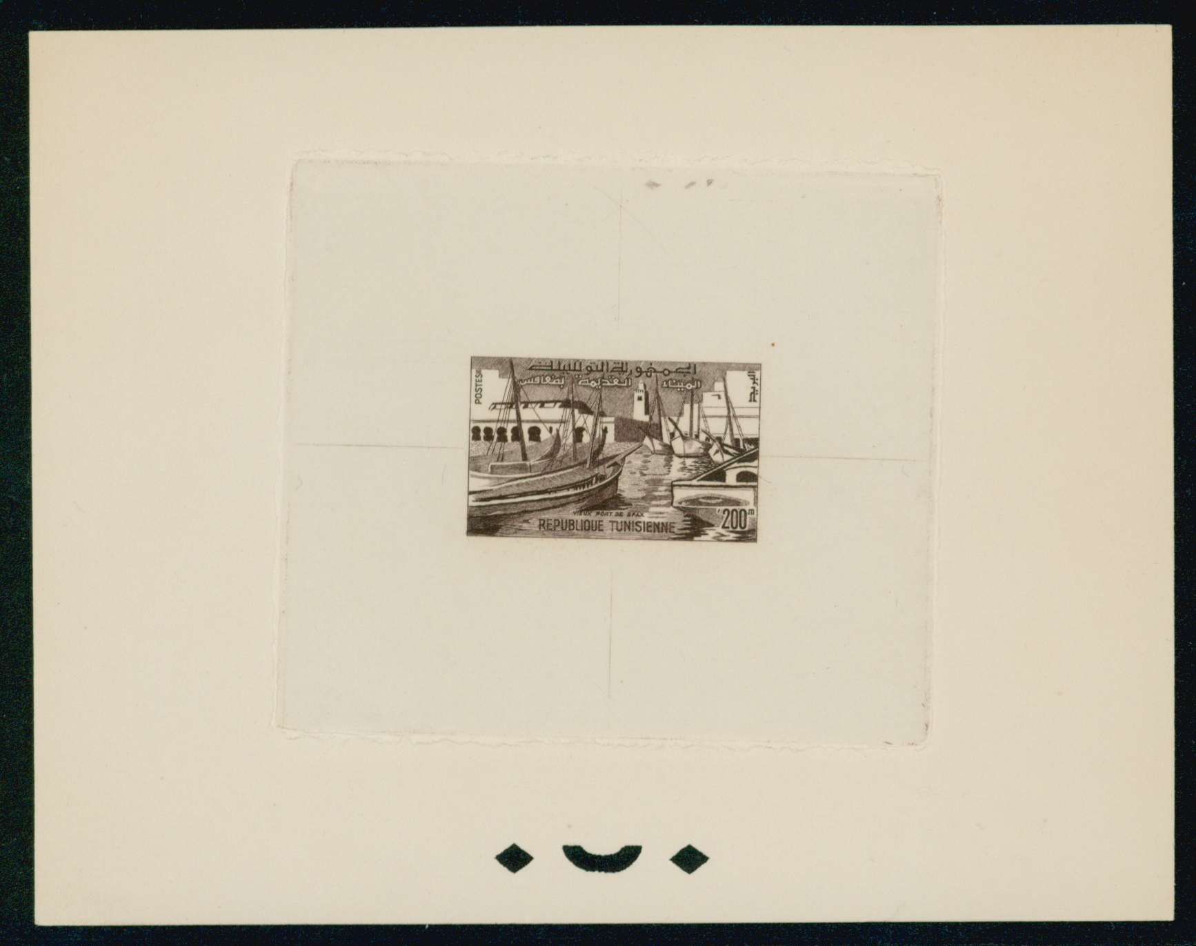 978 363 imageTunisia 1959 200m Sepia Inspection Die Proof unused stained, (Image1) (Image2) (All Images)