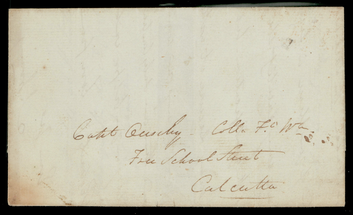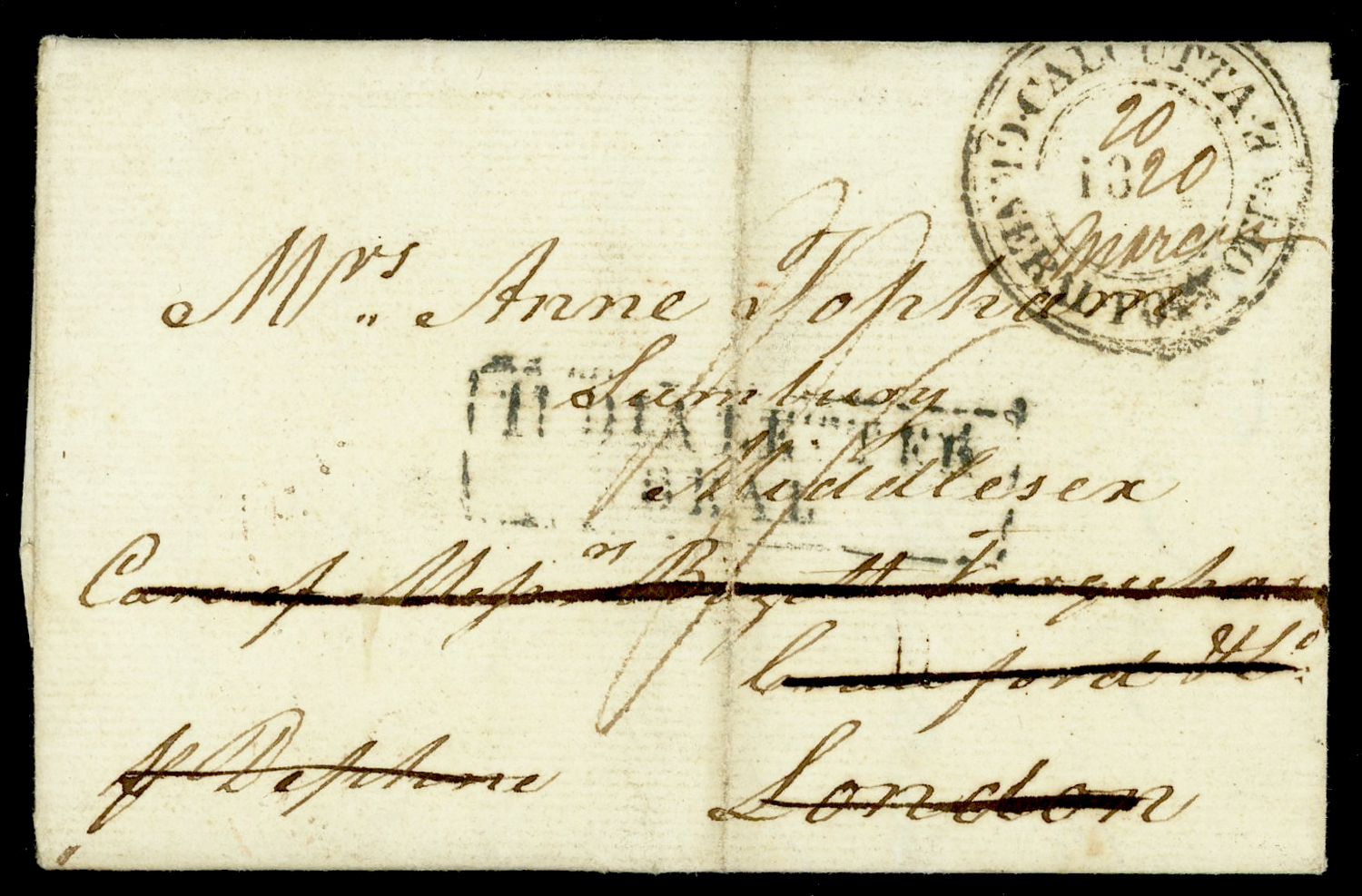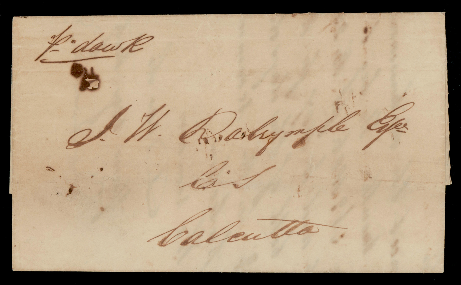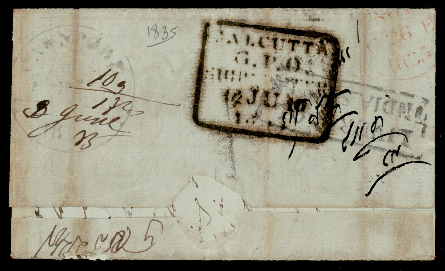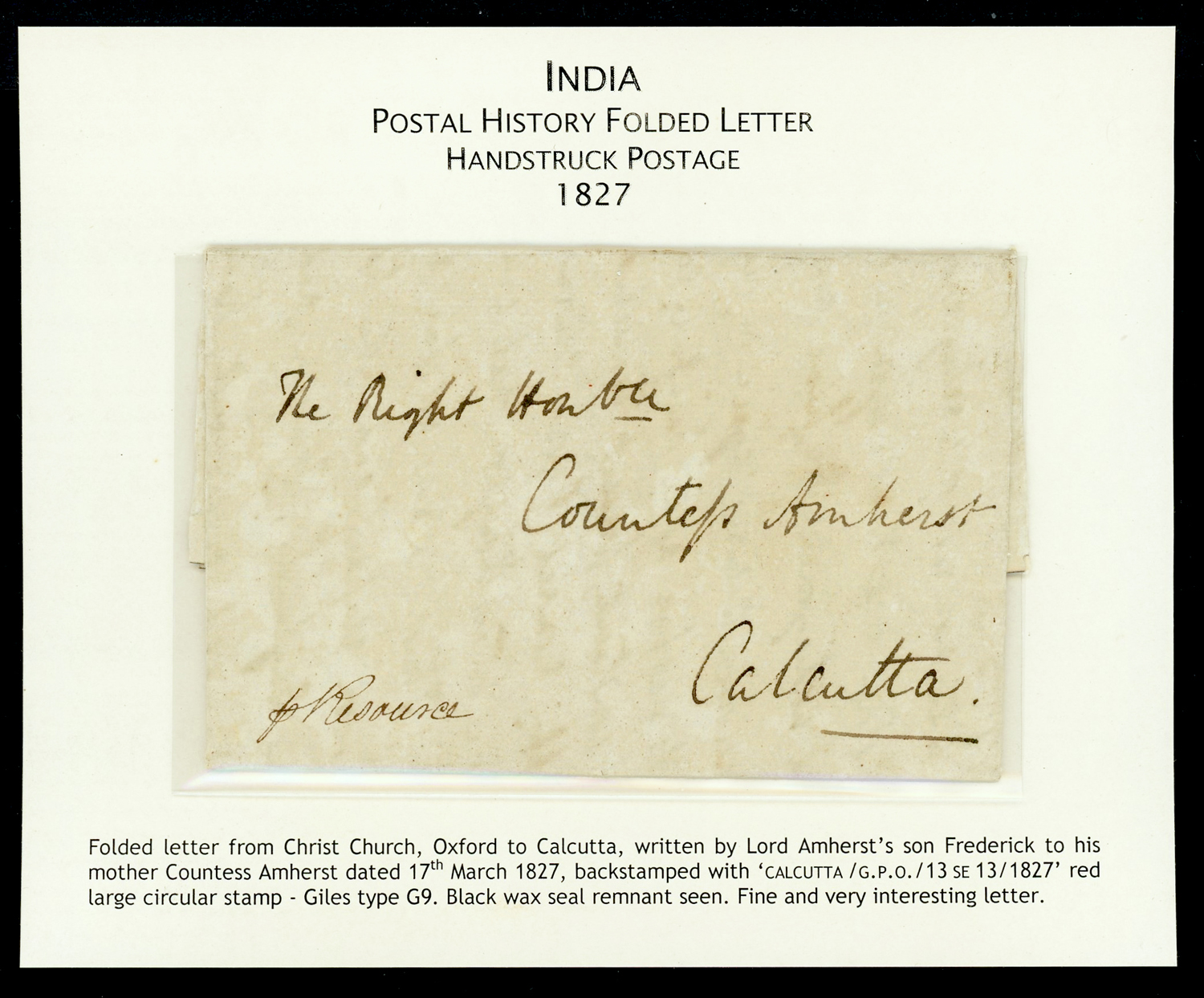 CALCUTTA G.P.O. Giles G9 on incoming folded letter from UK, written by Lord Amherst's son Frederick to his mother, Countess Amherst. (Image) (Imageb)