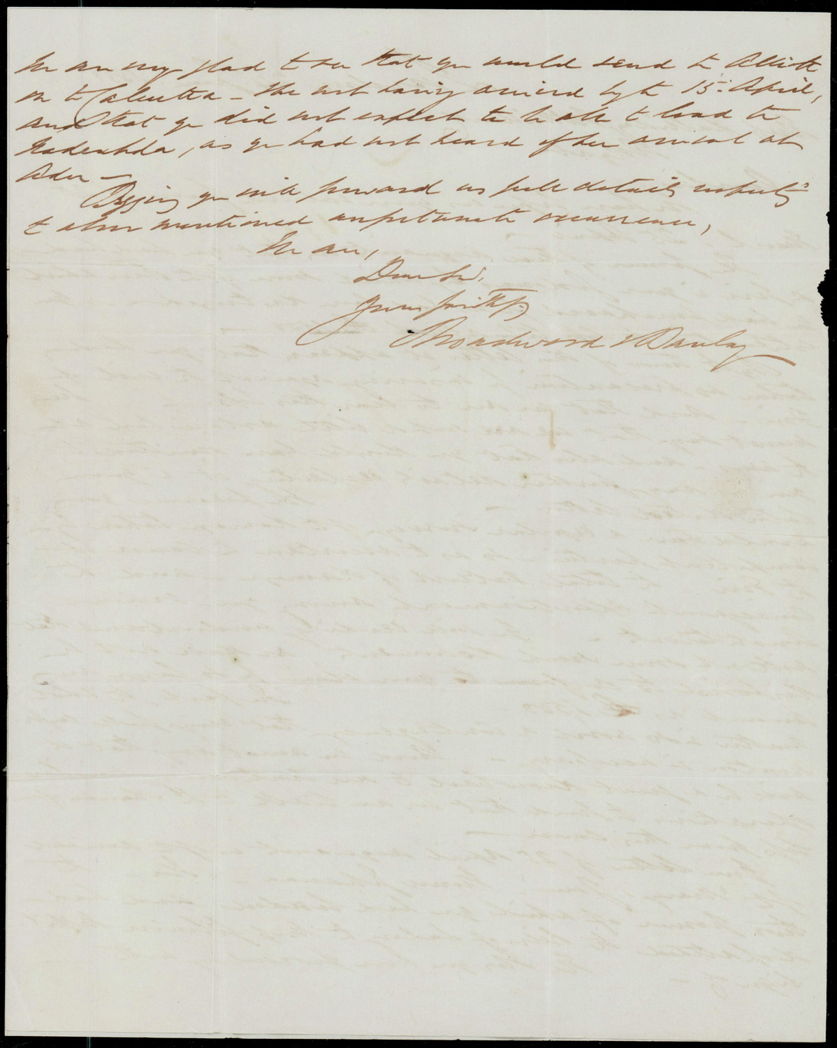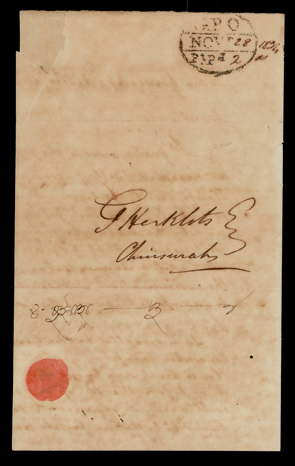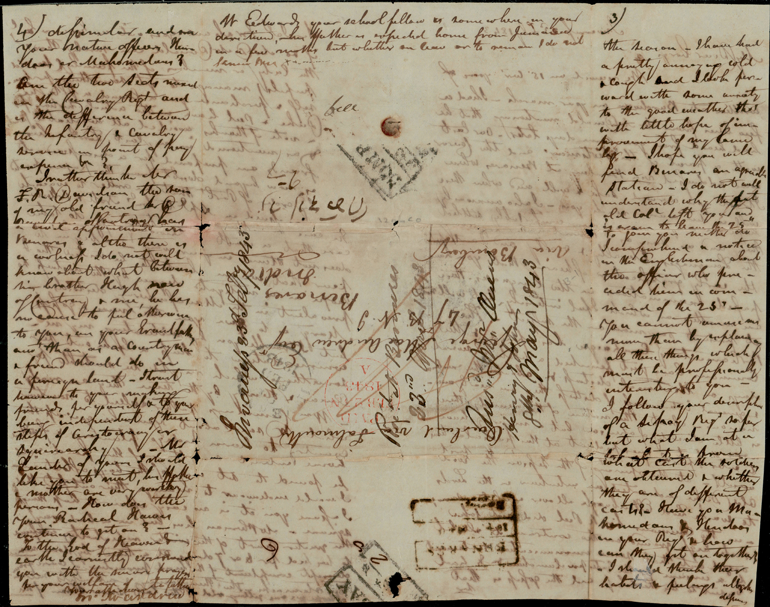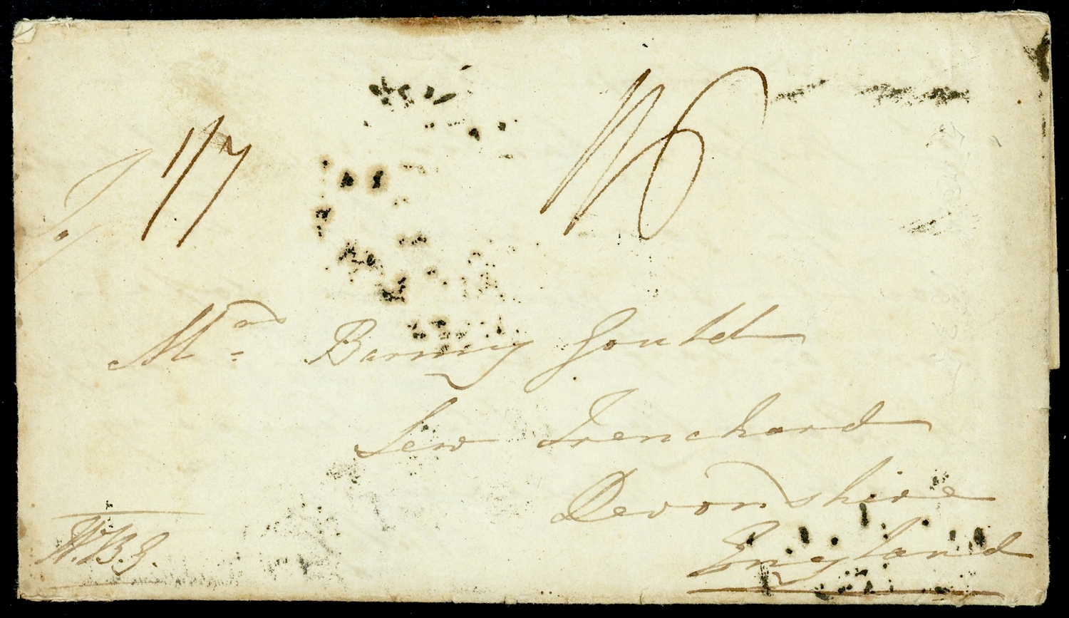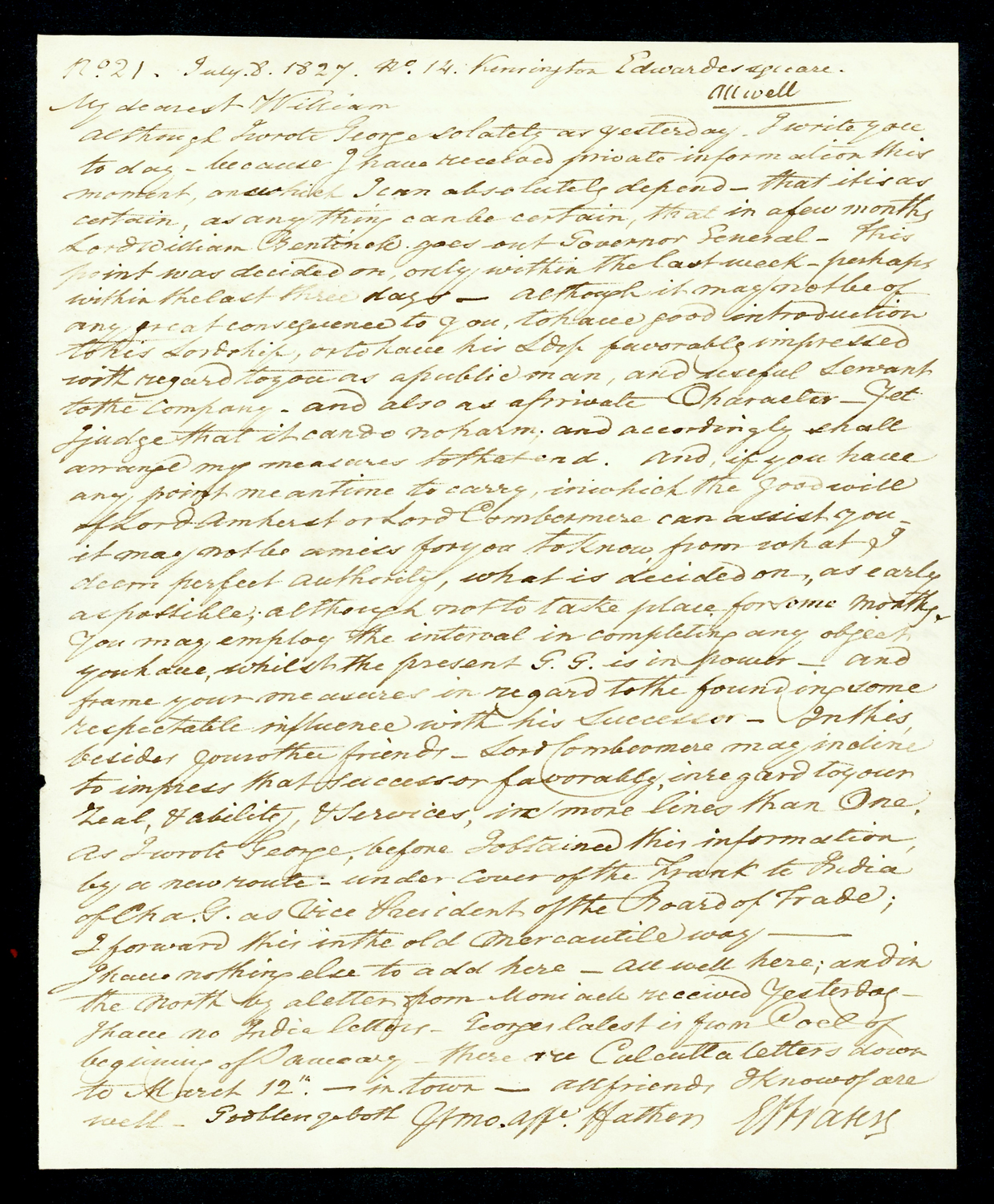 CALCUTTA G.P.O. Giles G9 on incoming folded letter from UK, written by Lord Amherst's son Frederick to his mother, Countess Amherst. (Image) (Imageb)