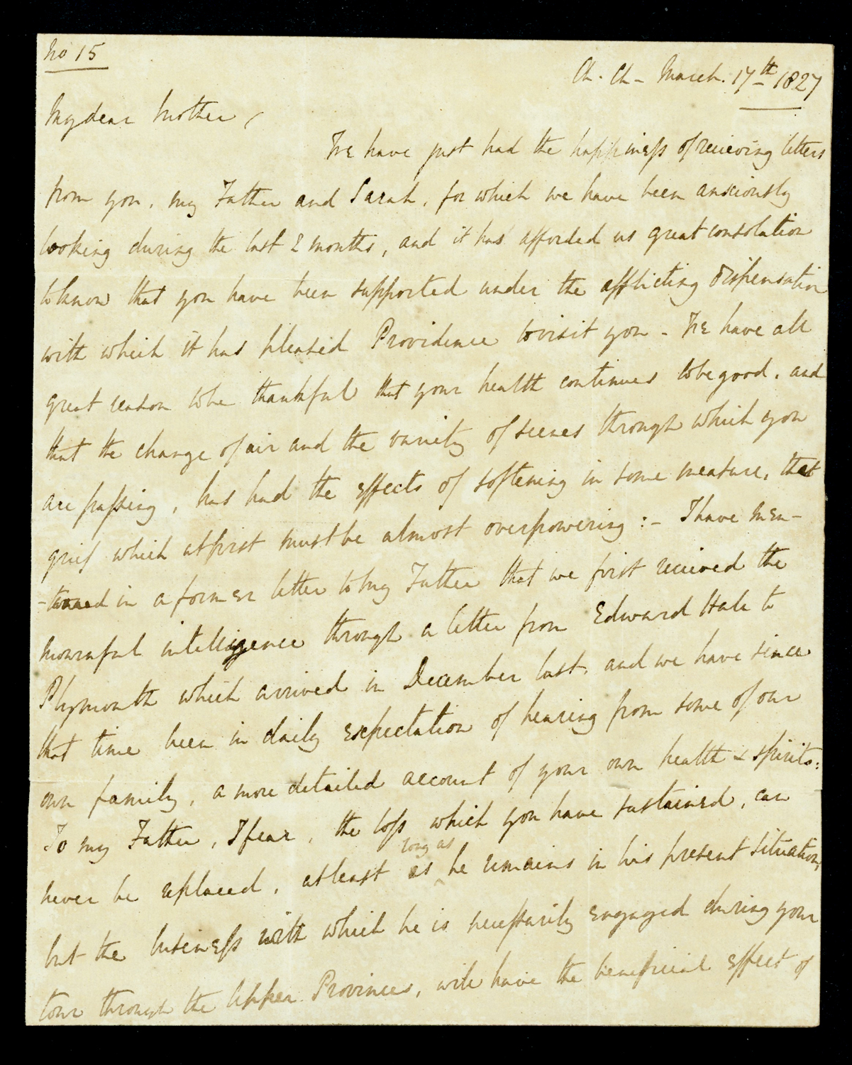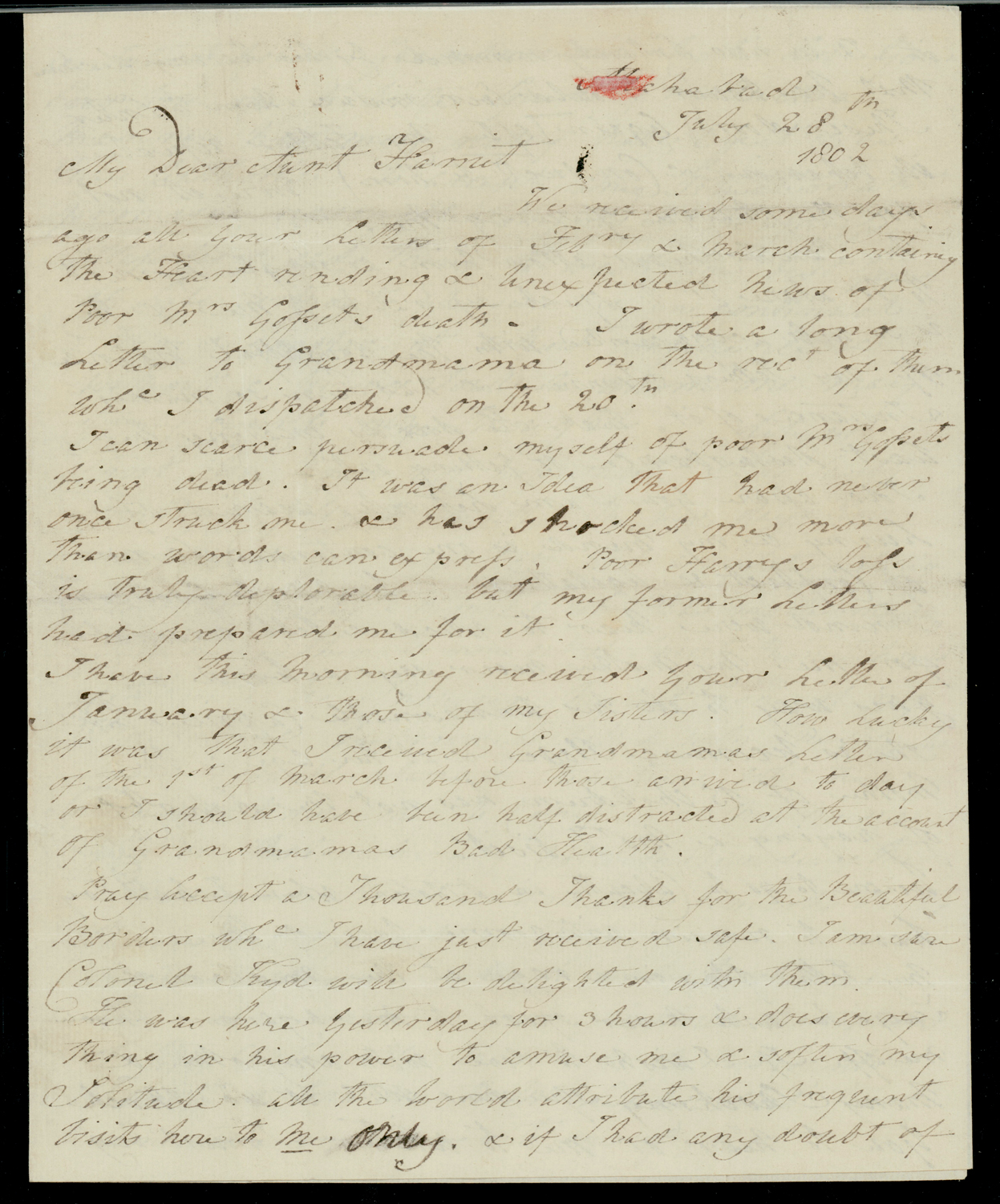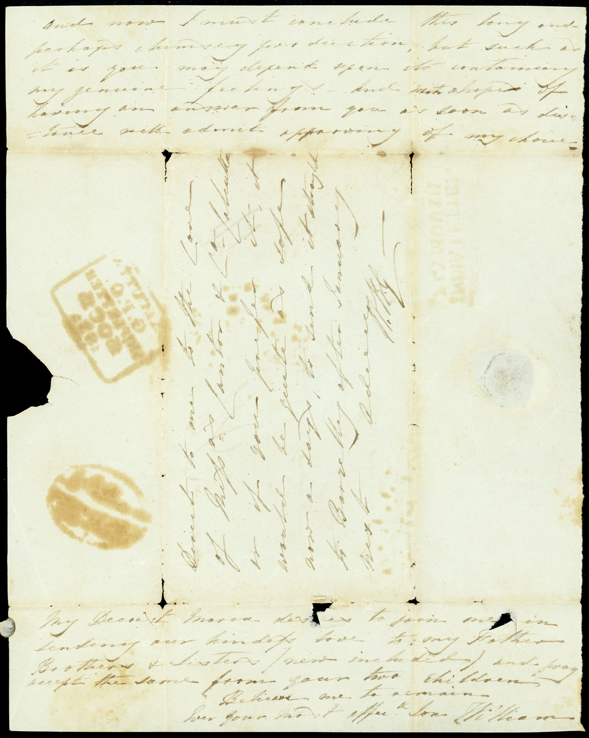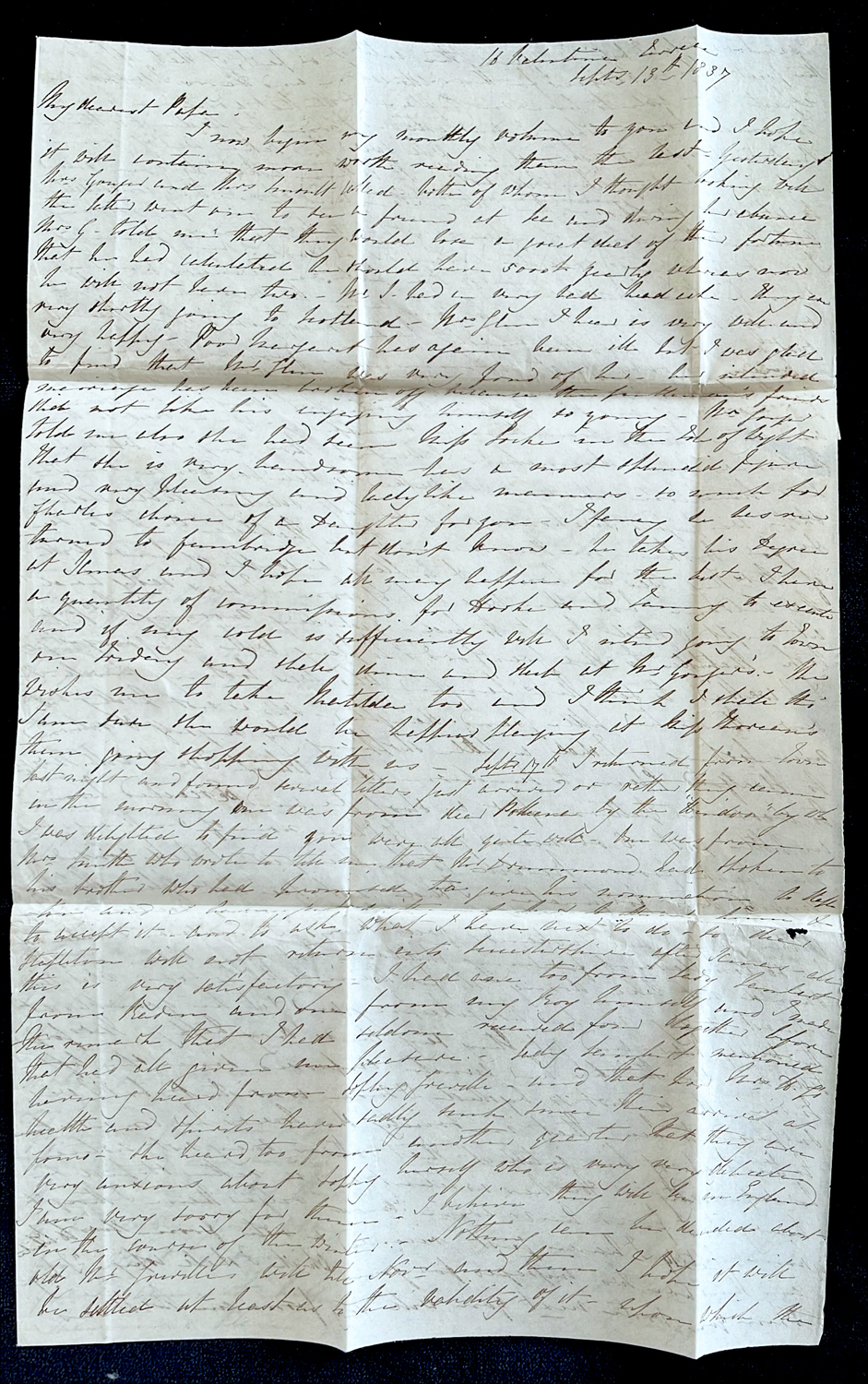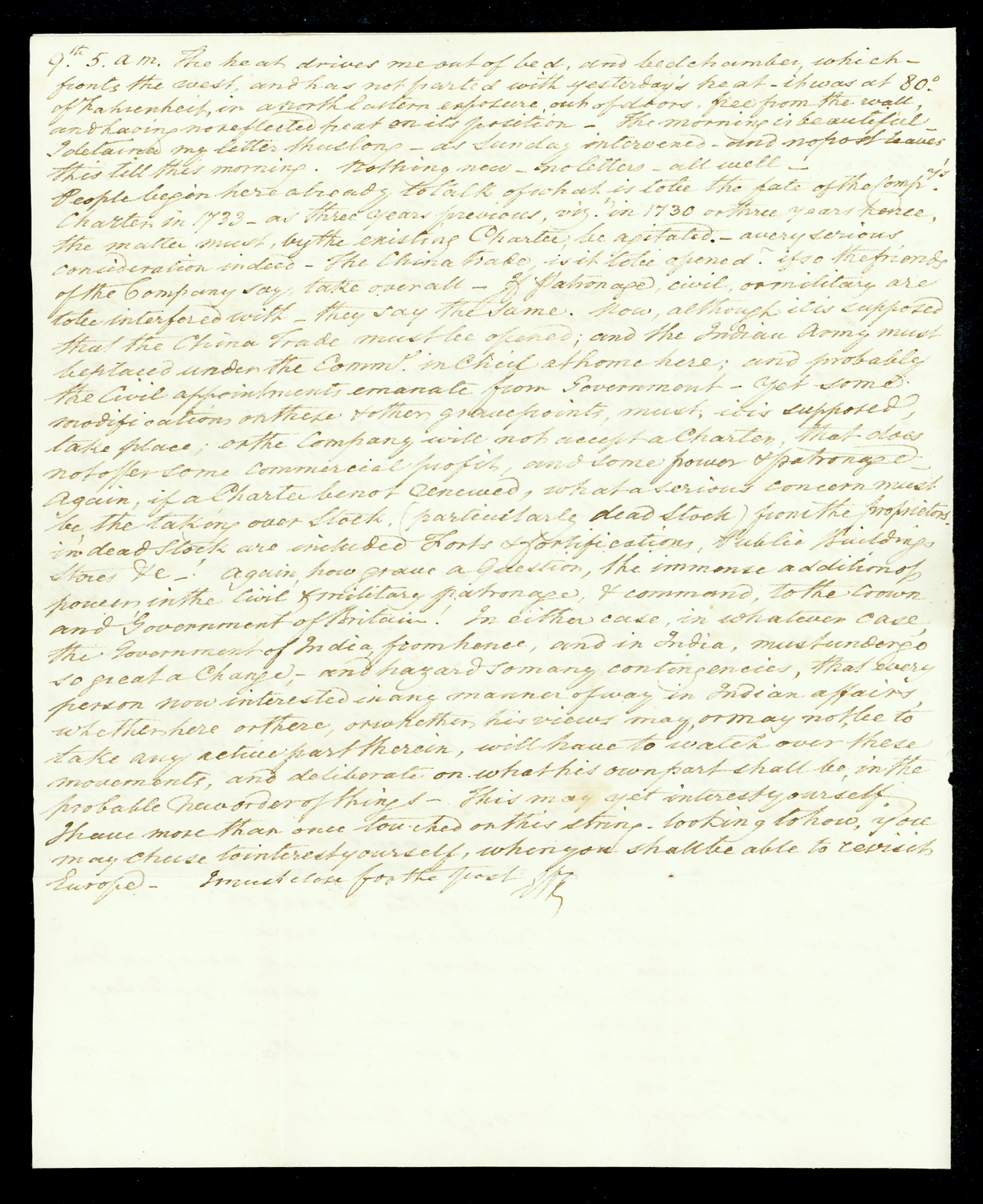 CALCUTTA G.P.O. Giles G9 on incoming folded letter from UK, written by Lord Amherst's son Frederick to his mother, Countess Amherst. (Image) (Imageb)