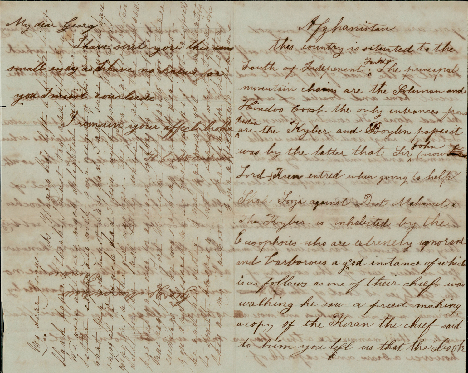 red "INDIA" oval handstamp, manuscript "1/-" due marking, fascinating contents regarding the First Anglo-Afghan War stating "No doubt you have seen our awful disater in Kabul, yesterday's Government Gazzetted announced the Capitulation of Ghuzni