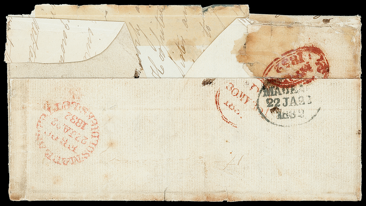 INDIA SOLDIER &c, PLYMOUTH/3 Concessionary Rate Letter (Robertson In. 1) and Madras (Jan. 22) despatch datestamp on back, framed "TP/Rate/2" and "In All" handstamps, partial London transit datestamp, cover and letter with internal