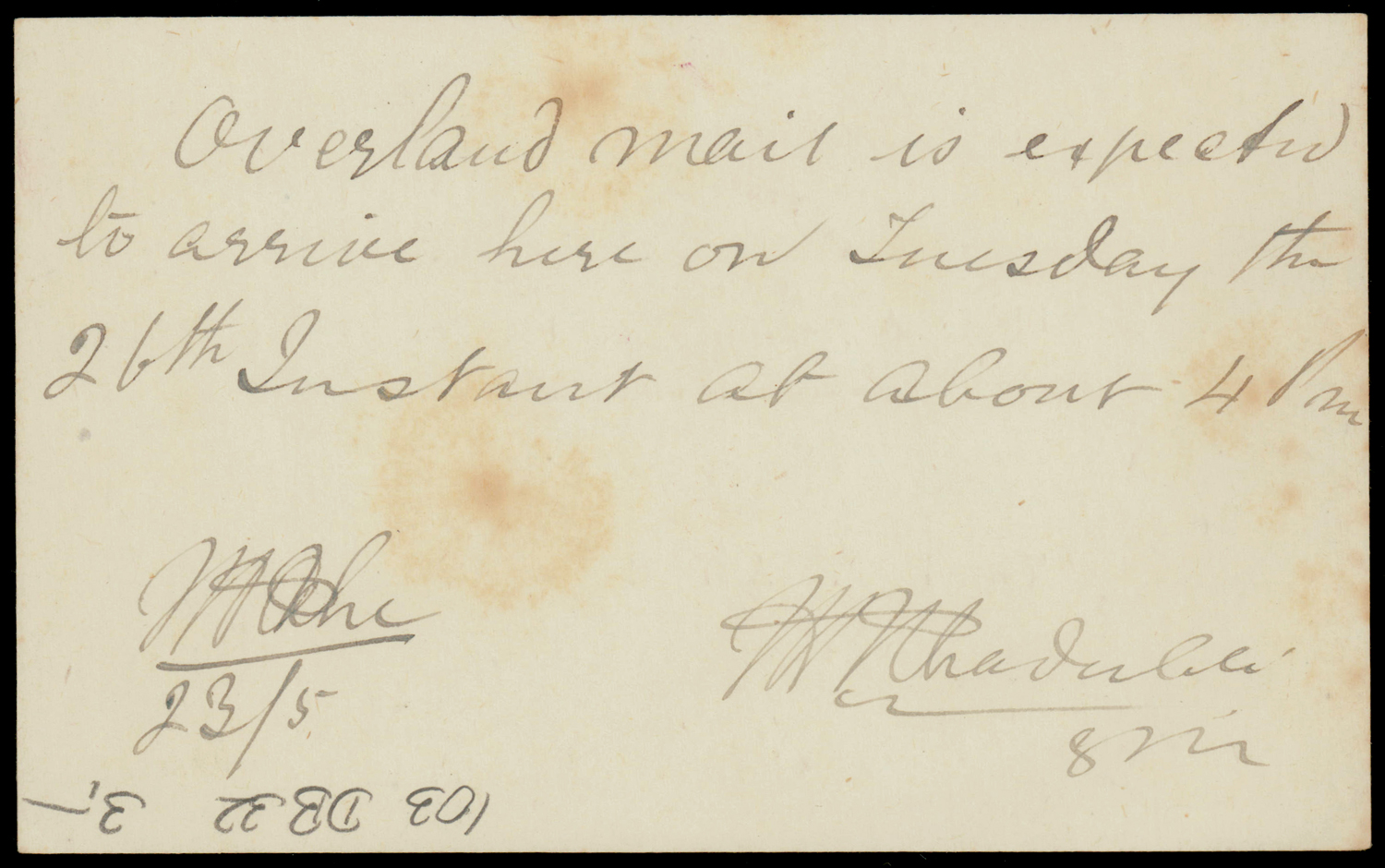 29) transit and CHITTERPORE (Nov 9) dely cds on reverse (Image) (Imageb)