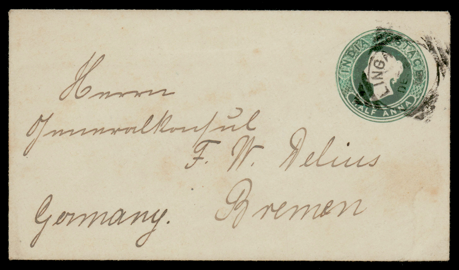 Persian Gulf: LINGA squared circle cancel on QV ½a stationery to Germany (Image) (Imageb)