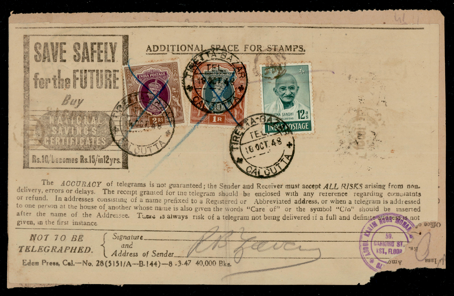 + GVI 2r + 1r on telegram form used from Calcutta, another cover f.w. strip/3 from Ahmedabad to USA (2) (Image) (Imageb)
