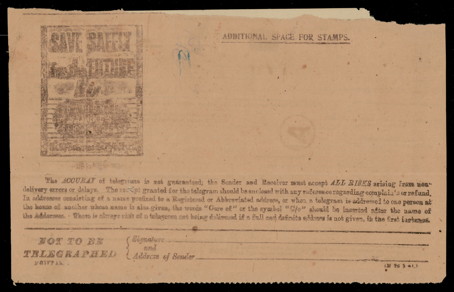 Western Union telegram from Mahatma Gandhi "Congratulations stop will give you two years time and then expect you over here with only the price of a half of sheet" (Image) (Imageb)